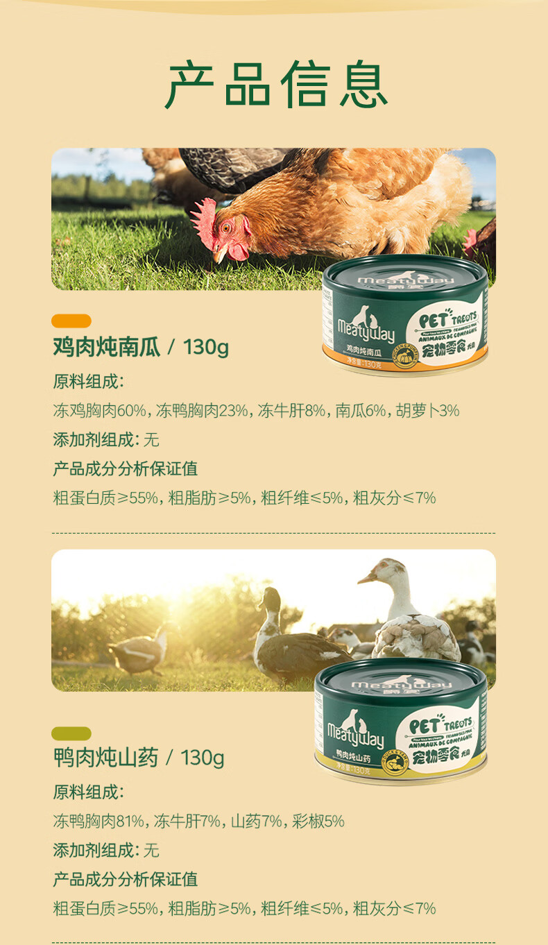 Meatyway爵宴狗零食罐头鸡肉南瓜130g 宠物狗狗零食原切肉0胶0谷0添加