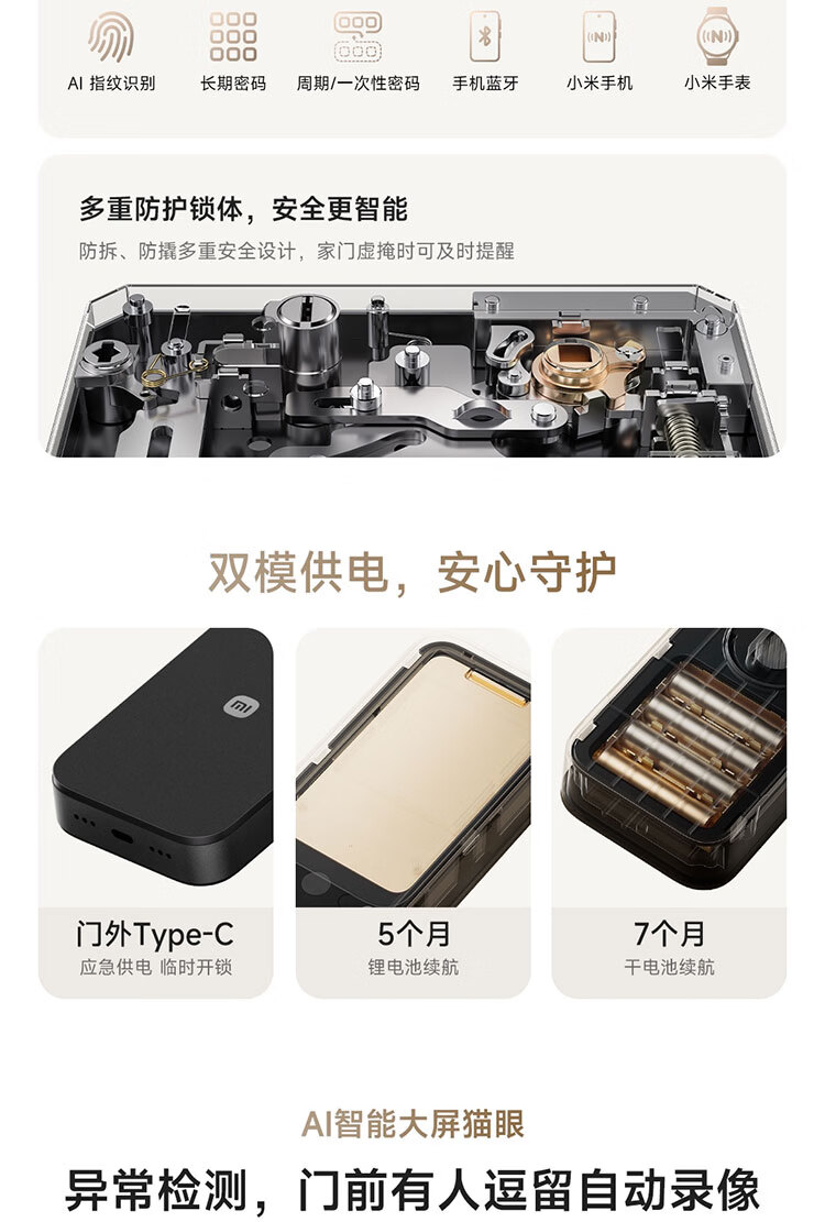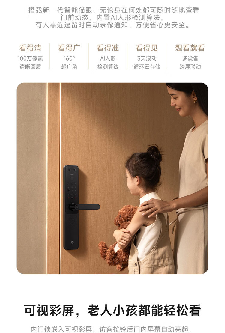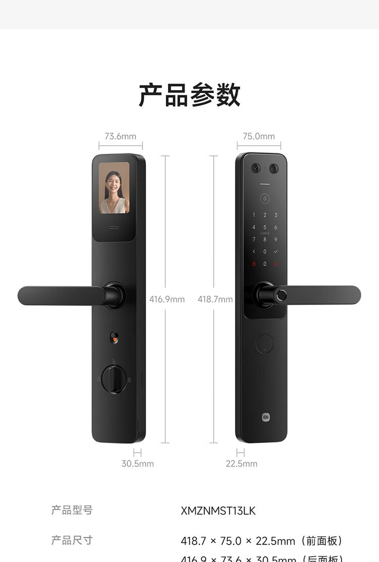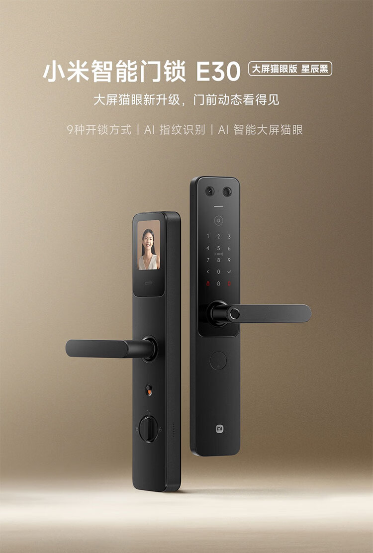 小米智能门锁 E30 大屏猫眼 星辰黑版 指纹锁智能锁可视电子锁密码锁
