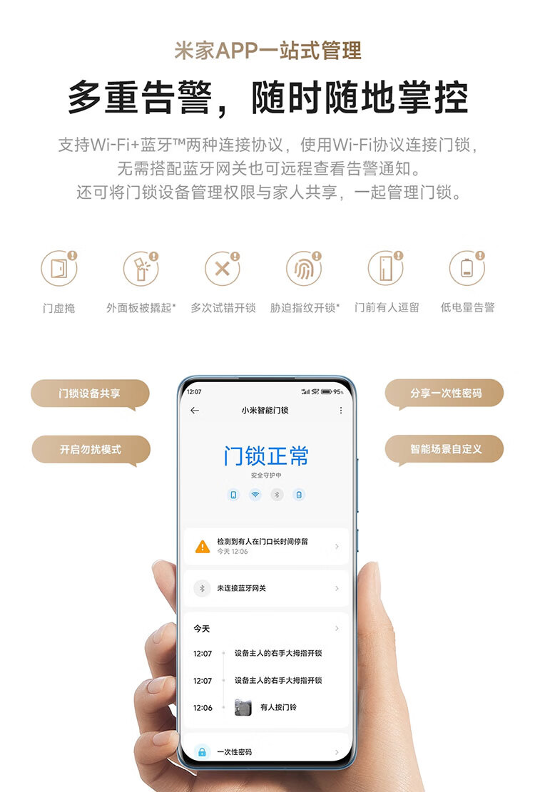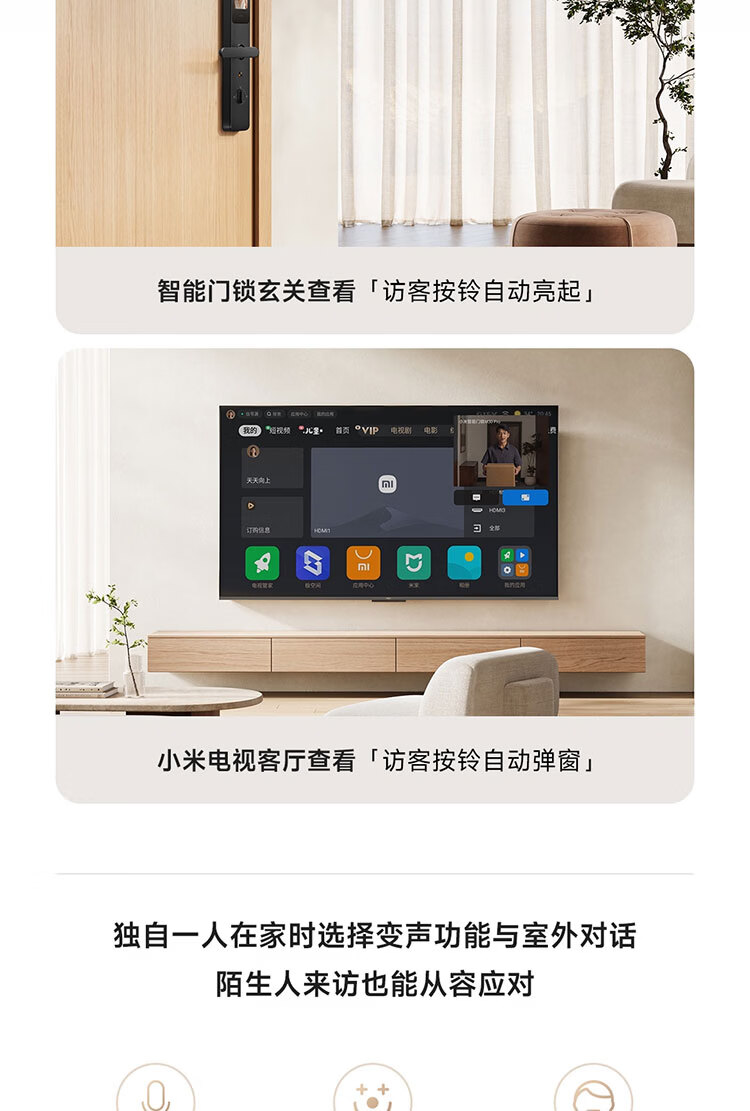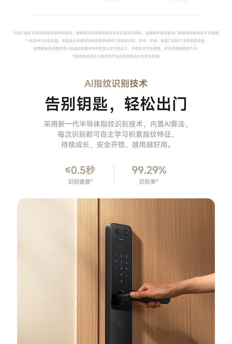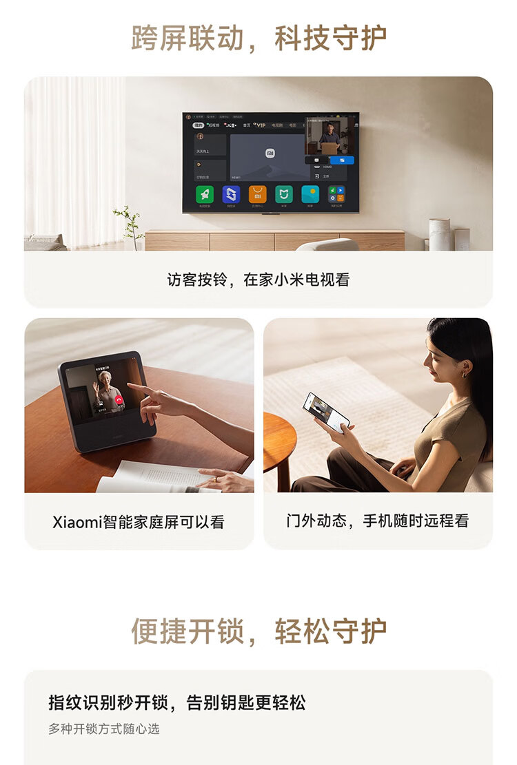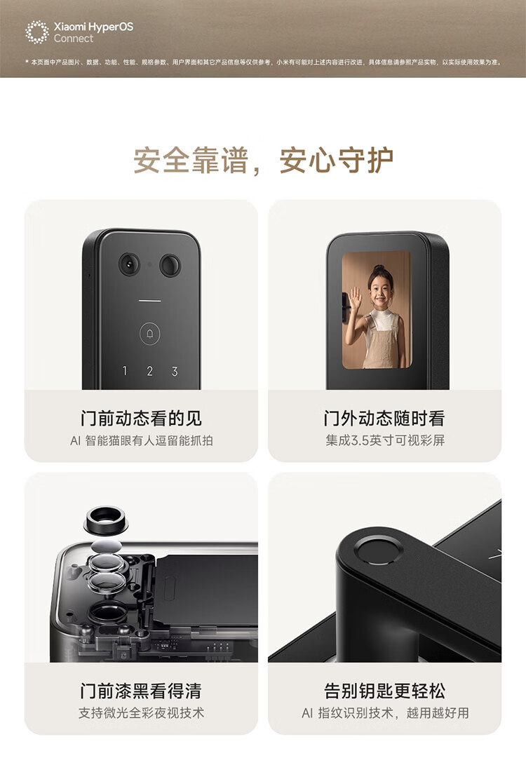 小米智能门锁 E30 大屏猫眼 星辰黑版 指纹锁智能锁可视电子锁密码锁