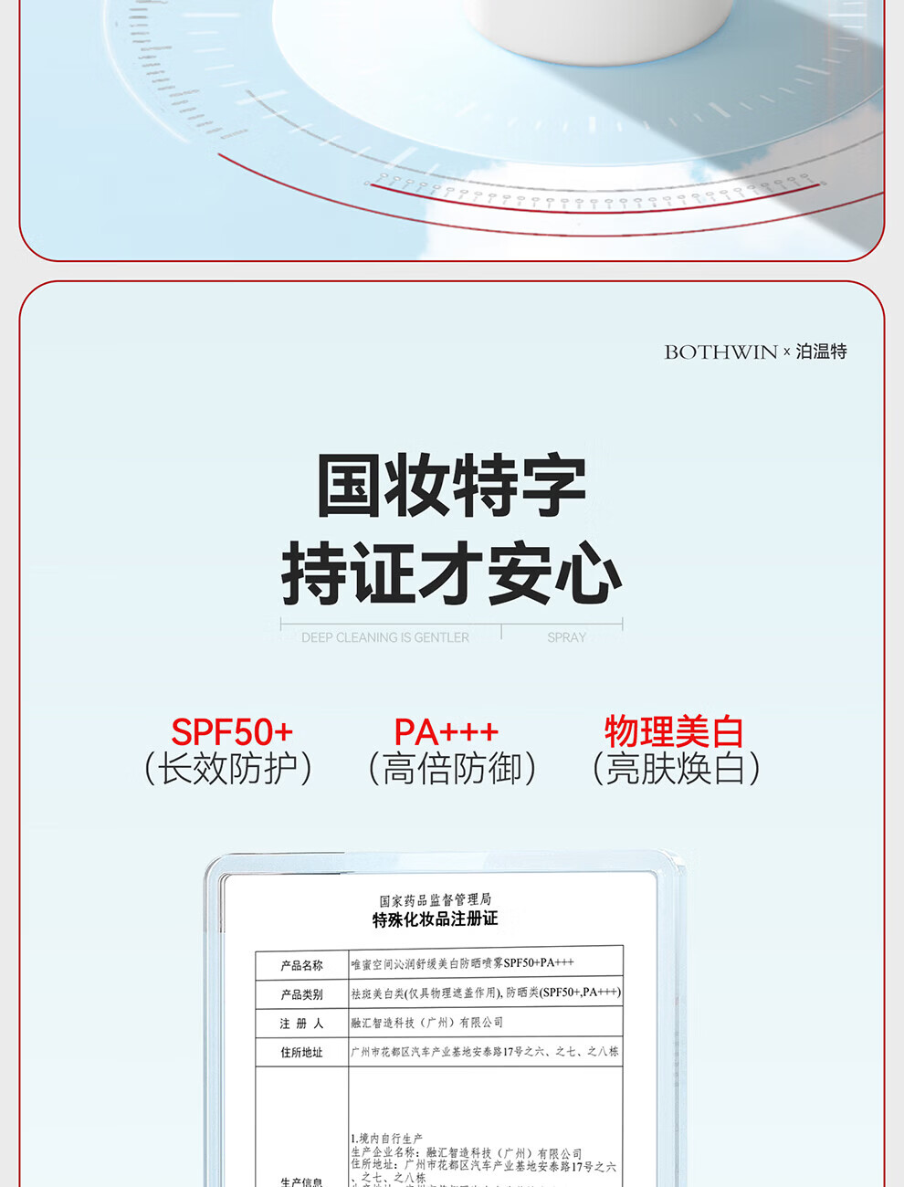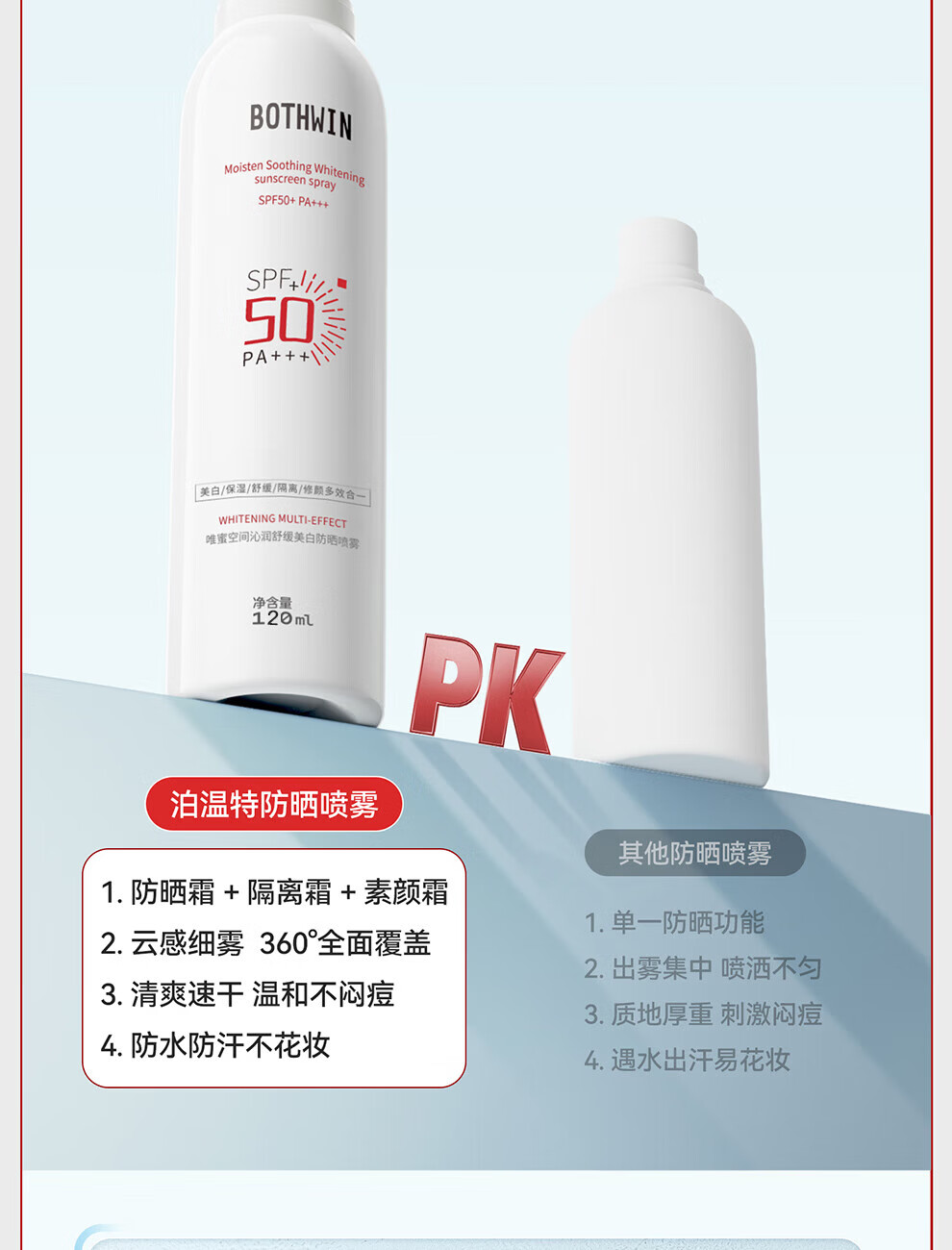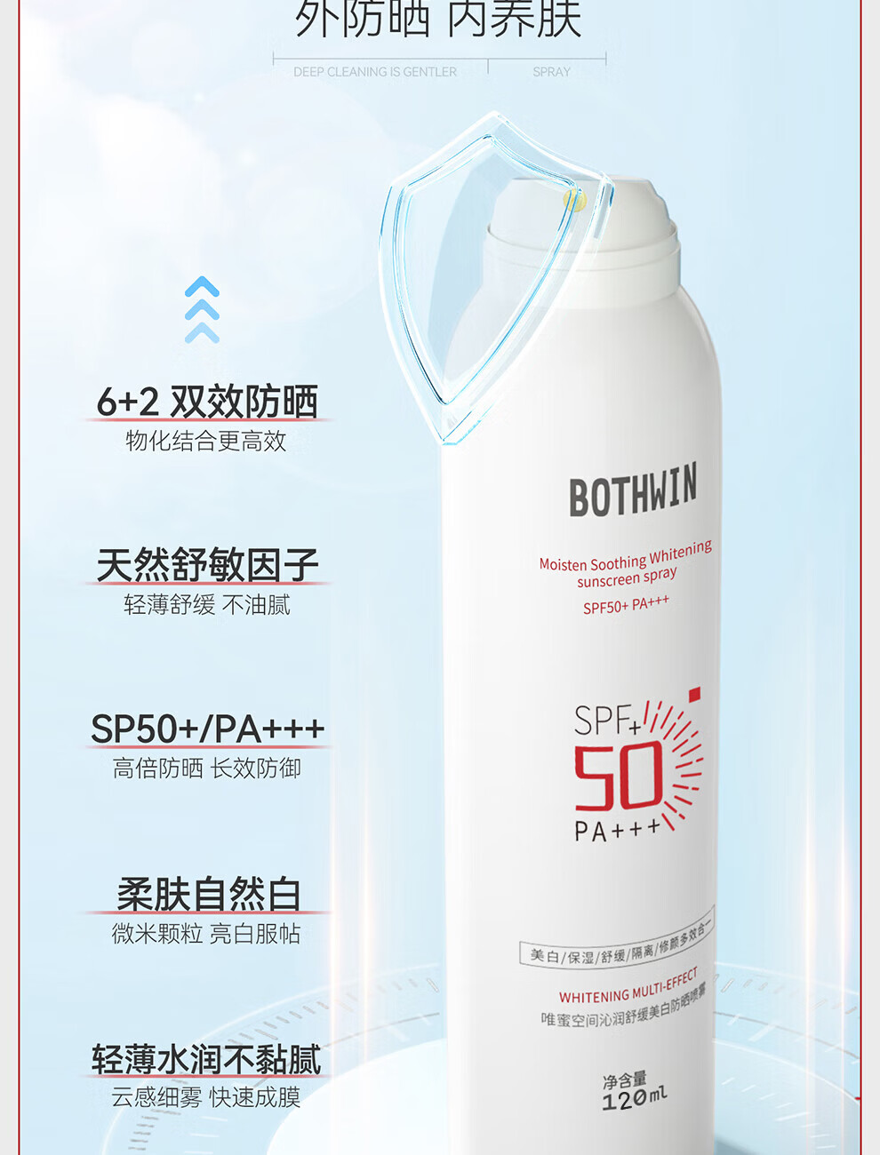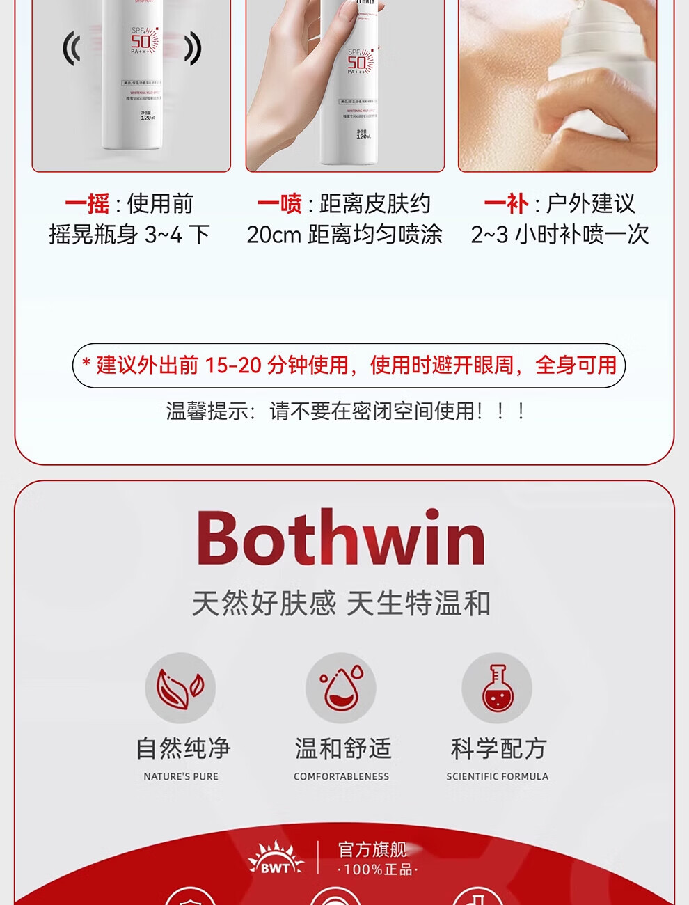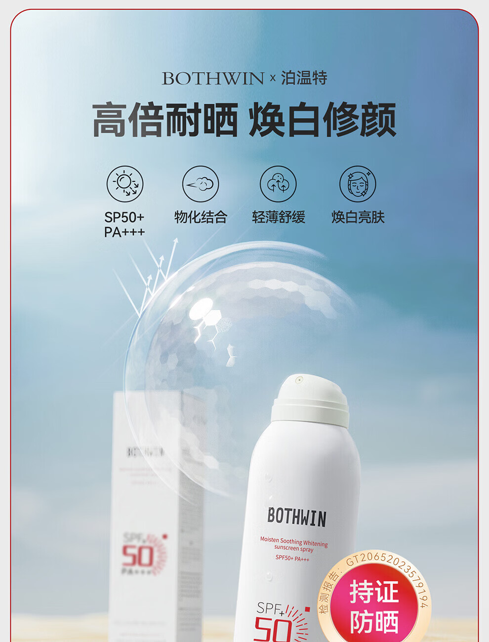 泊温特 BOTHWIN【bti防晒喷雾】正品旗舰美白防晒霜喷雾男女专用防紫外线店 2瓶 240ml