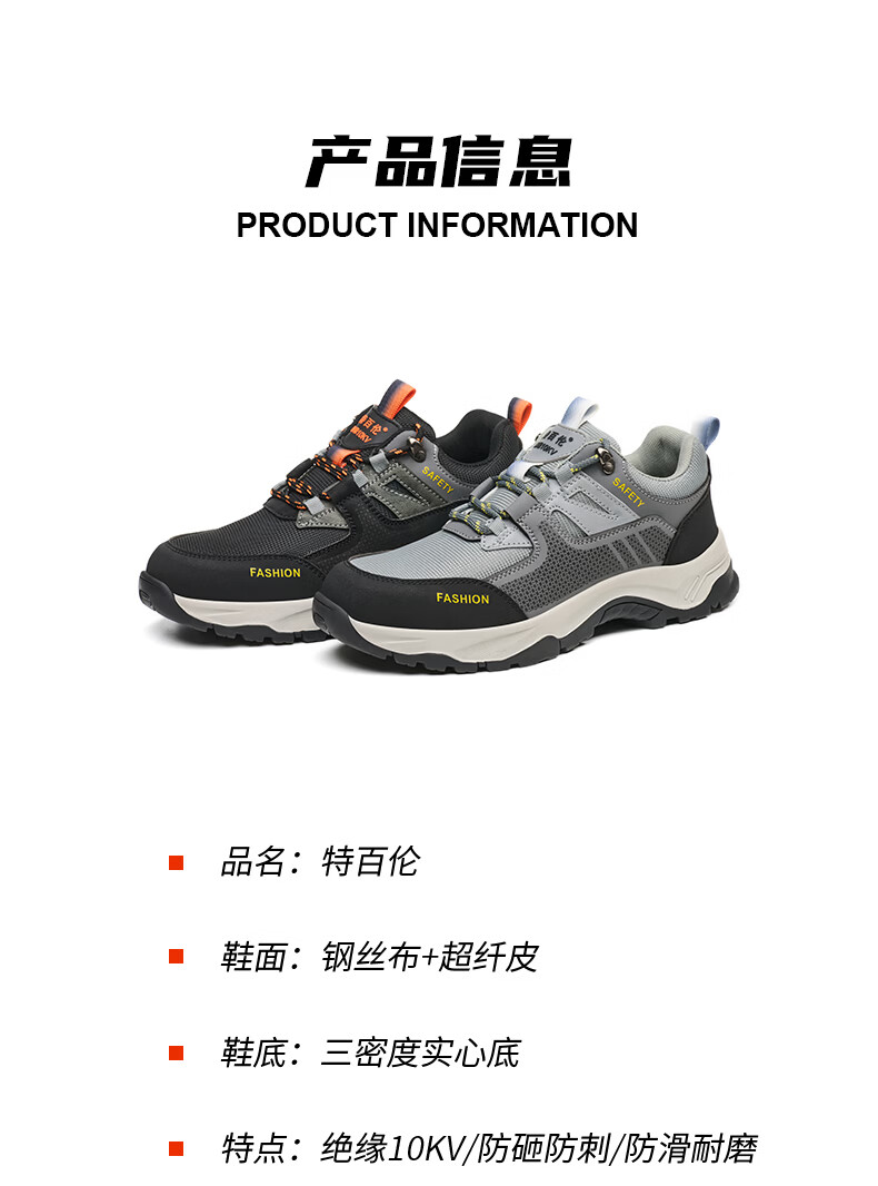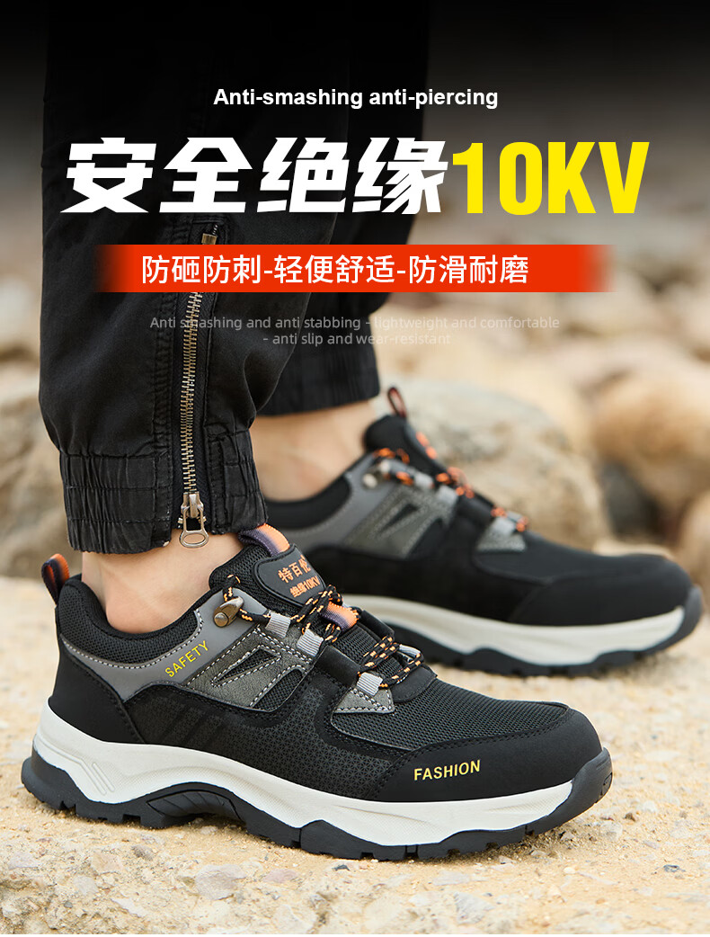 特百伦劳保鞋男透气防臭四季防砸防刺工地干活男耐磨轻便绝缘10Kv软底 黑色四季*防砸防刺绝缘-耐磨轻便 41