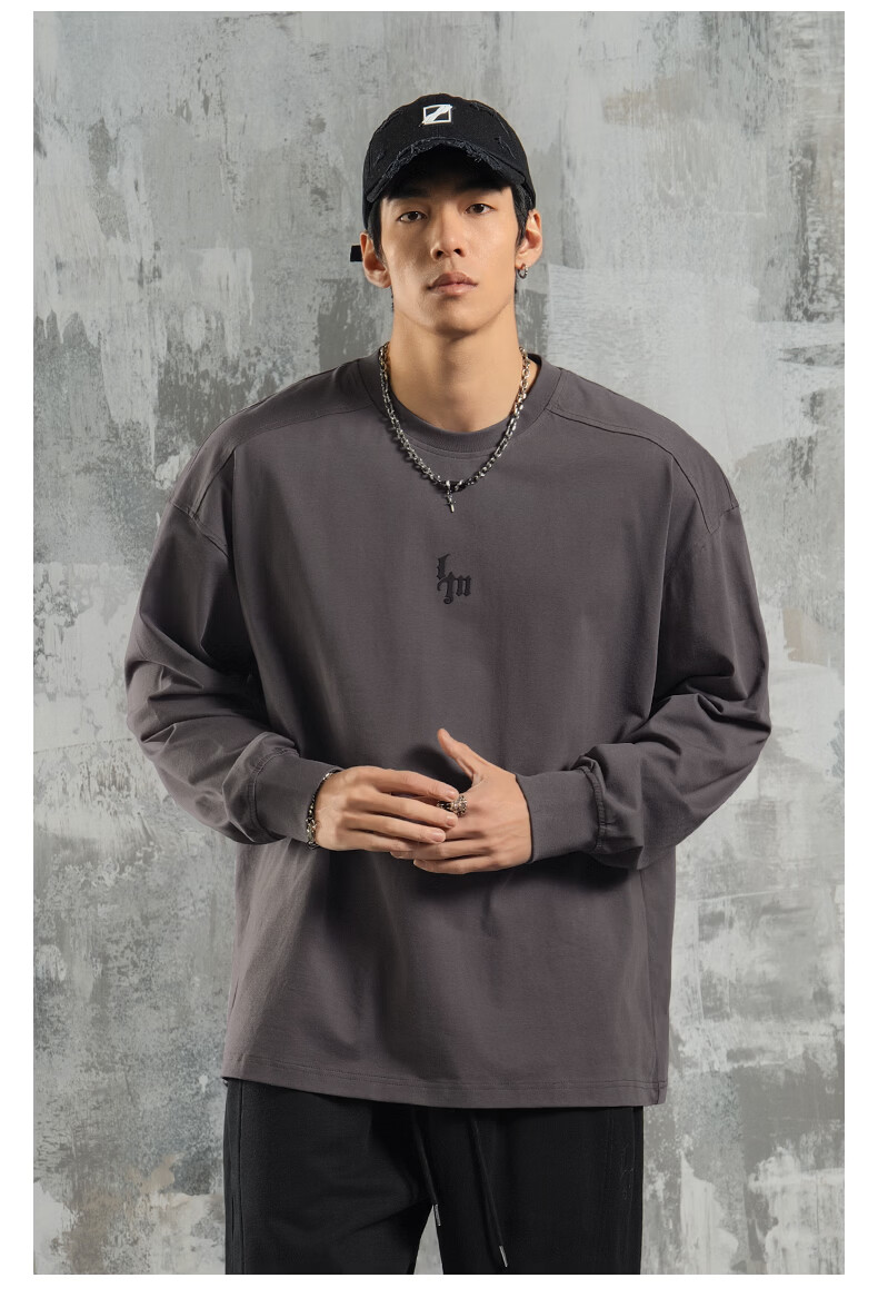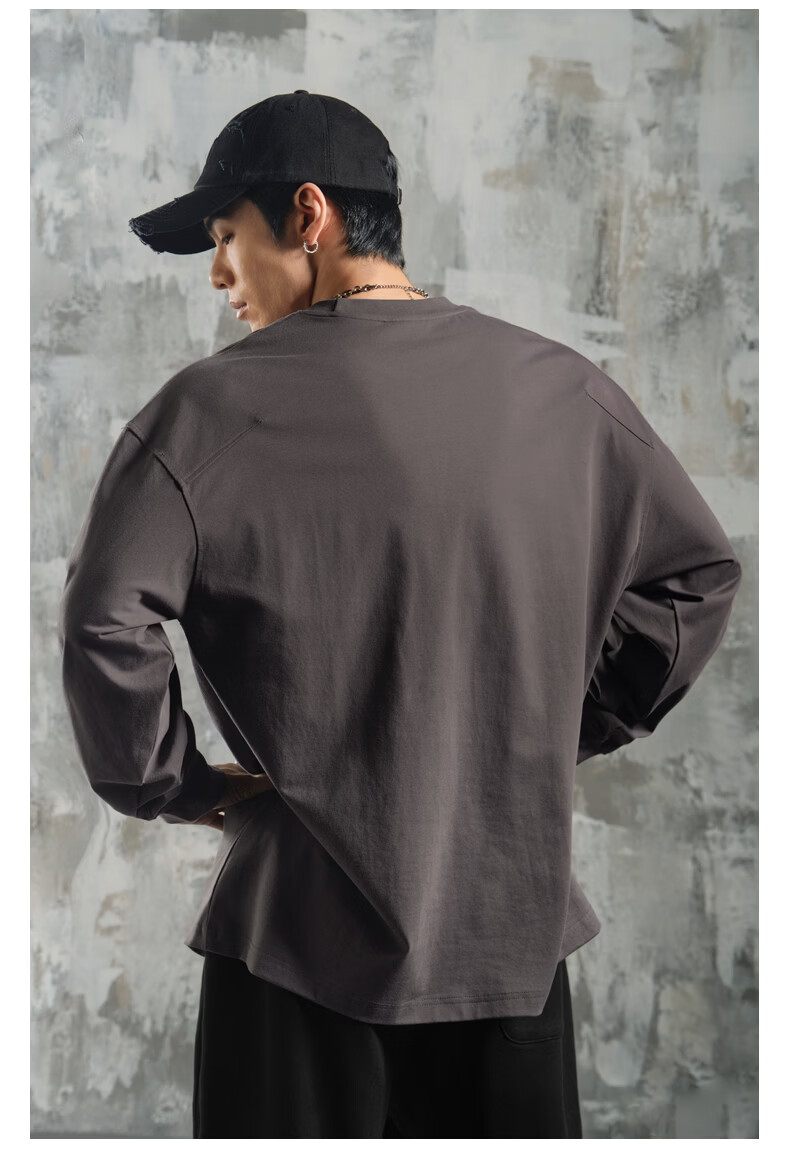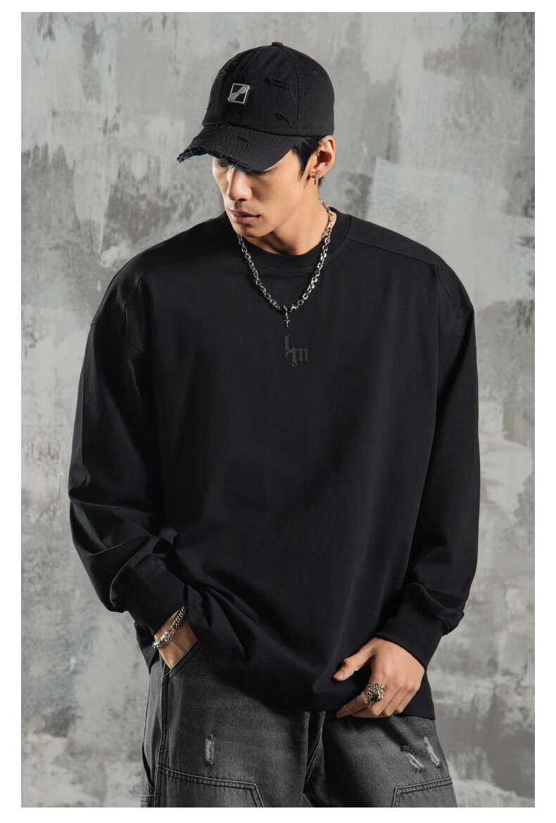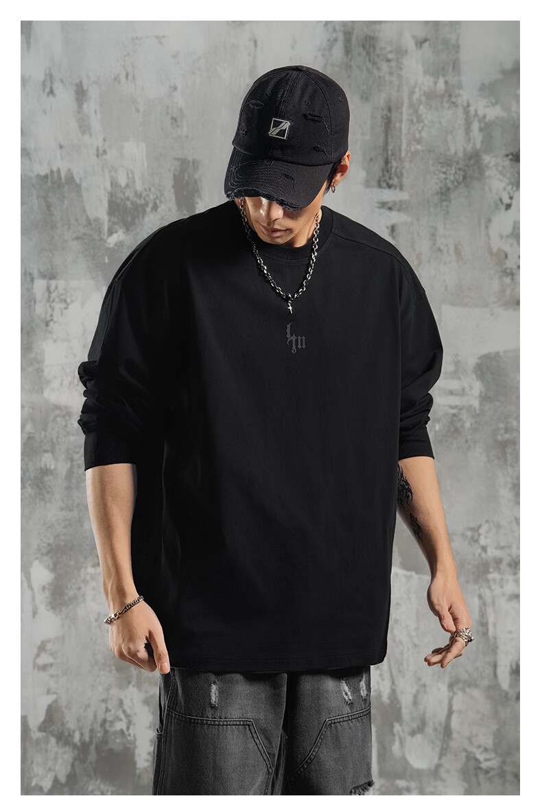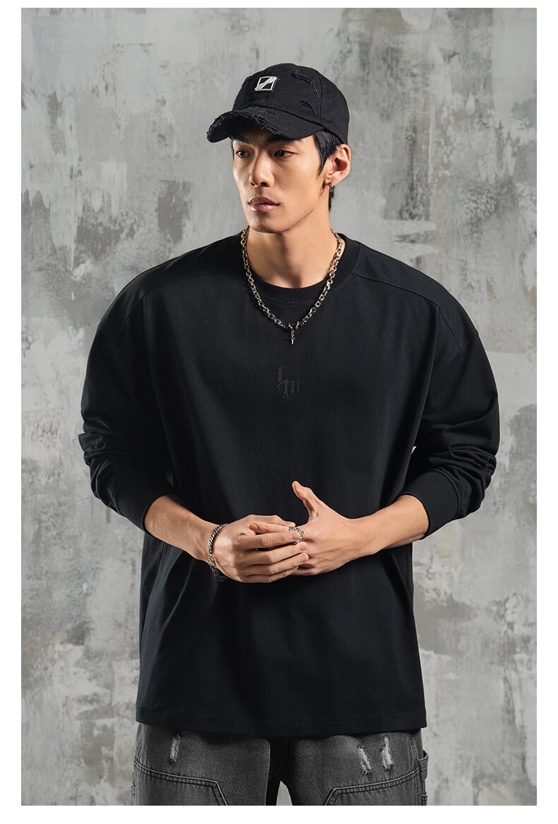 鹿家门运动健身长袖T恤男春季极简风宽松大码美式防晒速干打底衫 黑色 【防晒抗菌速干】 3XL (推荐200-260斤)