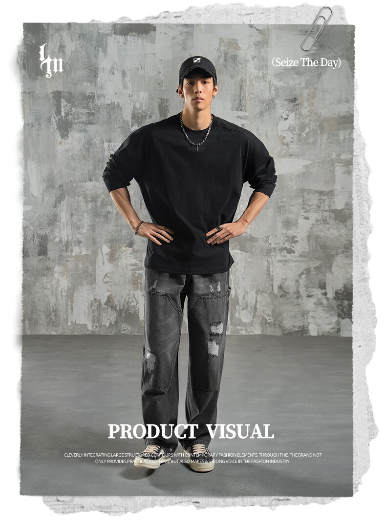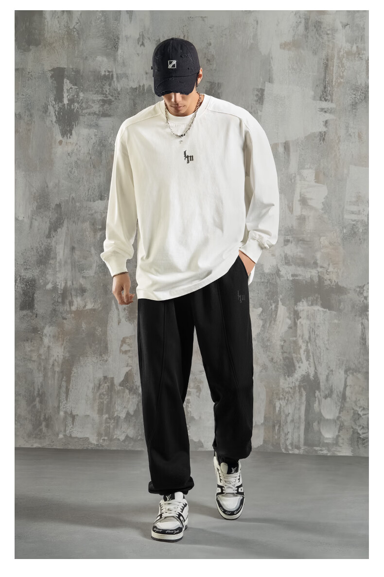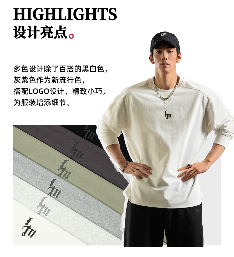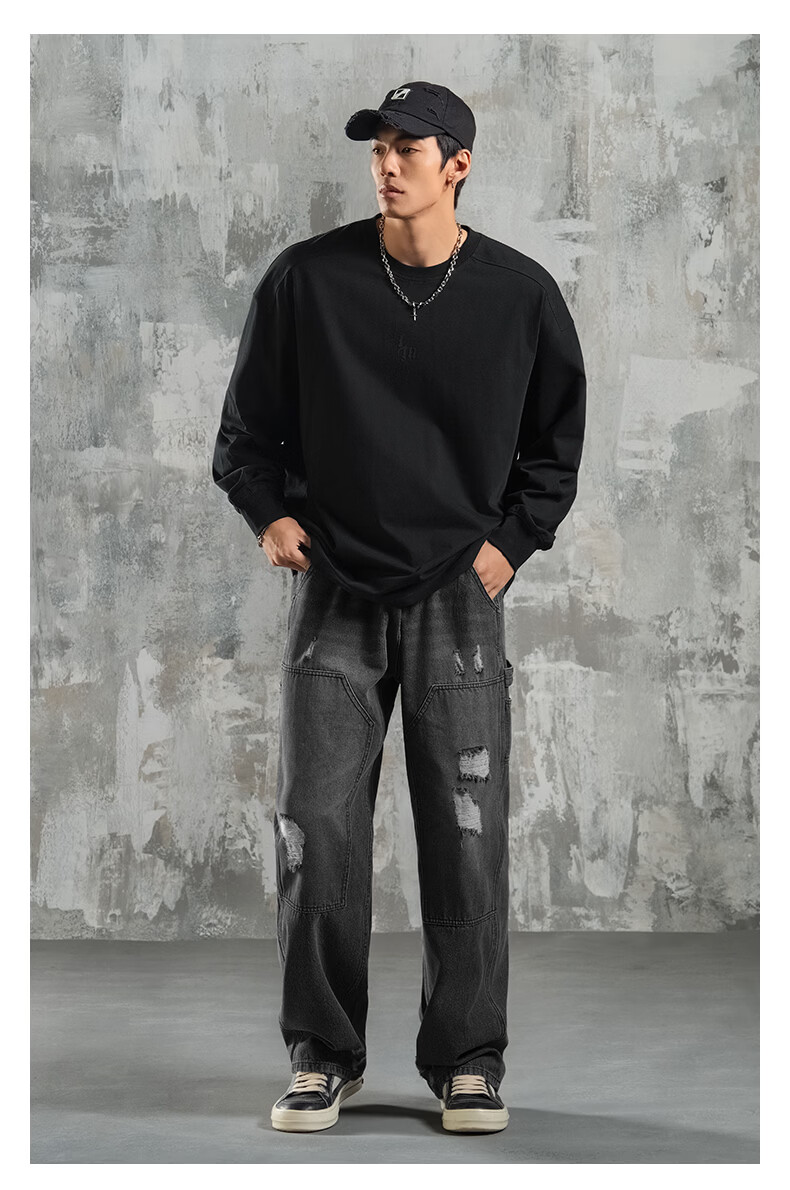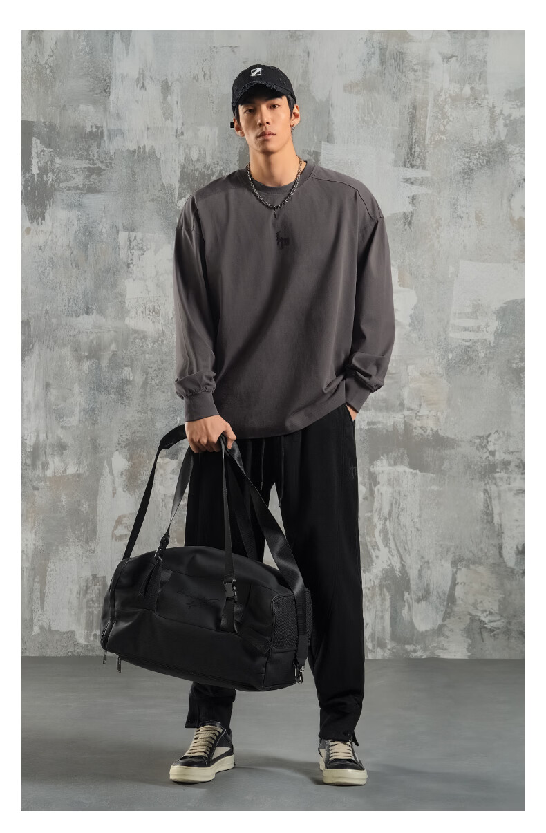 鹿家门运动健身长袖T恤男春季极简风宽松大码美式防晒速干打底衫 黑色 【防晒抗菌速干】 3XL (推荐200-260斤)