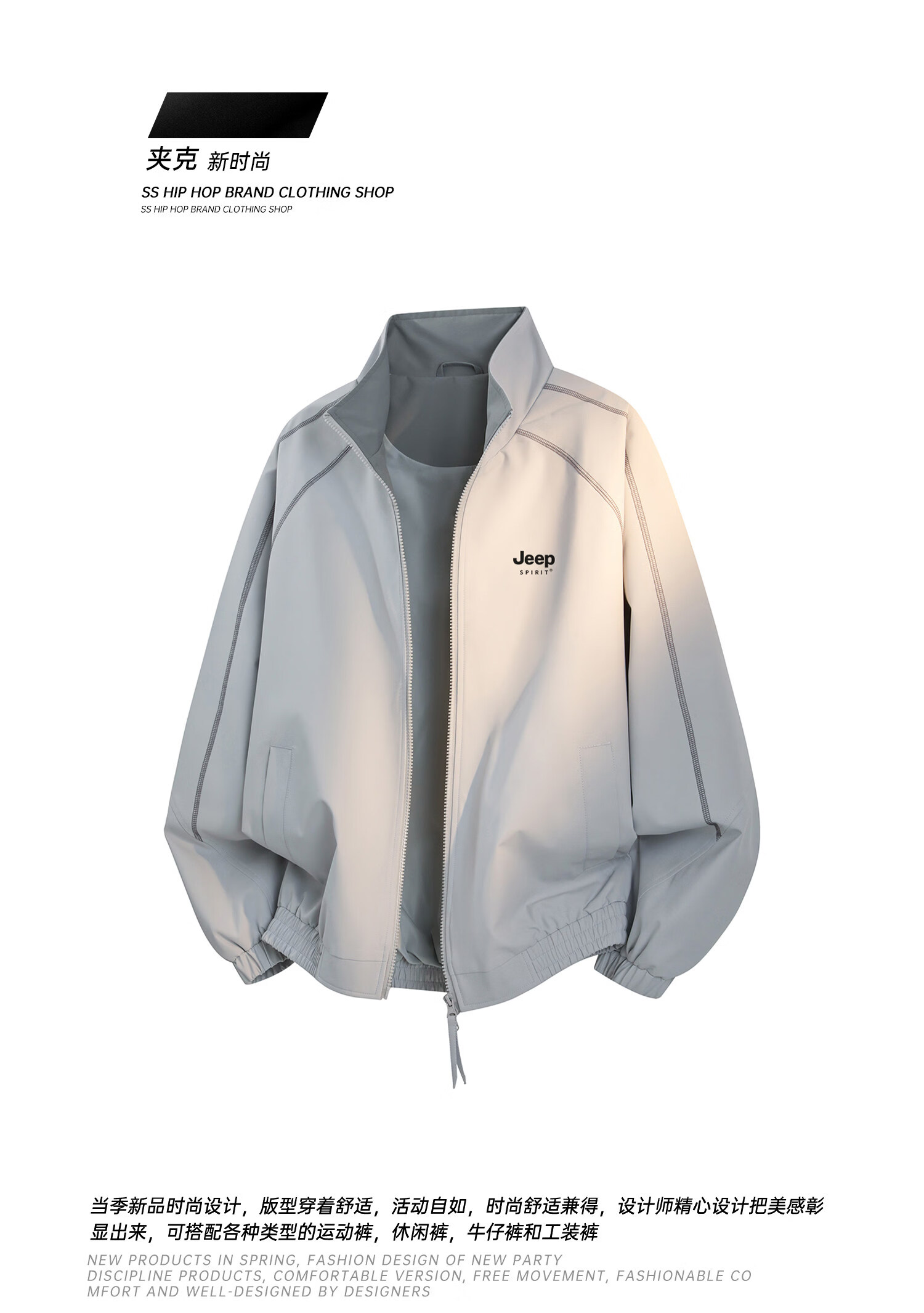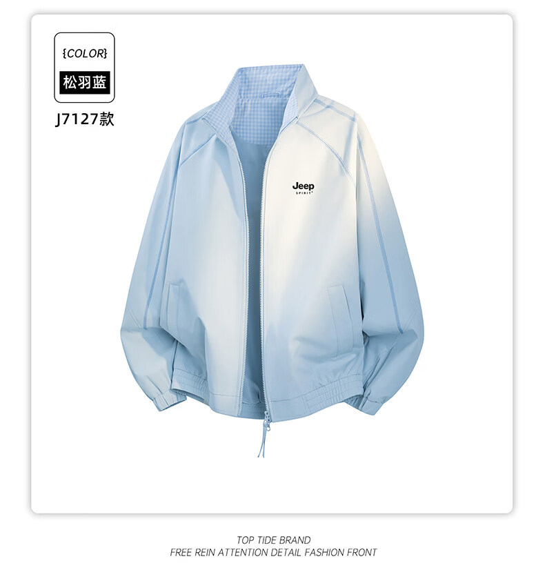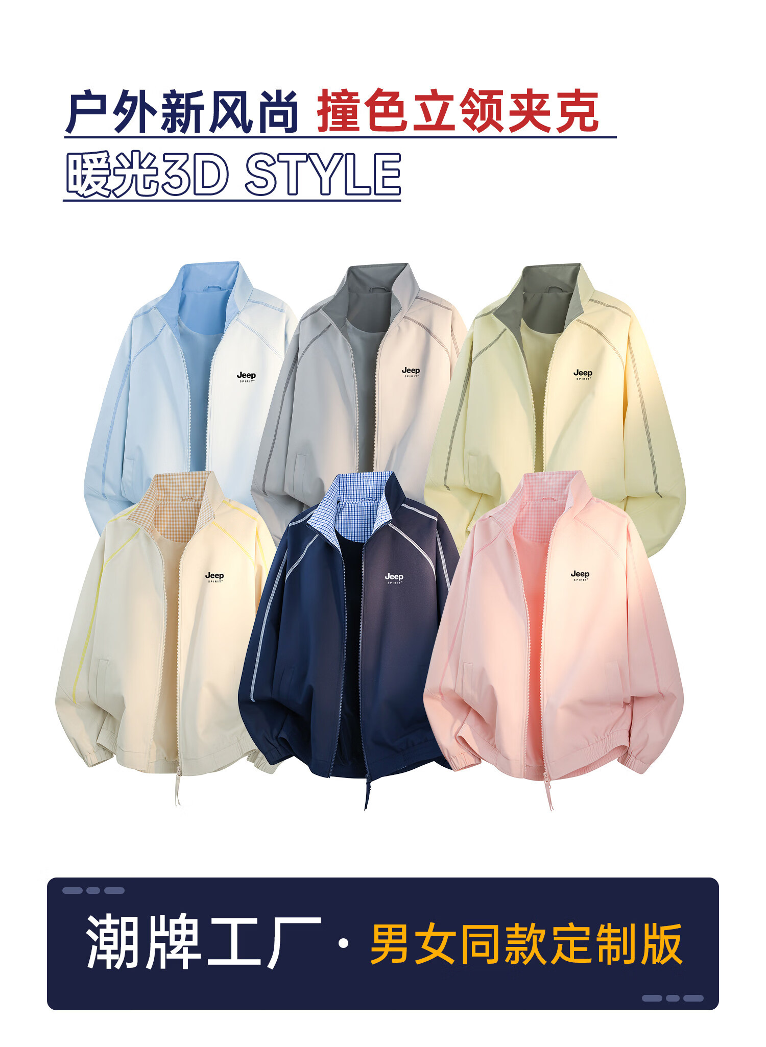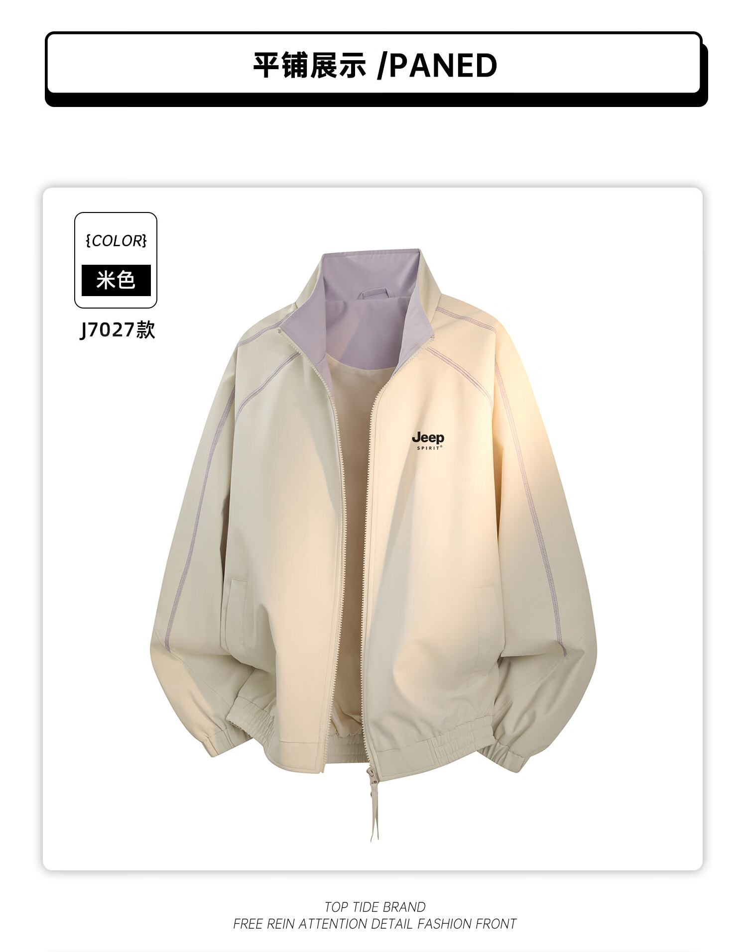 JEEP SPIRIT外套女2026新款春季小个子超好看贝壳绣学院风立领防风冲锋衣定制 松羽蓝-7027 M