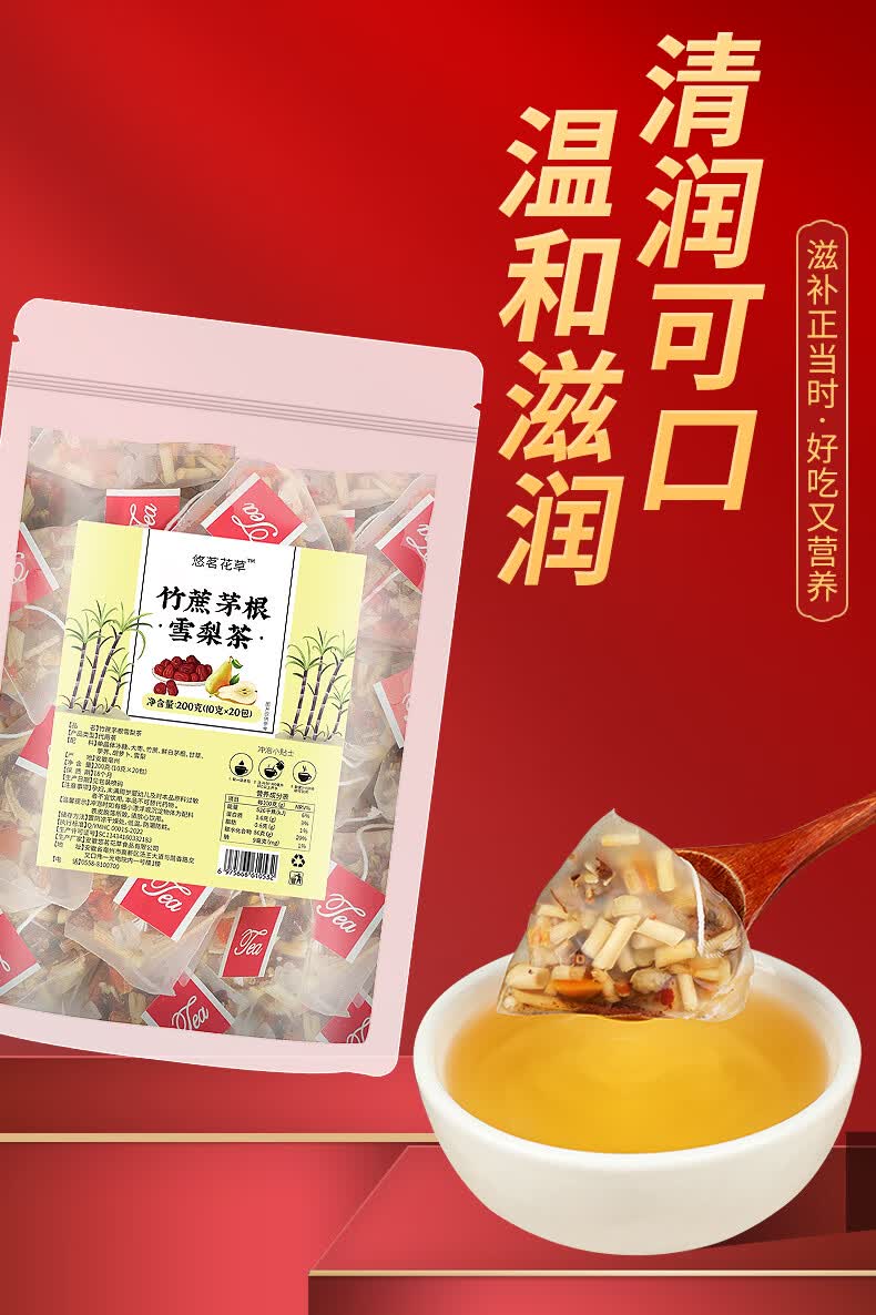 悠茗庭草竹蔗茅根雪梨茶广式夏季凉茶马蹄水清润茶免煮花茶组合水果茶300g 乌梅山楂茶袋装200g(10g*20包)