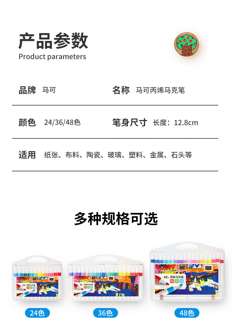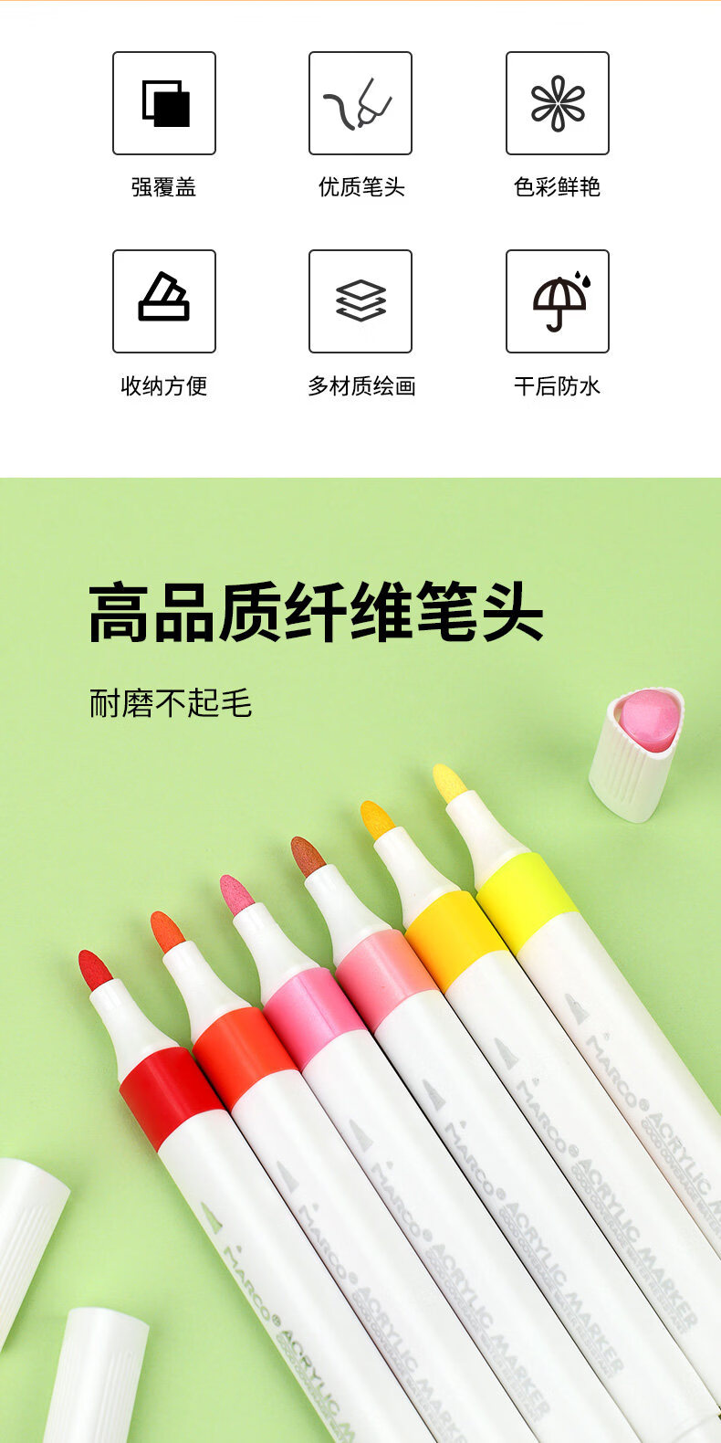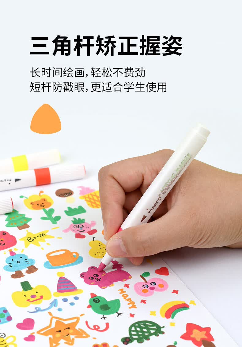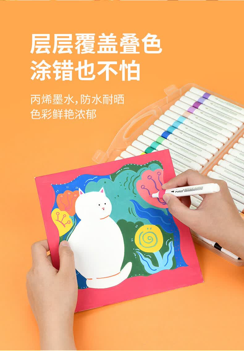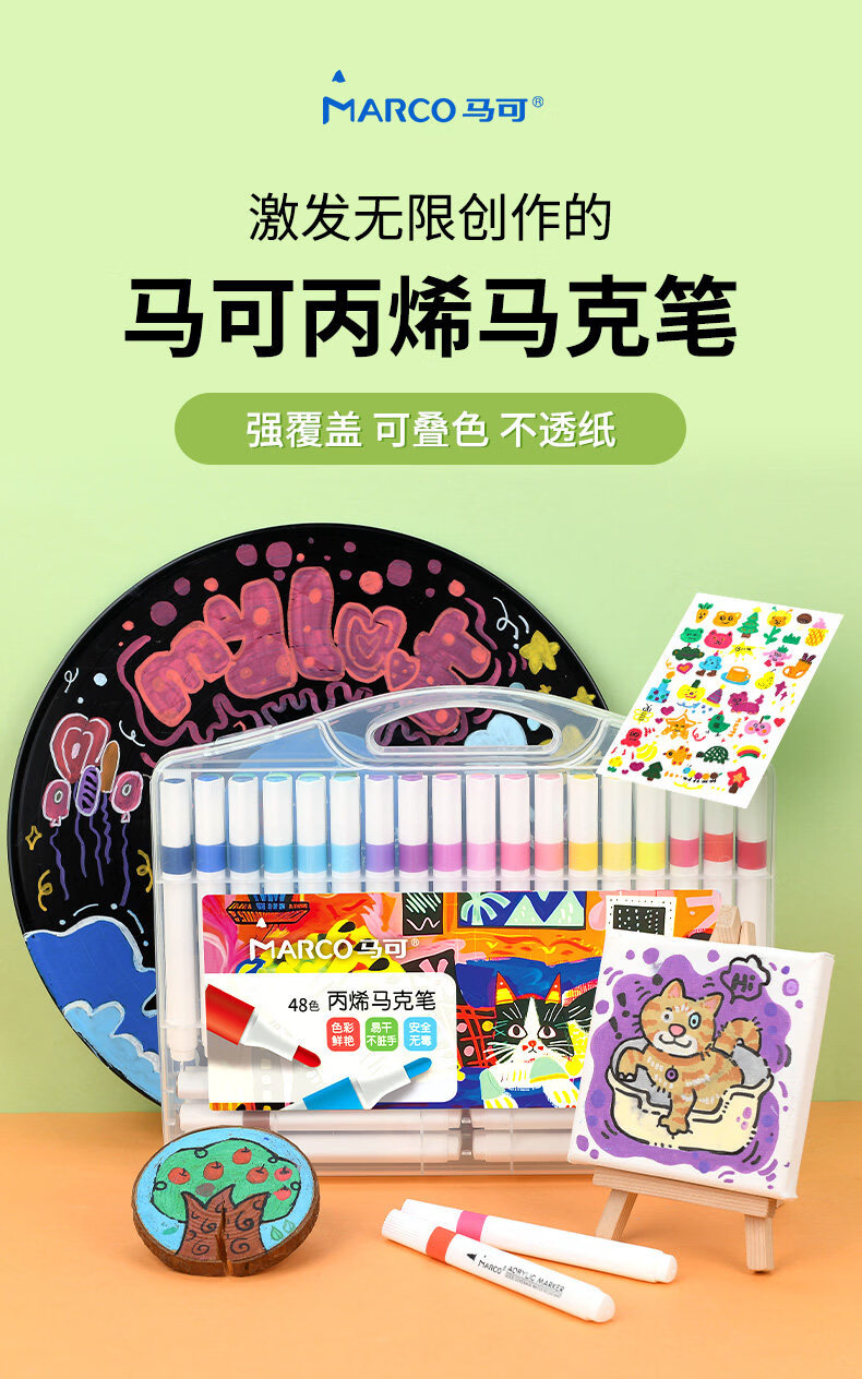 马可(MARCO)丙烯马克笔小学生美术初中生专用软头马克笔不透色可叠色专用儿童水彩笔 丙烯马克笔48色
