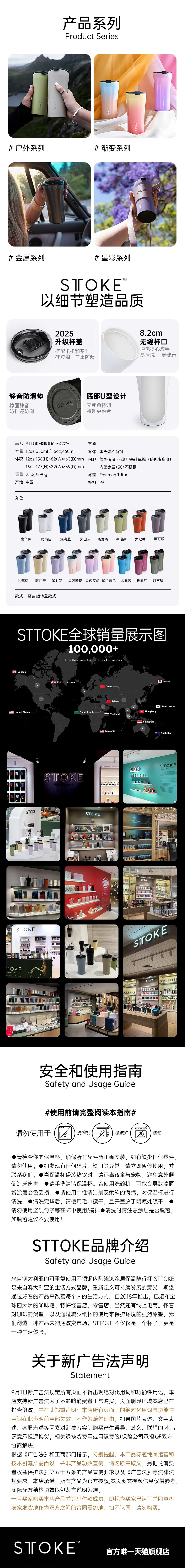 慕咖STTOKE经典款咖啡杯精致陶瓷内胆保温杯便携实用水杯TT杯节日礼物 奢华黑460ml【延伸盖组合】