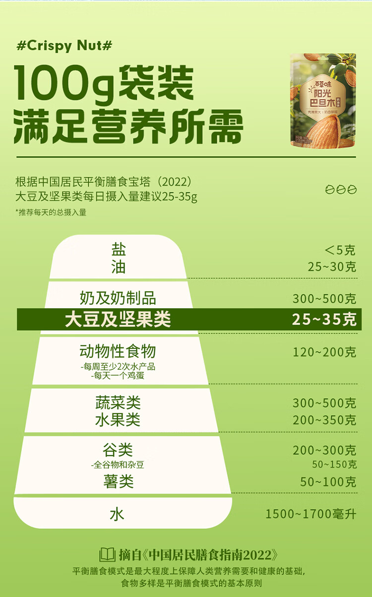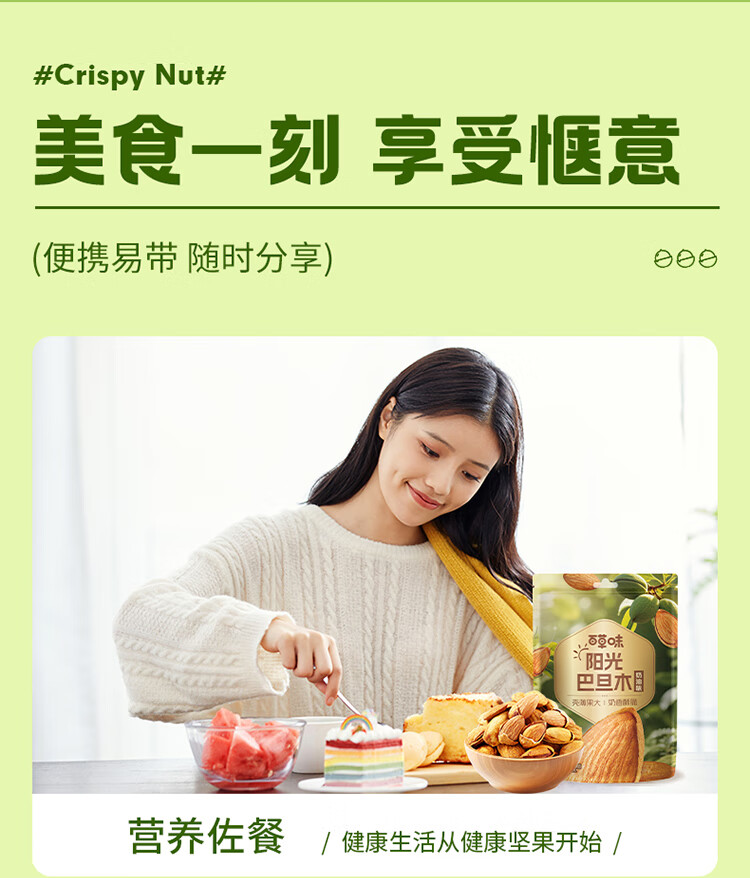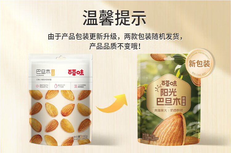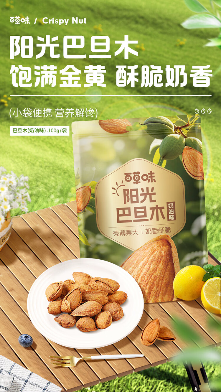 百草味巴旦木100g 奶油味 每日坚果干果休闲零食扁桃仁 新老包装随机发