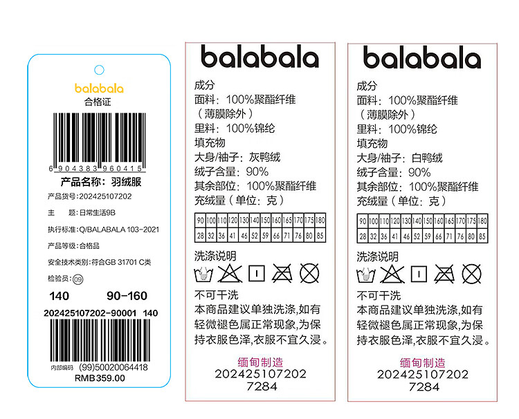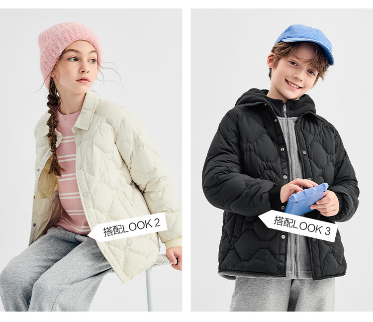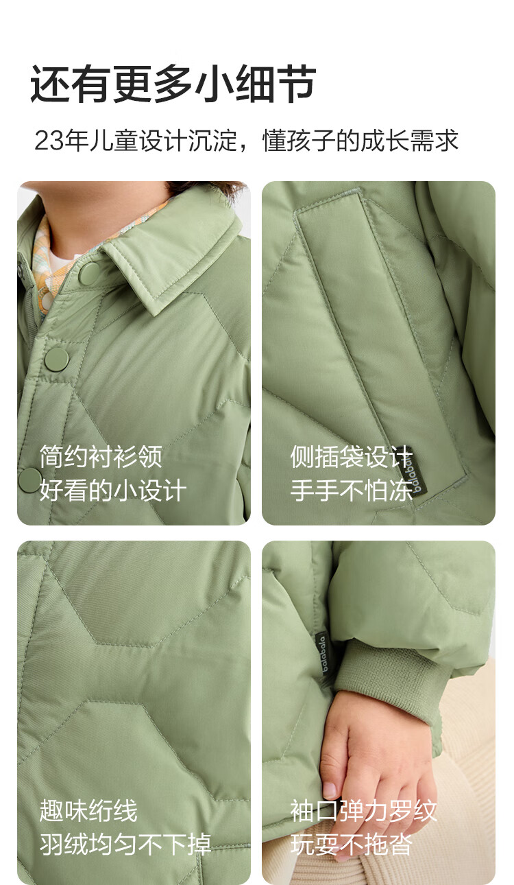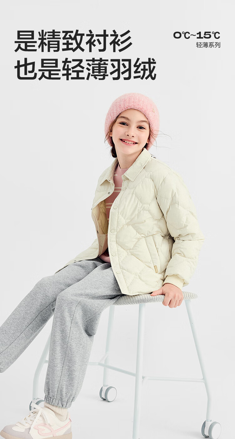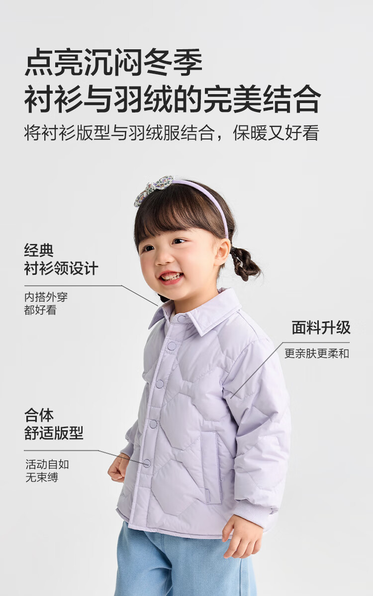 巴拉巴拉儿童轻薄羽绒服男女童2025冬衬衫式外套【商场同款】202425107202