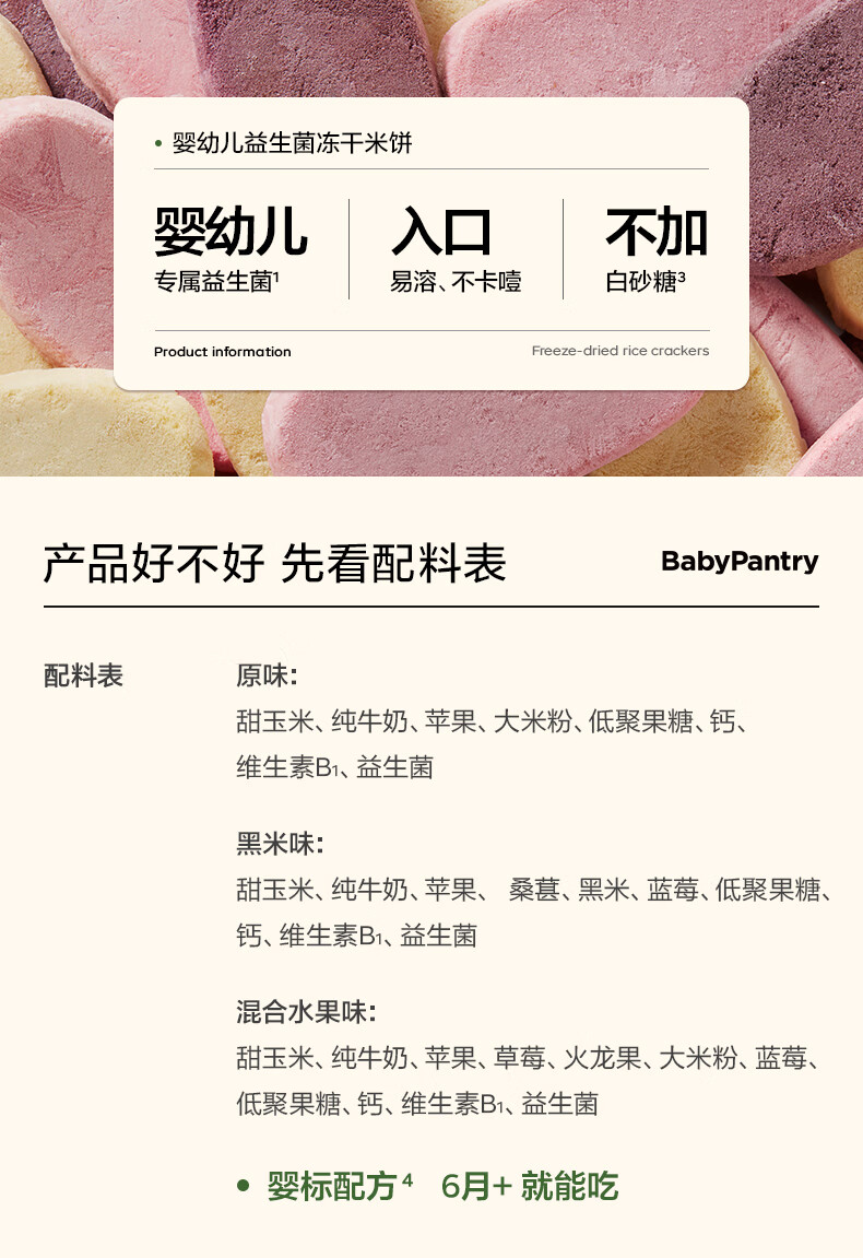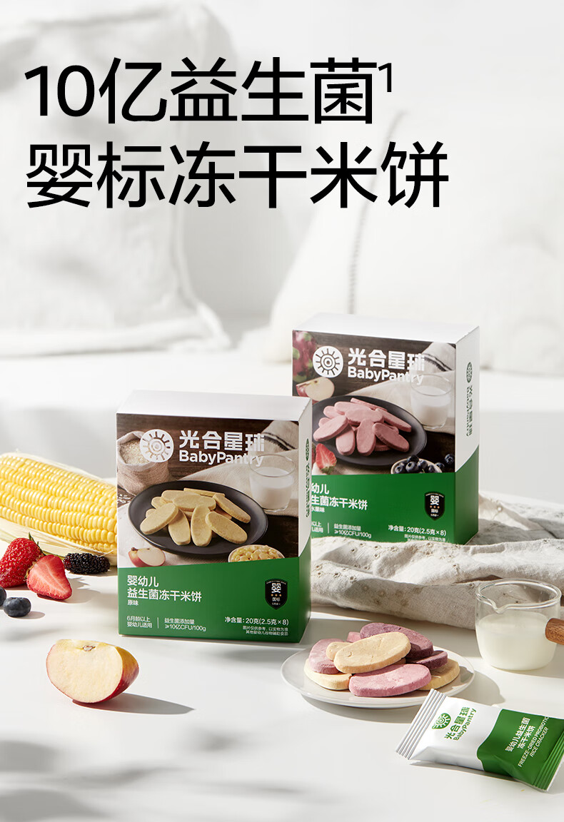 光合星球babycare婴幼儿童零食益生菌冻干米饼混合水果味6月+20g