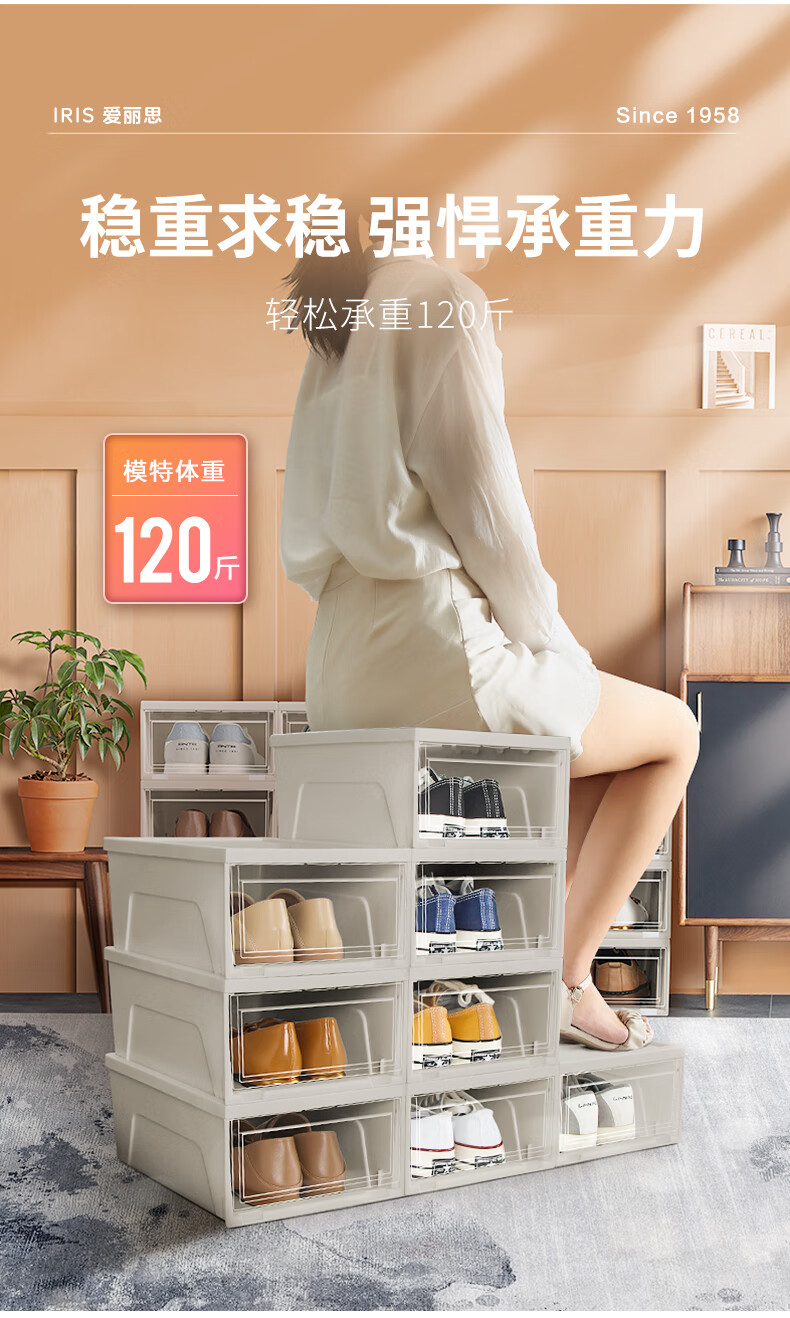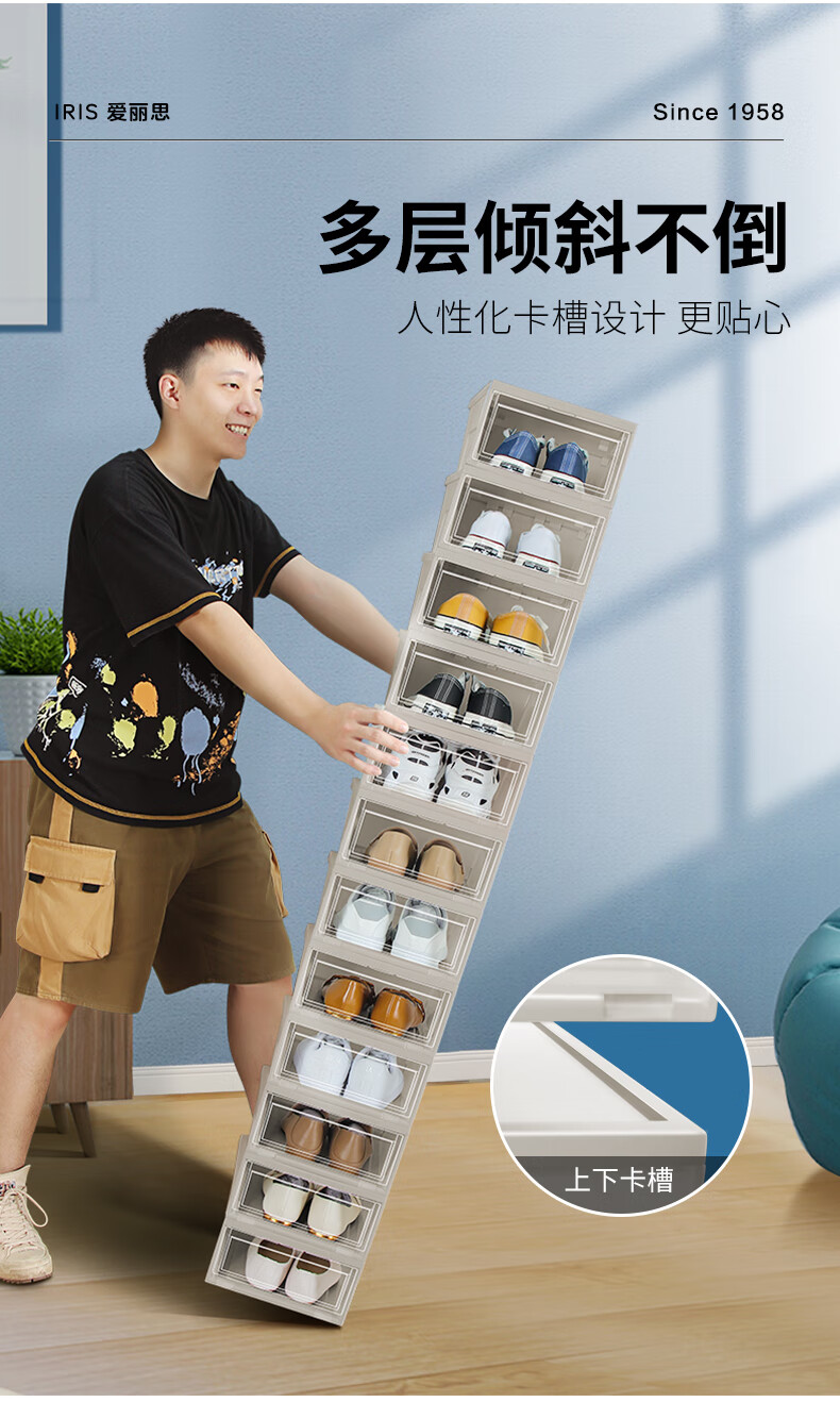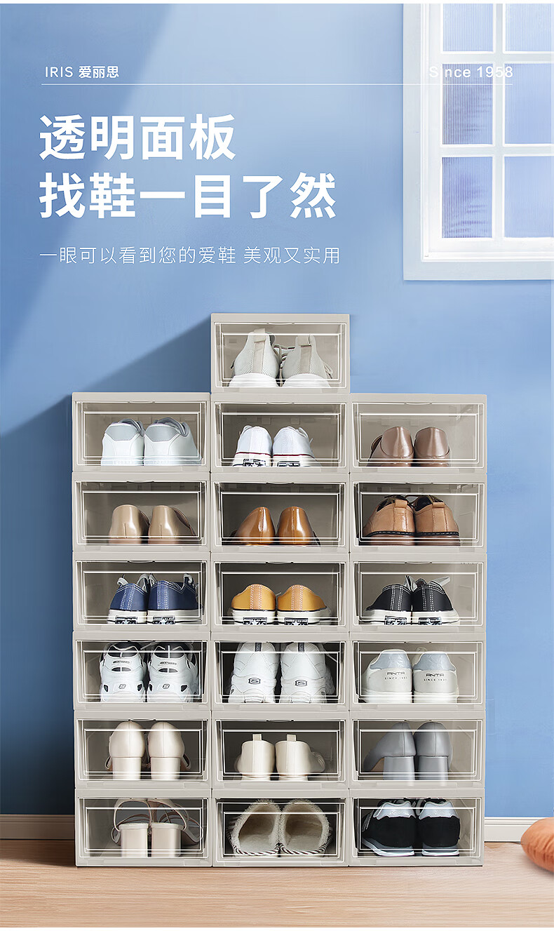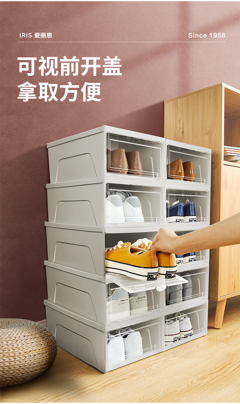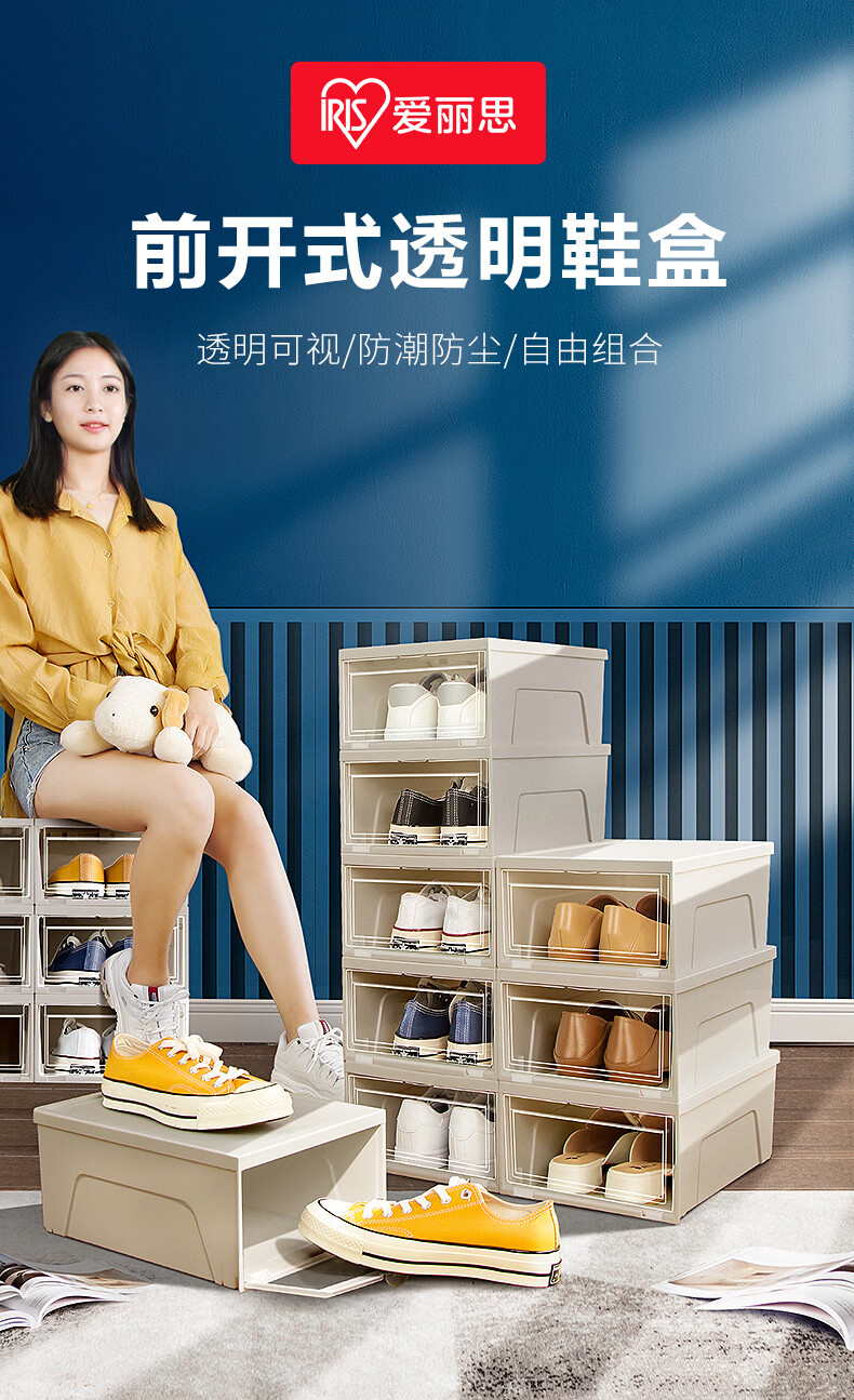 爱丽思(IRIS)鞋盒透明鞋柜防尘防潮鞋架前开式鞋子收纳盒收纳柜 4个装