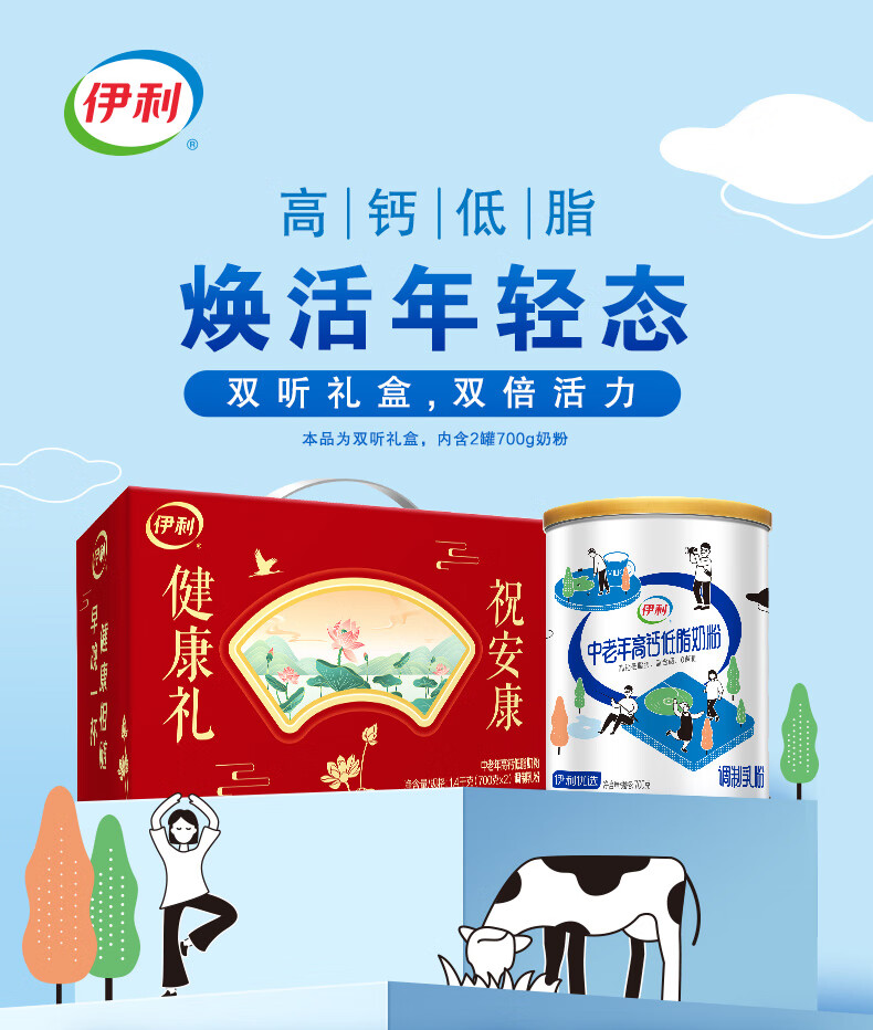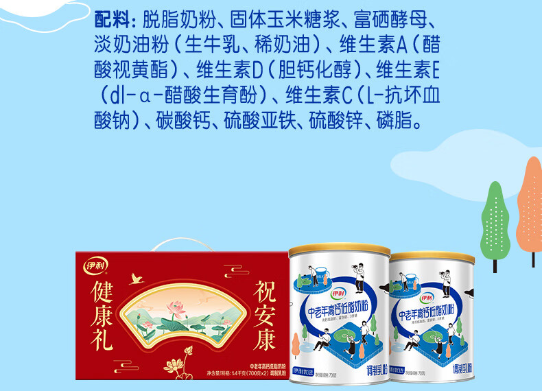 伊利中老年高钙低脂富硒奶粉 中老年奶粉 礼盒 营养品 送长辈 700g*2