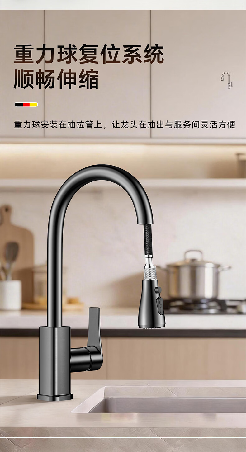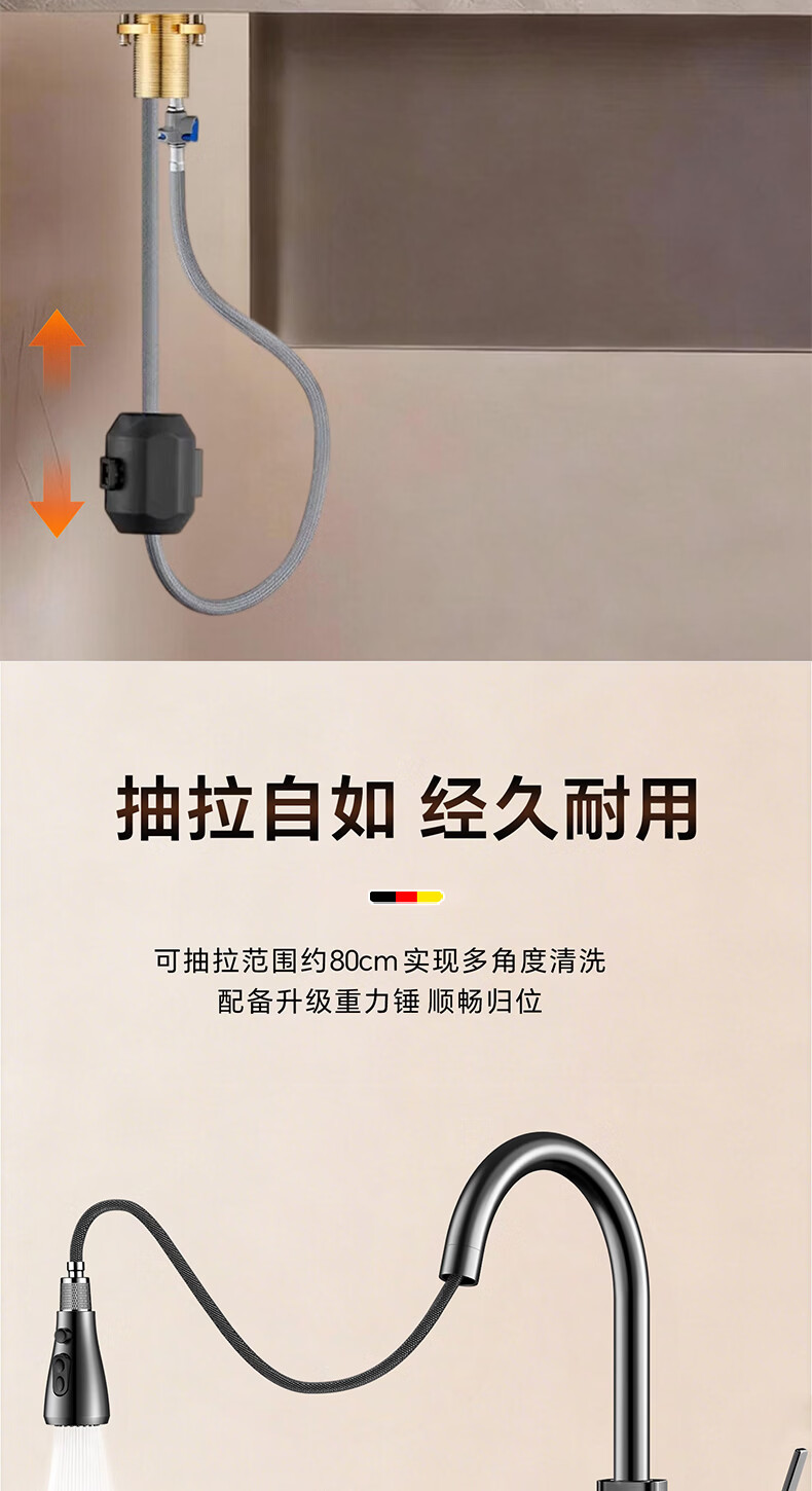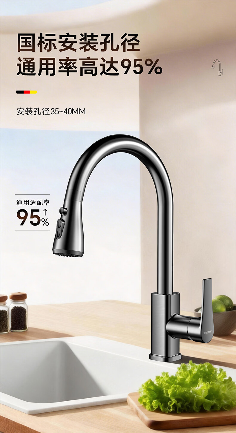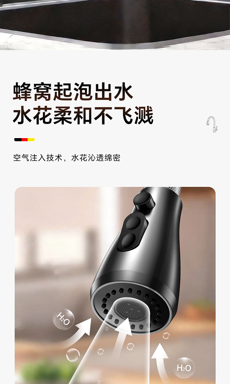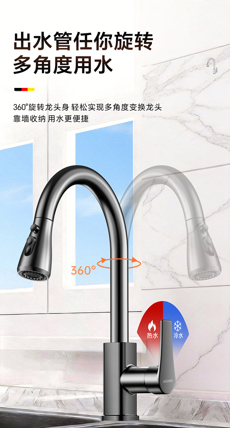 HOMK【德国】厨房洗菜盆水龙头冷热水二合一抽拉式专用洗手池水槽龙头 【冷热双控】方体厨房抽拉龙头 防腐防锈丨德国品质丨万向抽拉