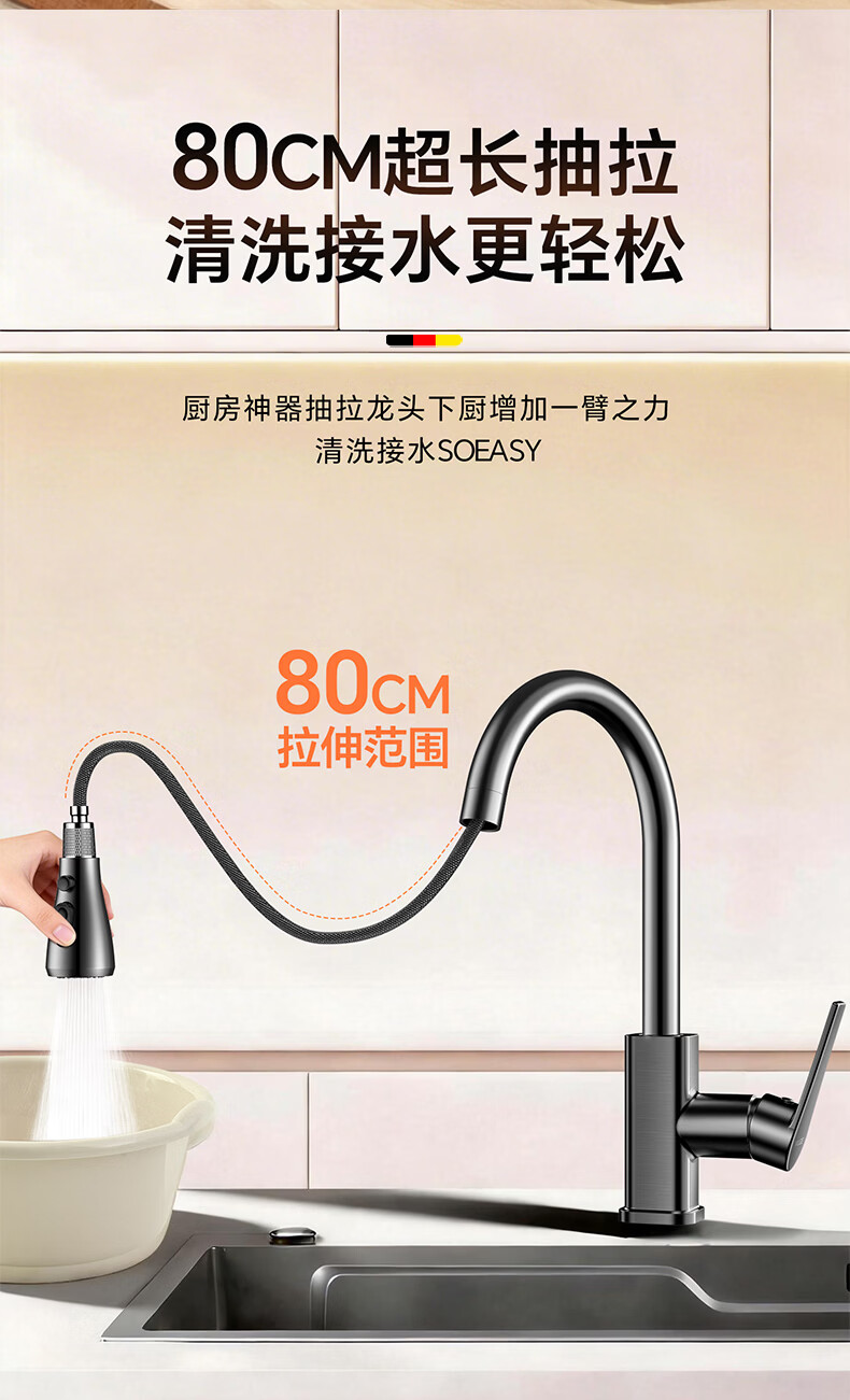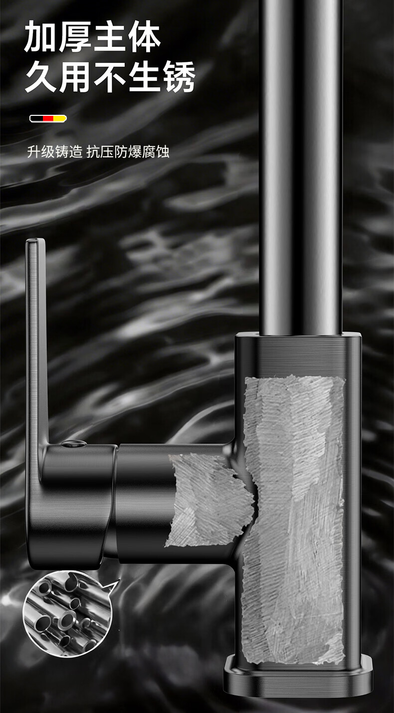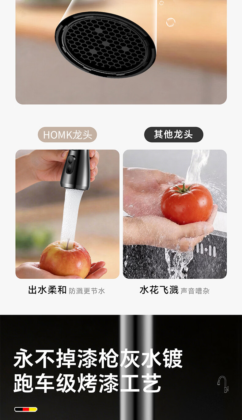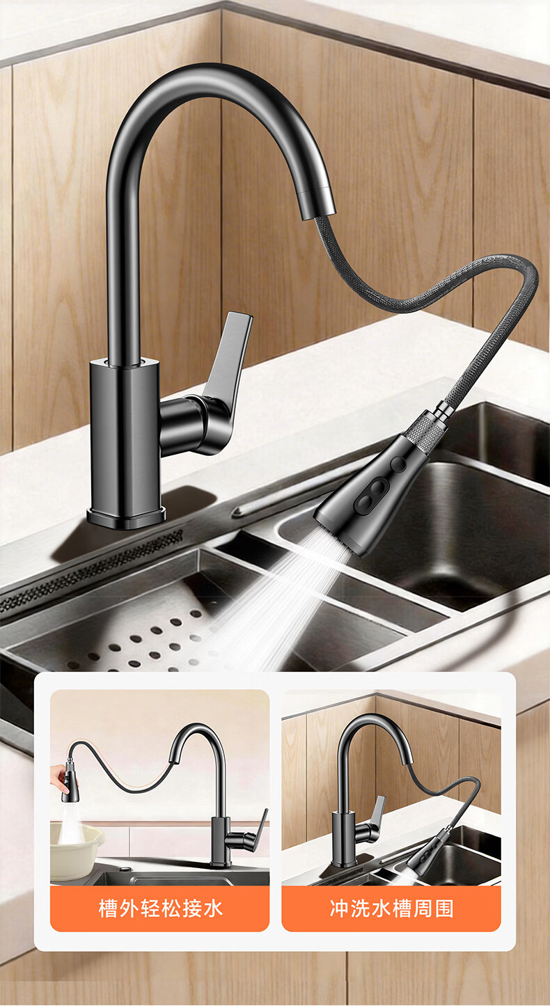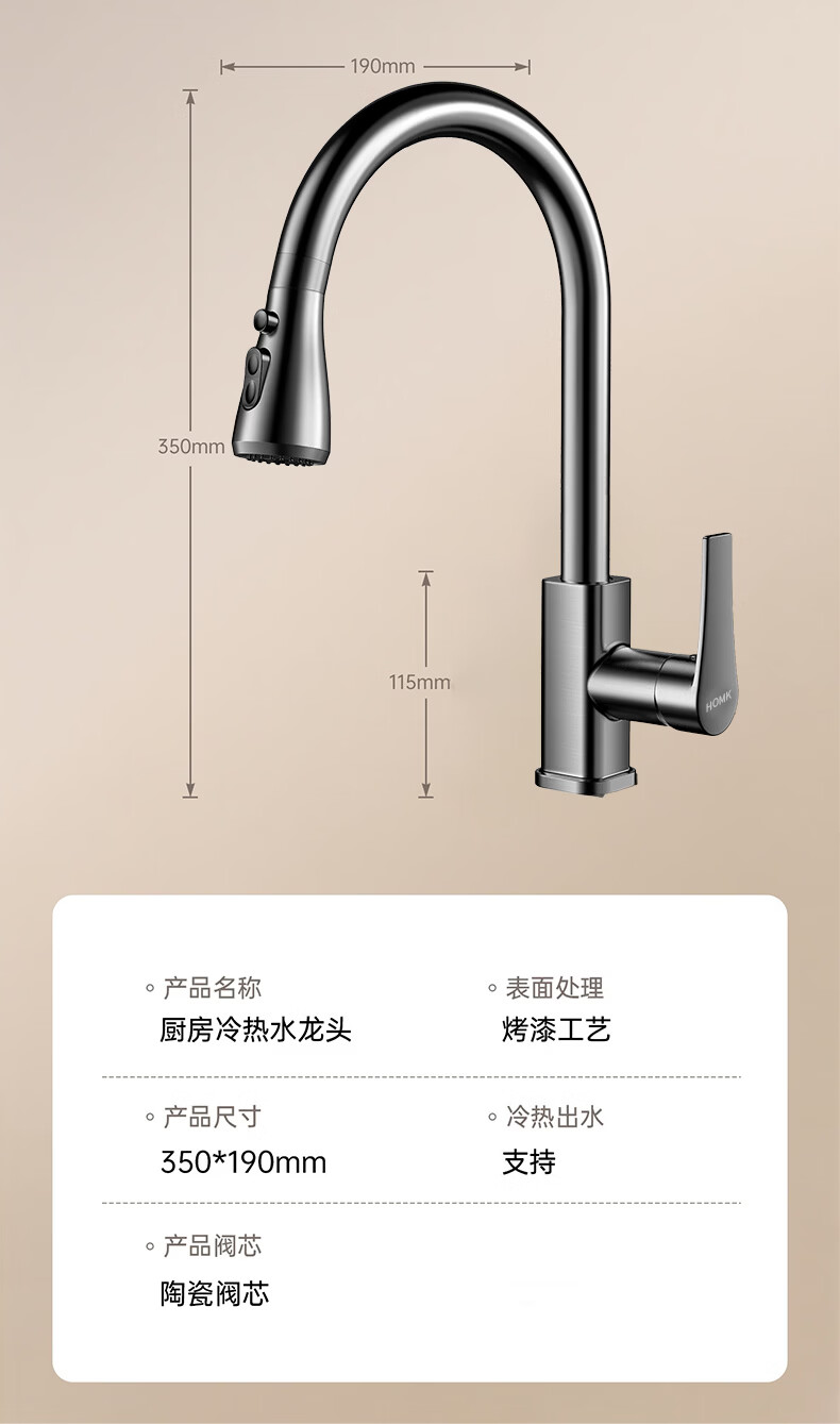 HOMK【德国】厨房洗菜盆水龙头冷热水二合一抽拉式专用洗手池水槽龙头 【冷热双控】方体厨房抽拉龙头 防腐防锈丨德国品质丨万向抽拉
