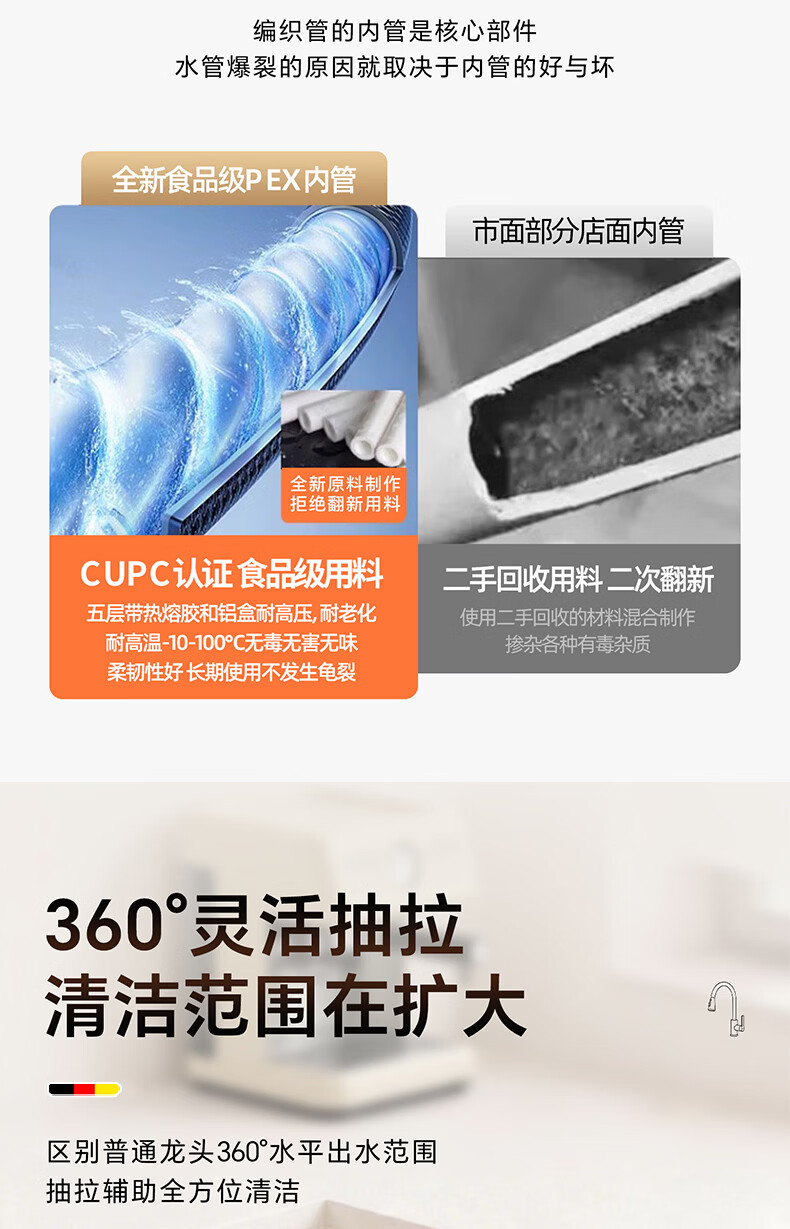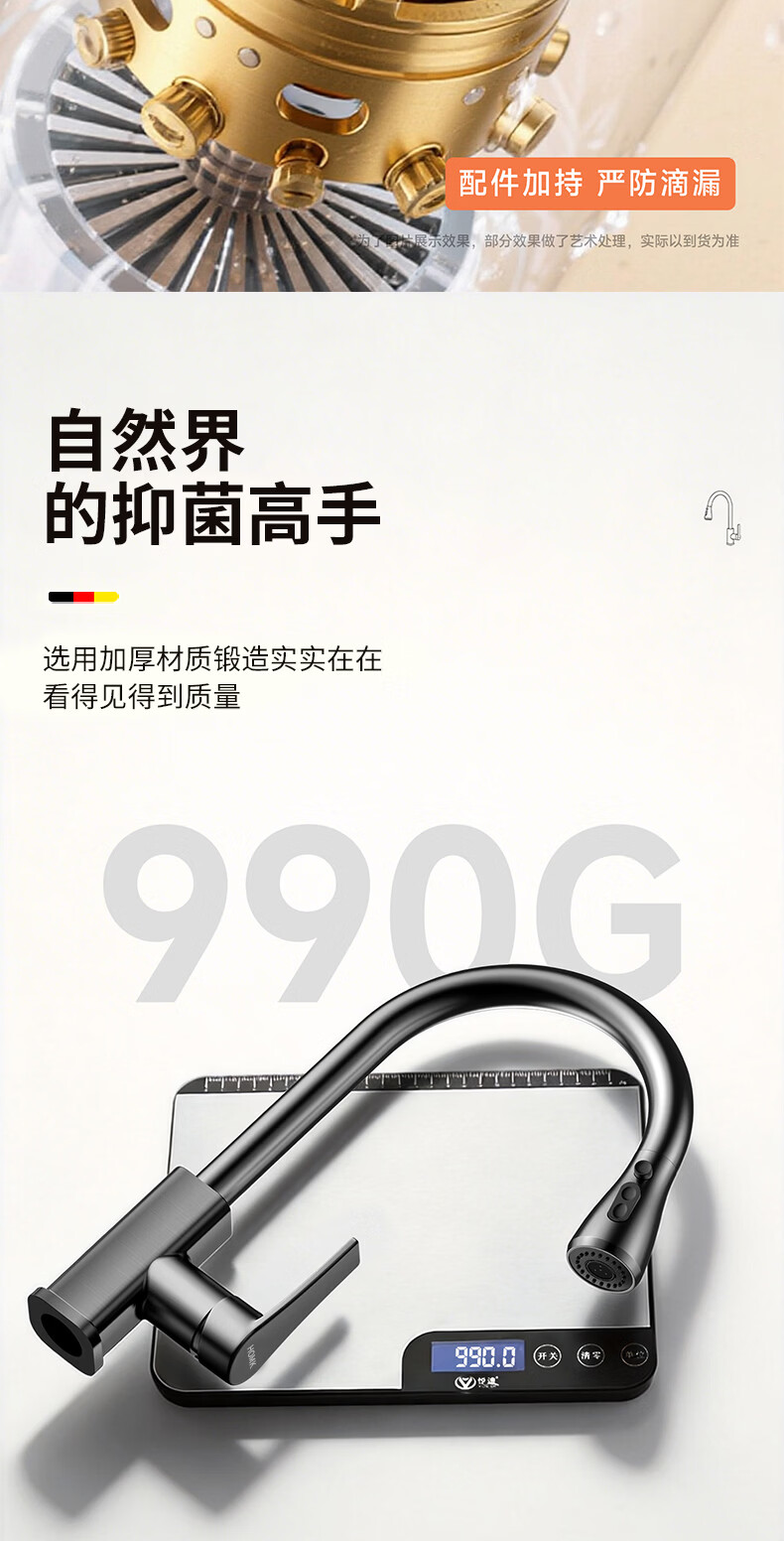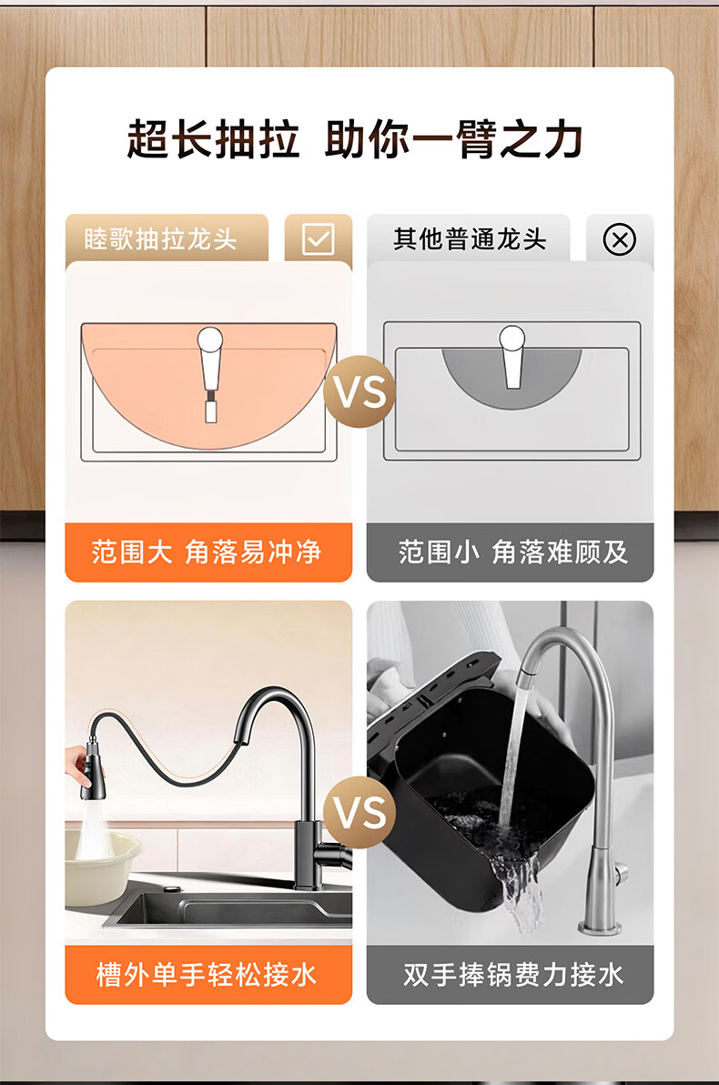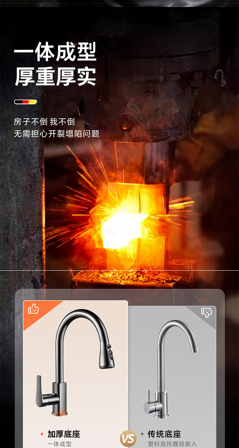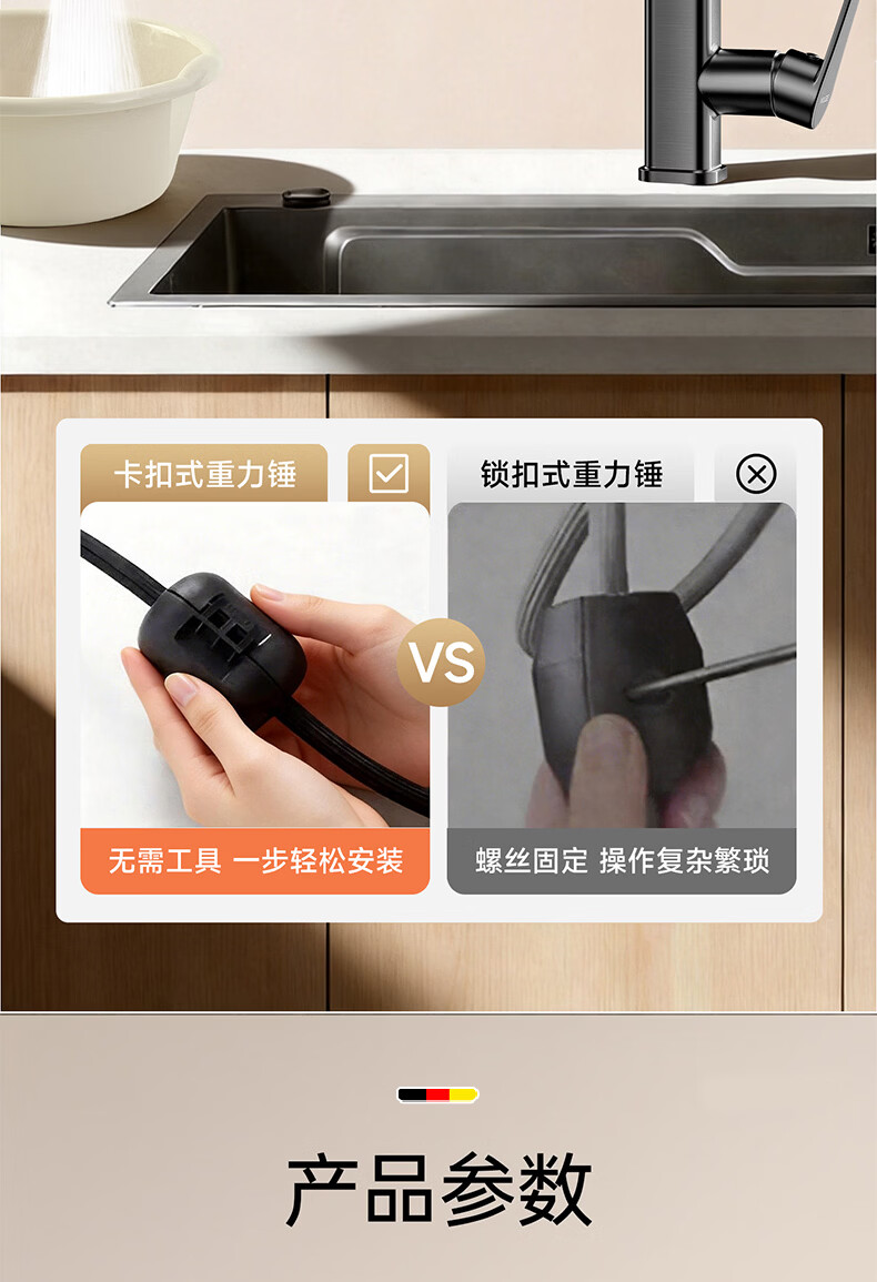 HOMK【德国】厨房洗菜盆水龙头冷热水二合一抽拉式专用洗手池水槽龙头 【冷热双控】方体厨房抽拉龙头 防腐防锈丨德国品质丨万向抽拉
