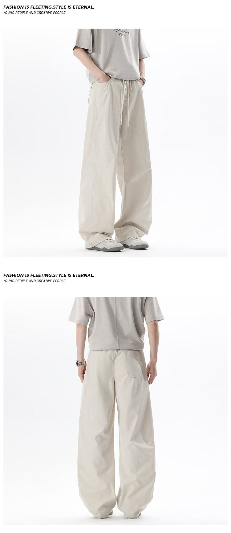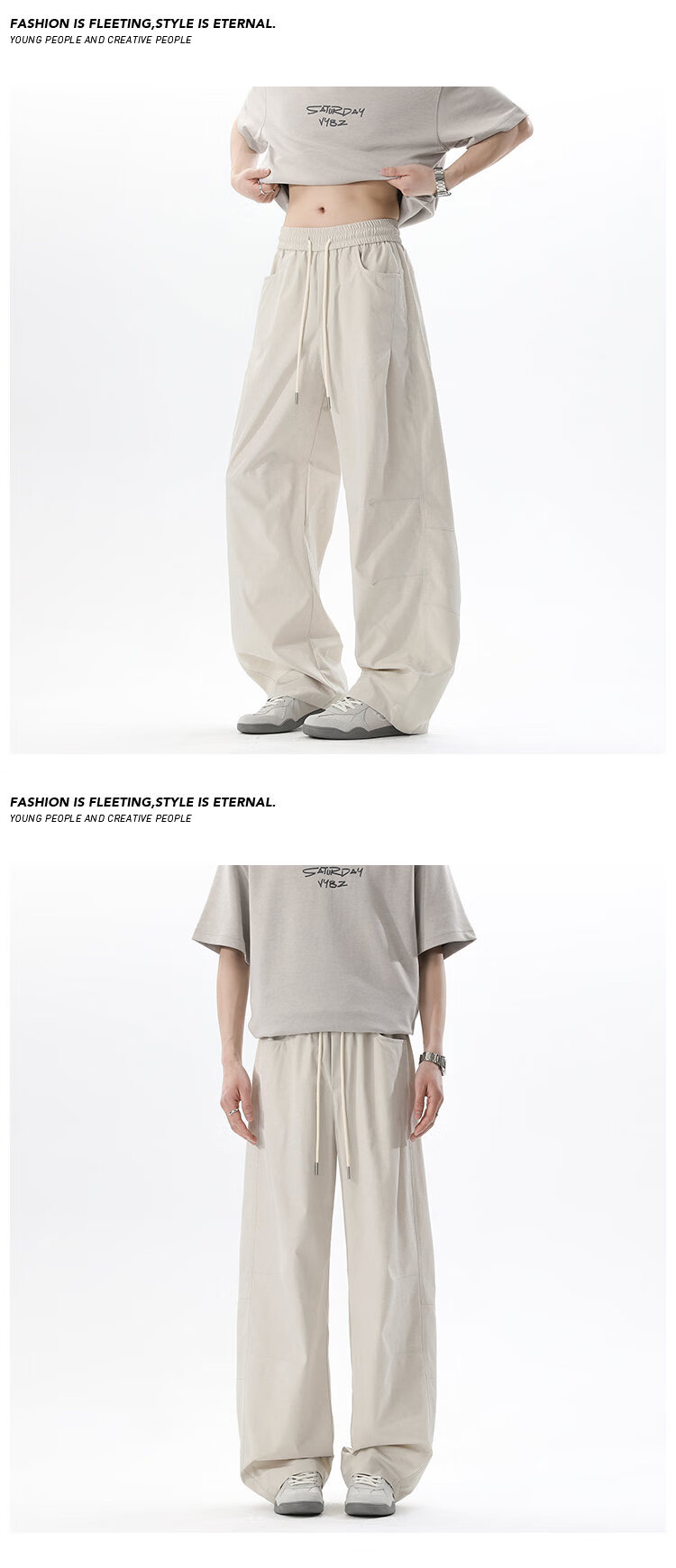 有只绵阔腿裤云朵轻盈窄版裤子女裤阔腿裤运动春夏休闲直筒裤不透明 米白色 (微透需搭浅色底裤) 均码 (80-140斤)裤长100CM 裤腰带统一米白
