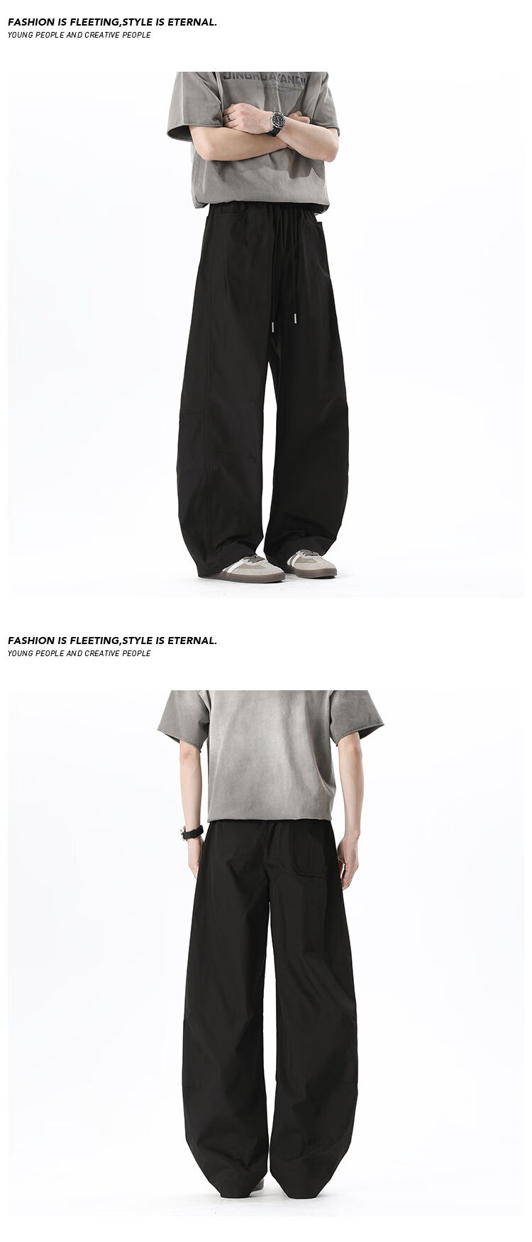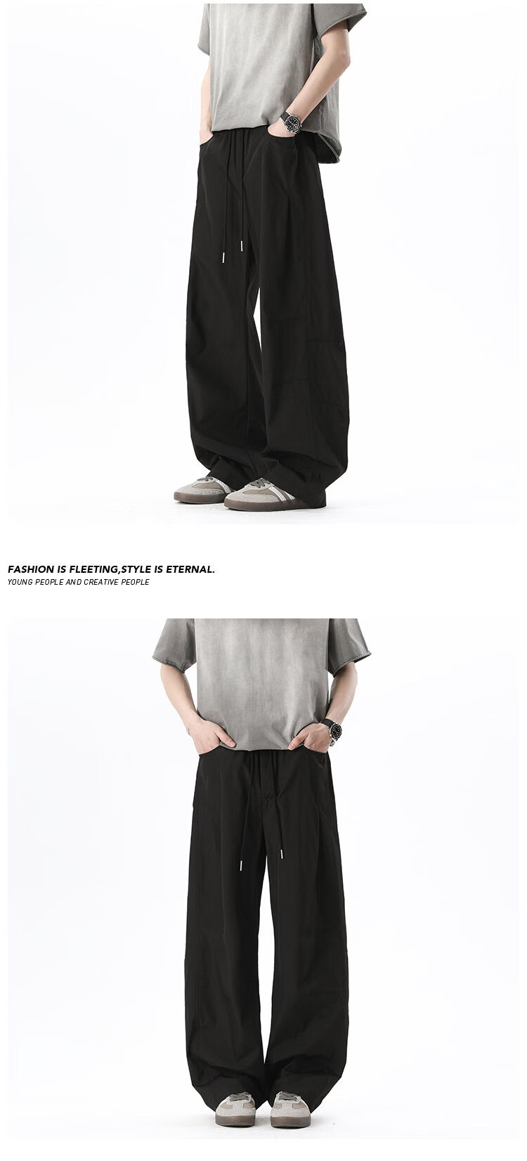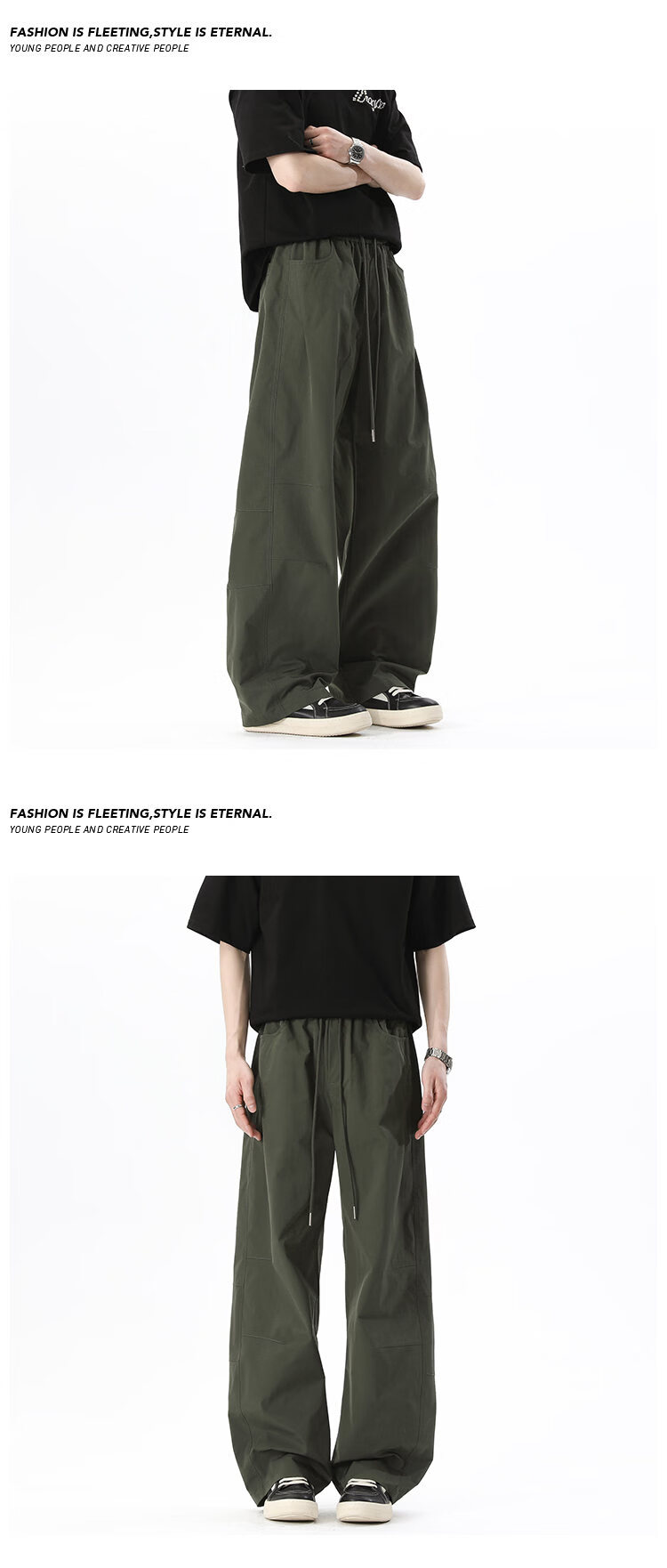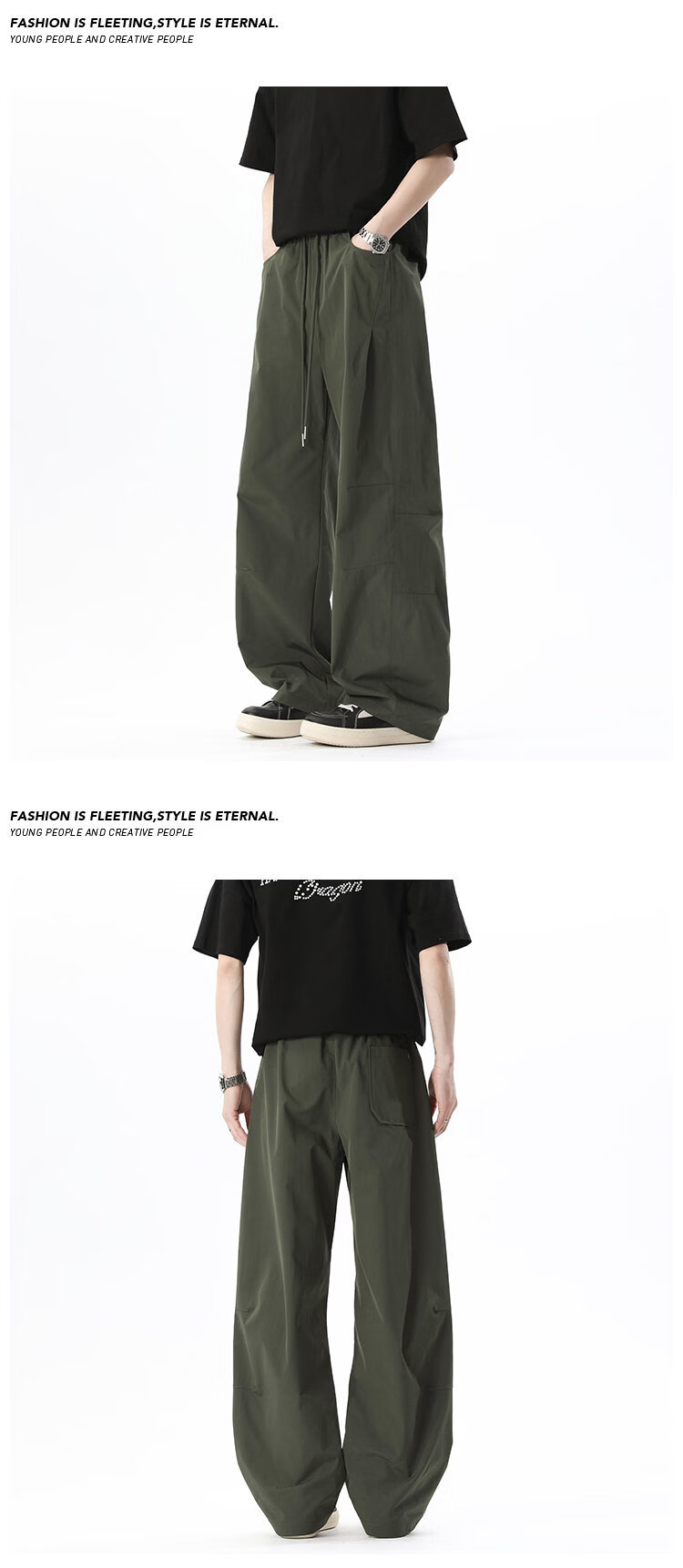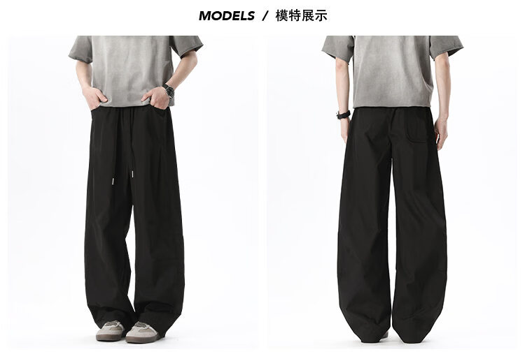 NEW OR MODE美式拼接速干休闲裤男夏季薄款宽松运动长裤子百搭休闲阔腿弯刀裤 军绿色【高品质】 M 【建议90-110斤】