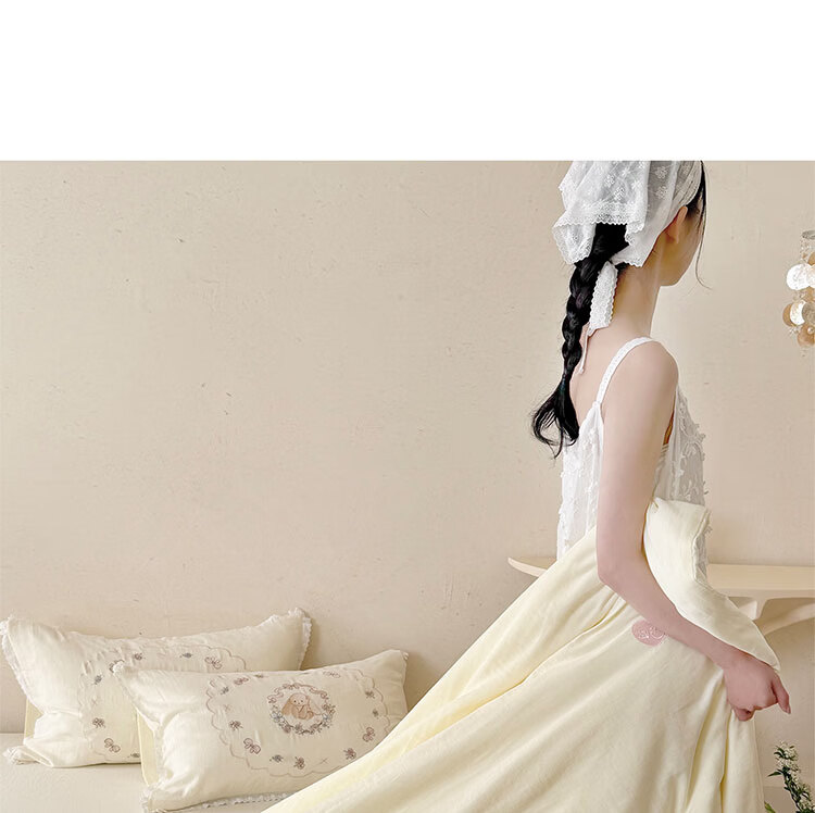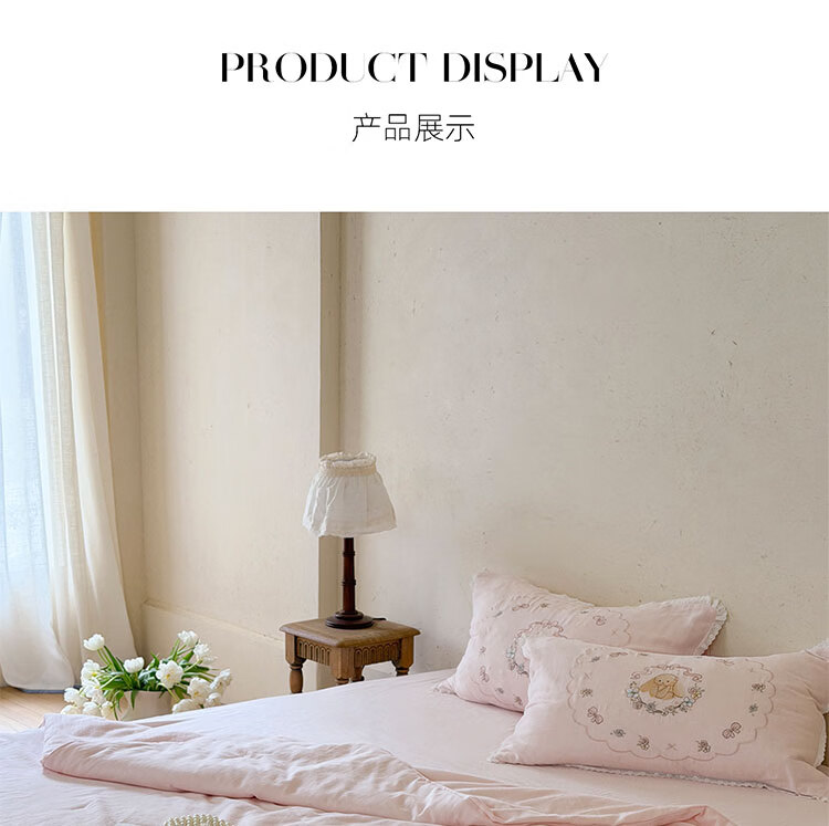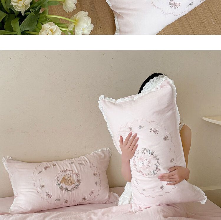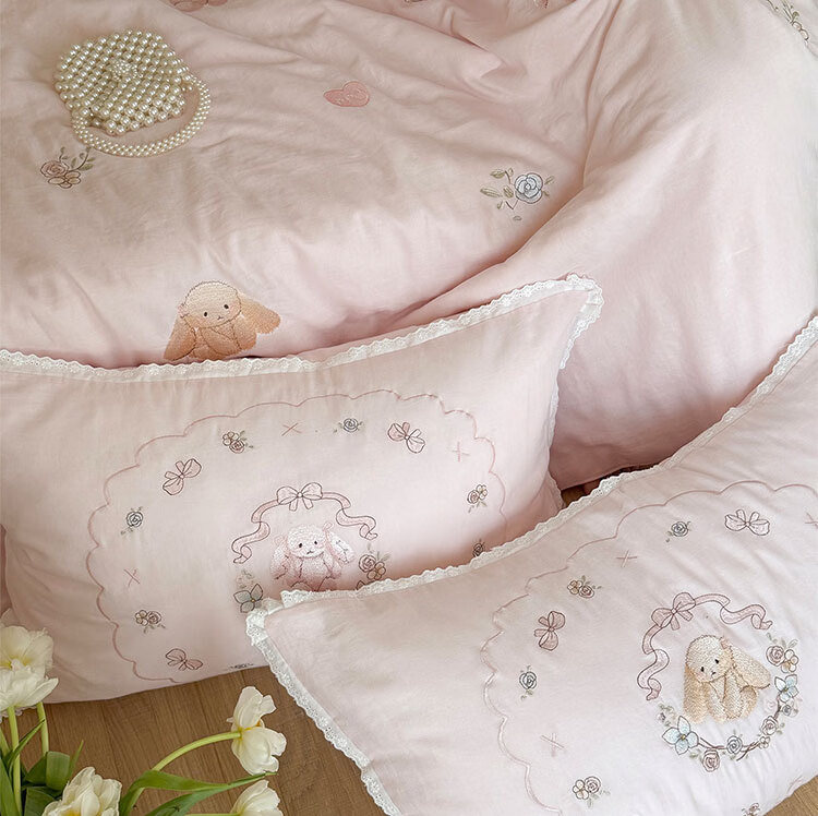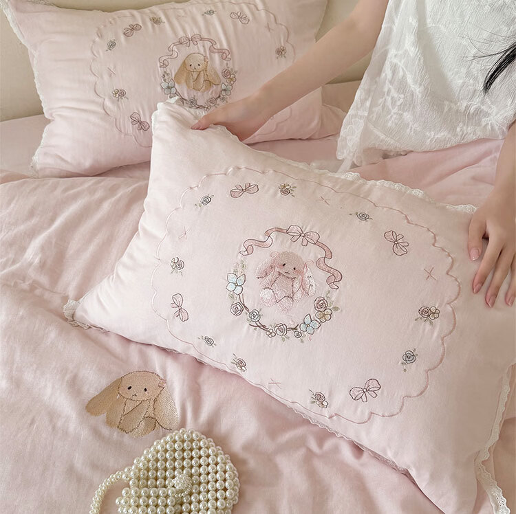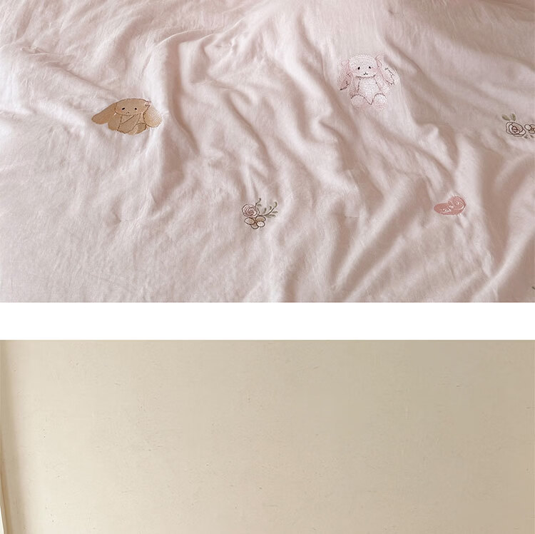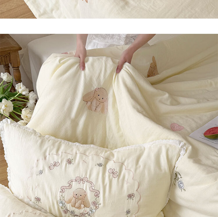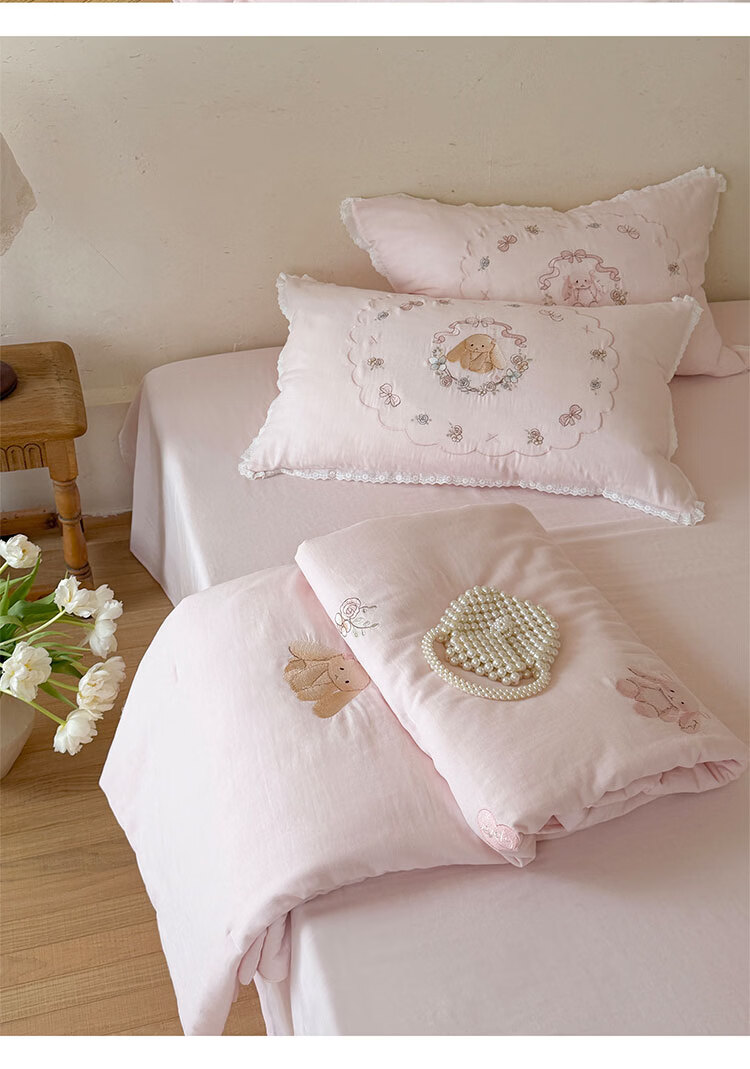 ROLAND LIVE全棉皱皱纱刺绣夏被小清新风空调被亲肤透气夏季薄被子夏被四件套 LB 全棉皱皱纱夏被-糯糯奶泡粉色 单夏被200cm*230cm