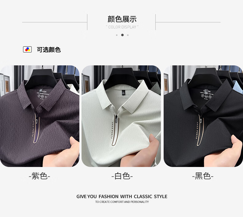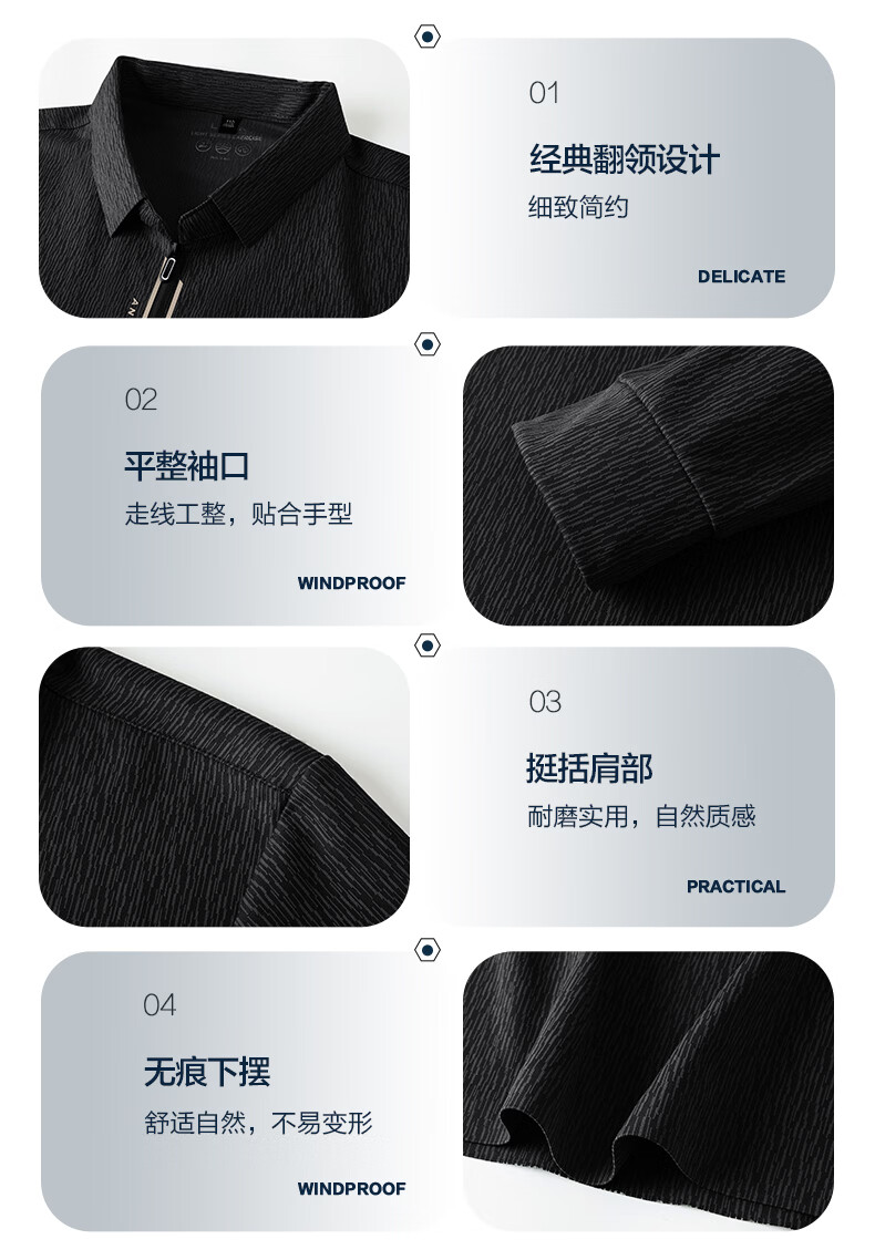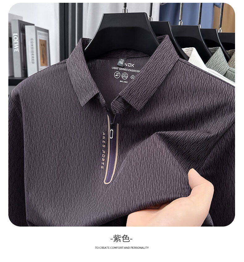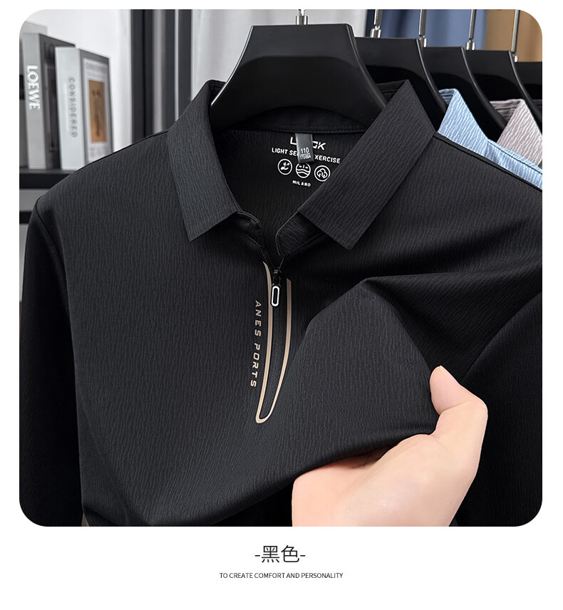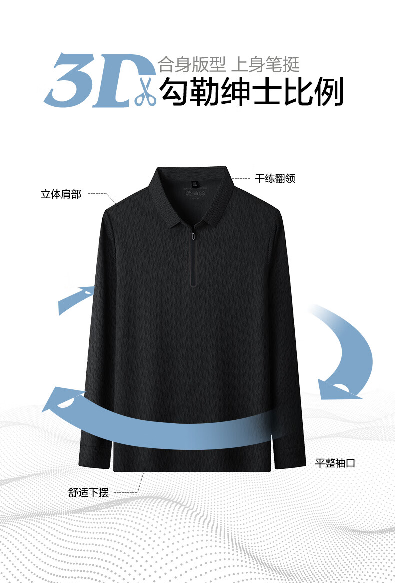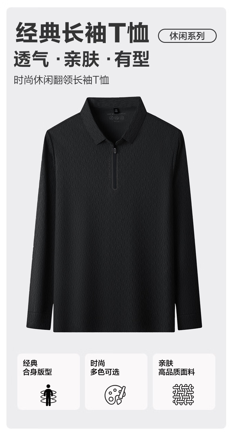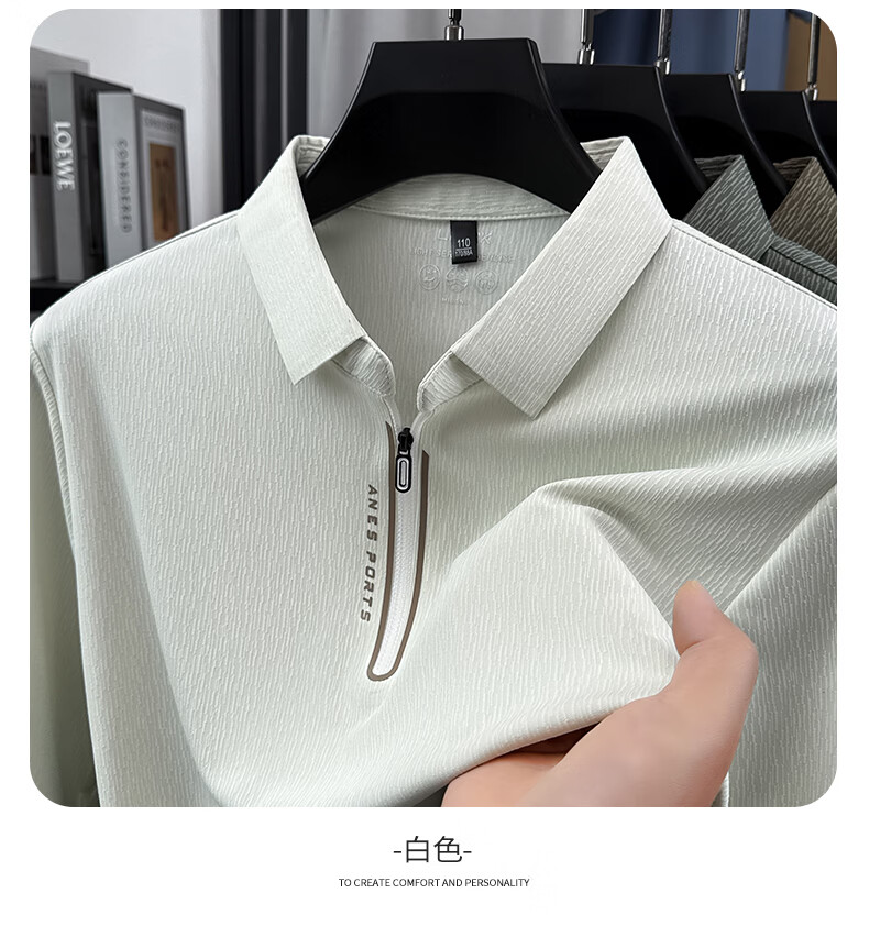 SHANSHAN杉杉【锦氨弹力】长袖t恤男半拉链翻领POLO衫日常休闲通勤打底 白色 S /165