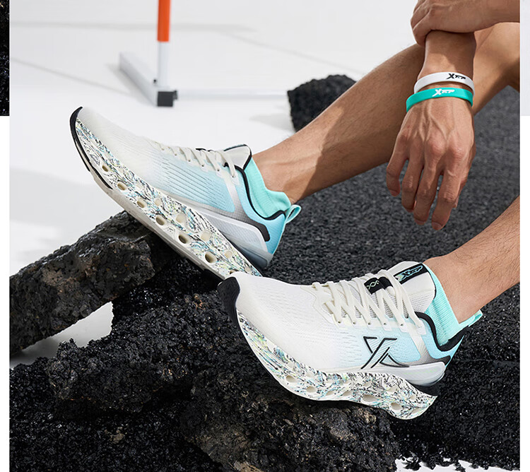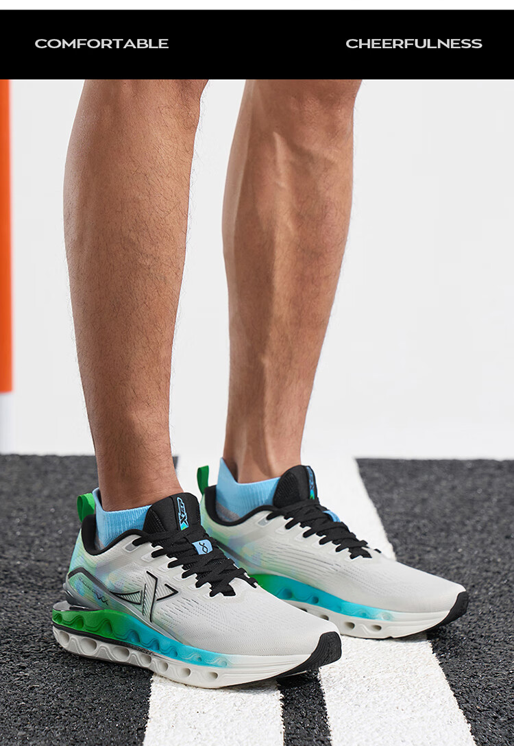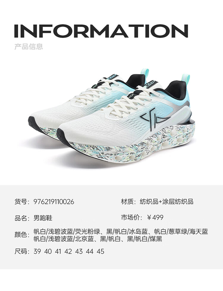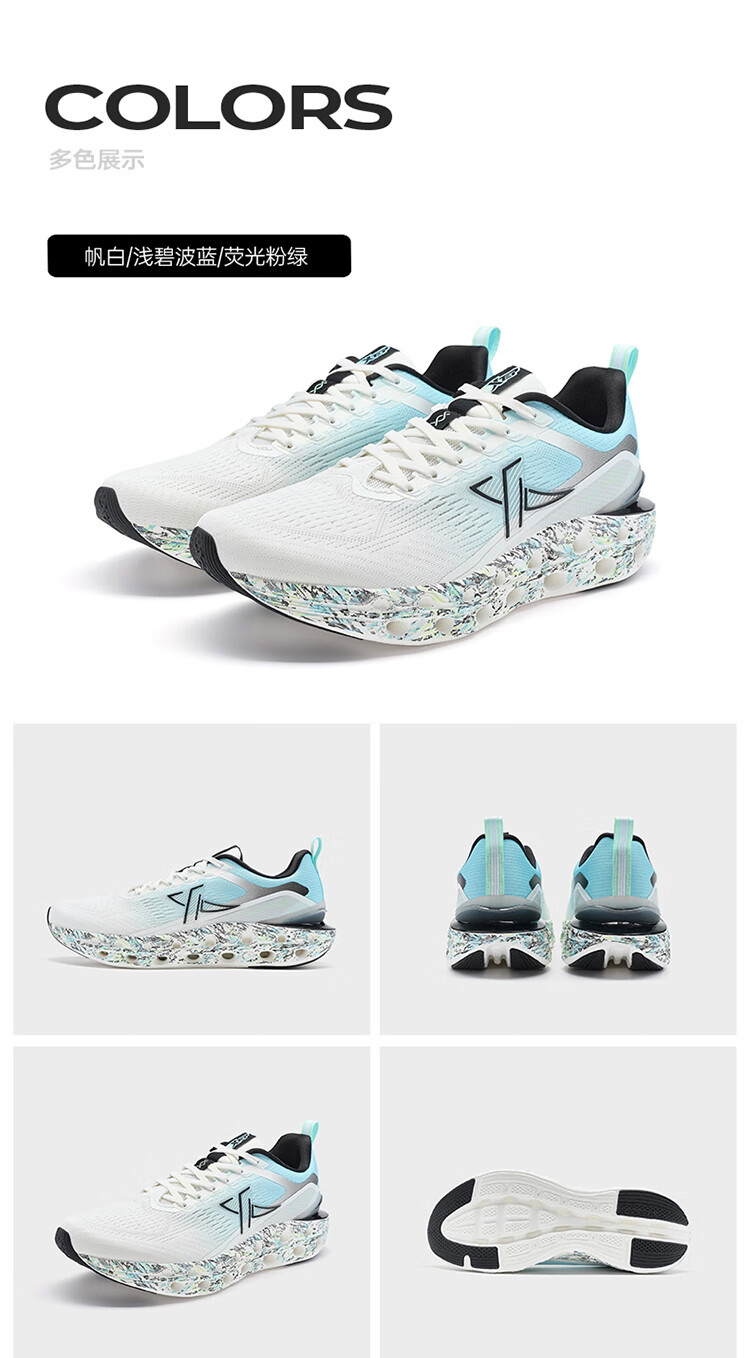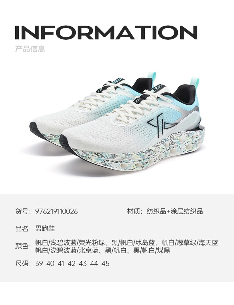 特步(XTEP)【门店同款】减震旋11.0跑步鞋男24夏季透气缓震跑鞋 帆白/浅碧波蓝/荧光粉绿 41