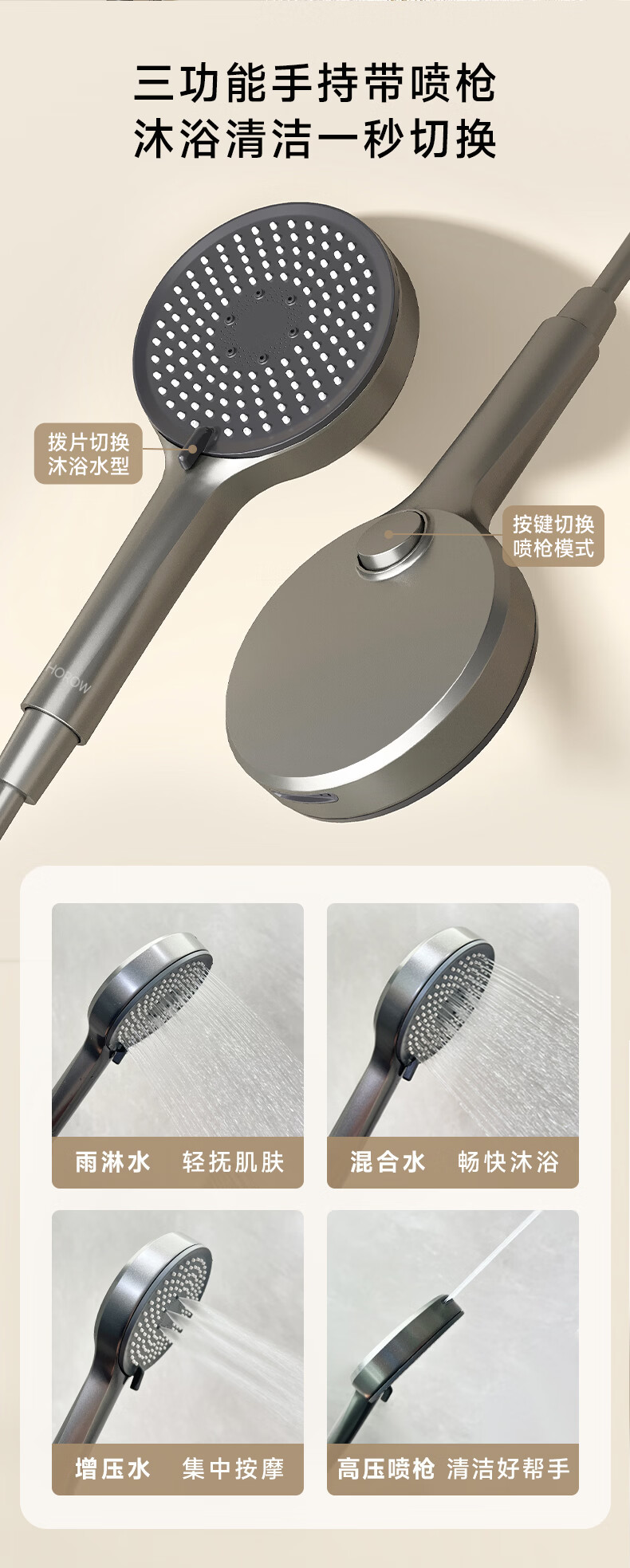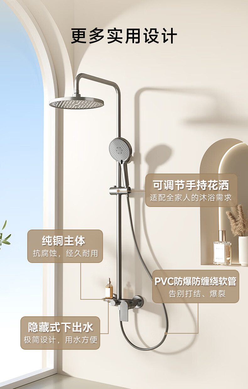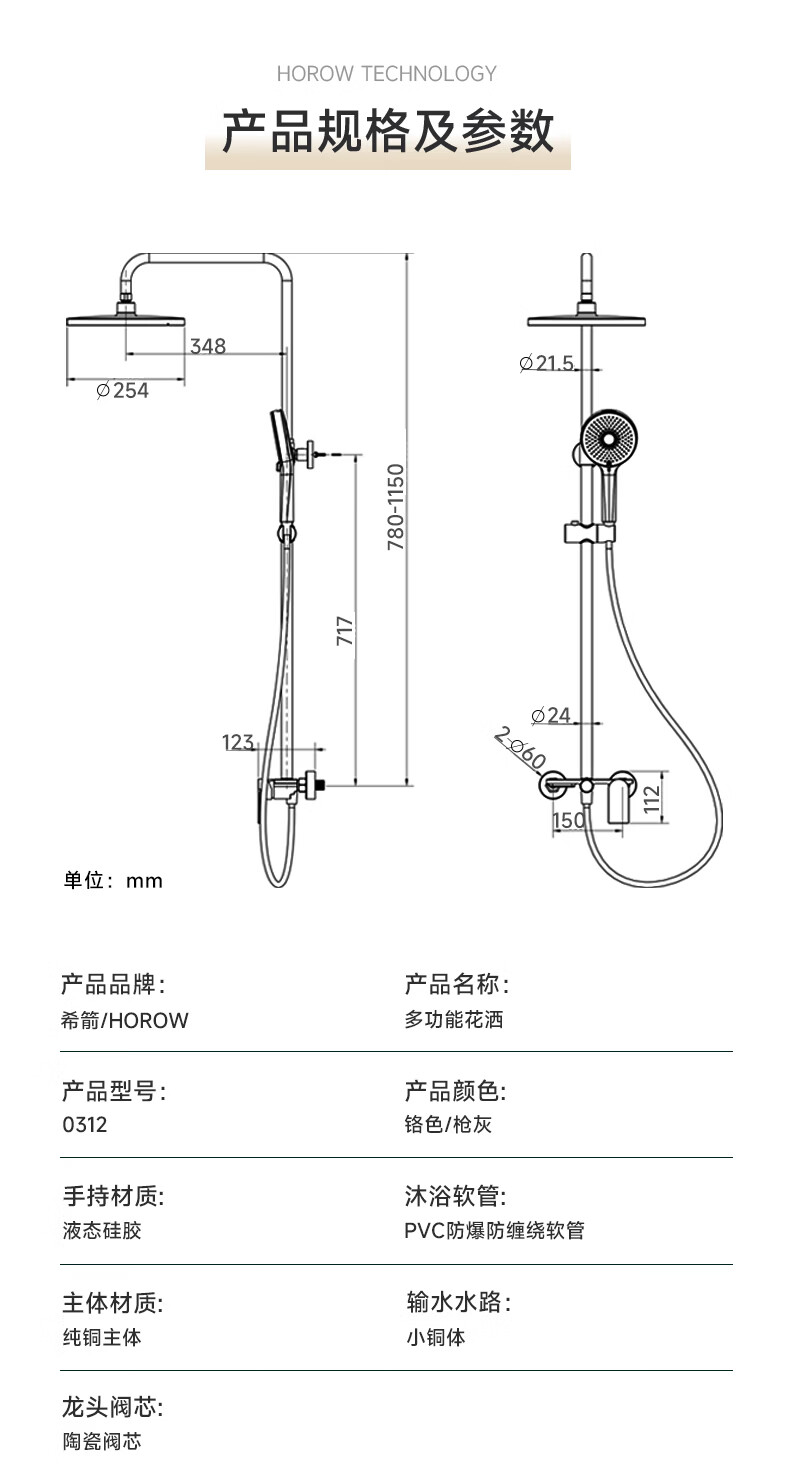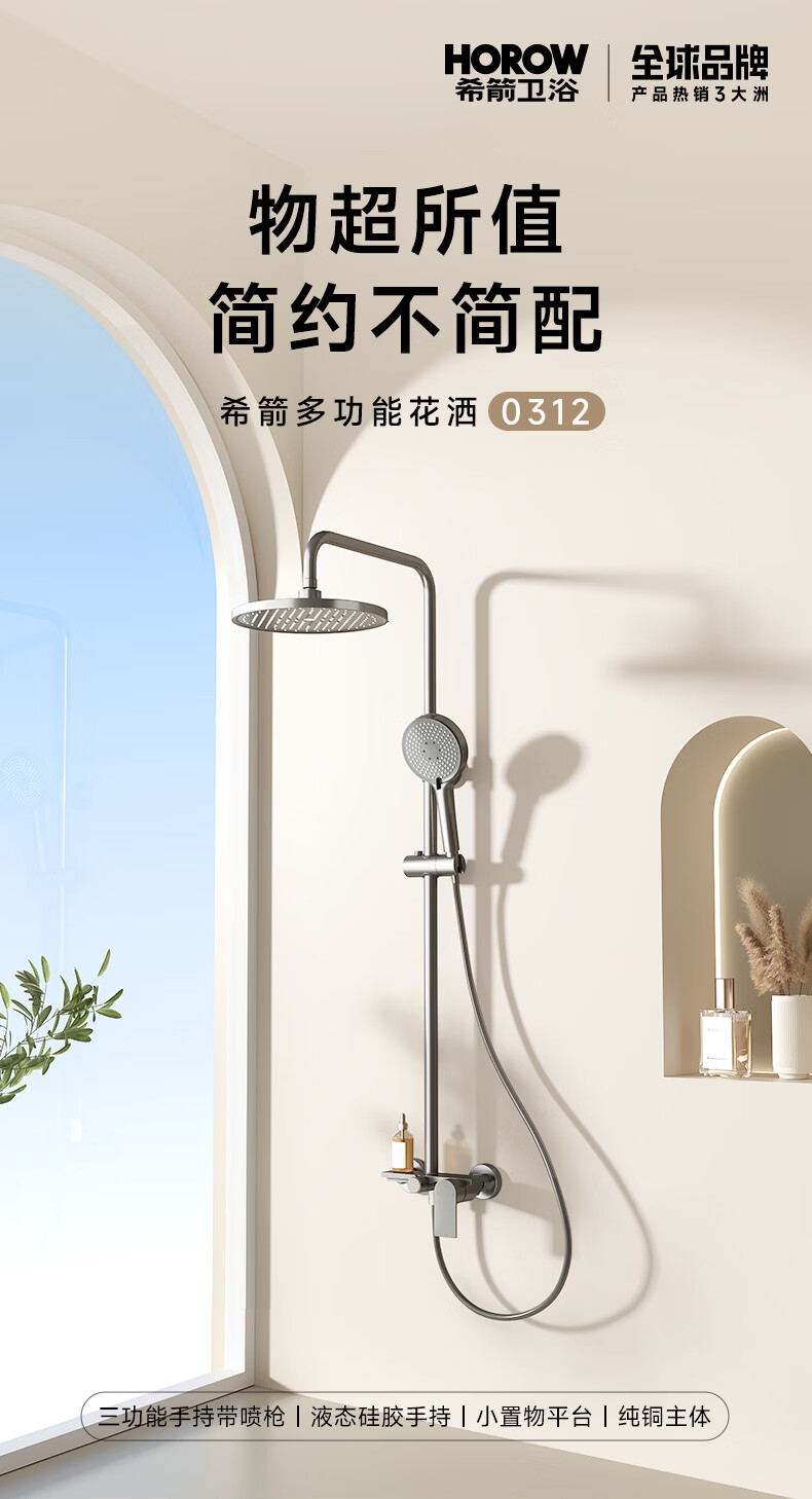 希箭(HOROW)纯铜主体0312系列小平台淋浴花洒O2O(不含安装) 铬色【小置物平台、纯铜主体】