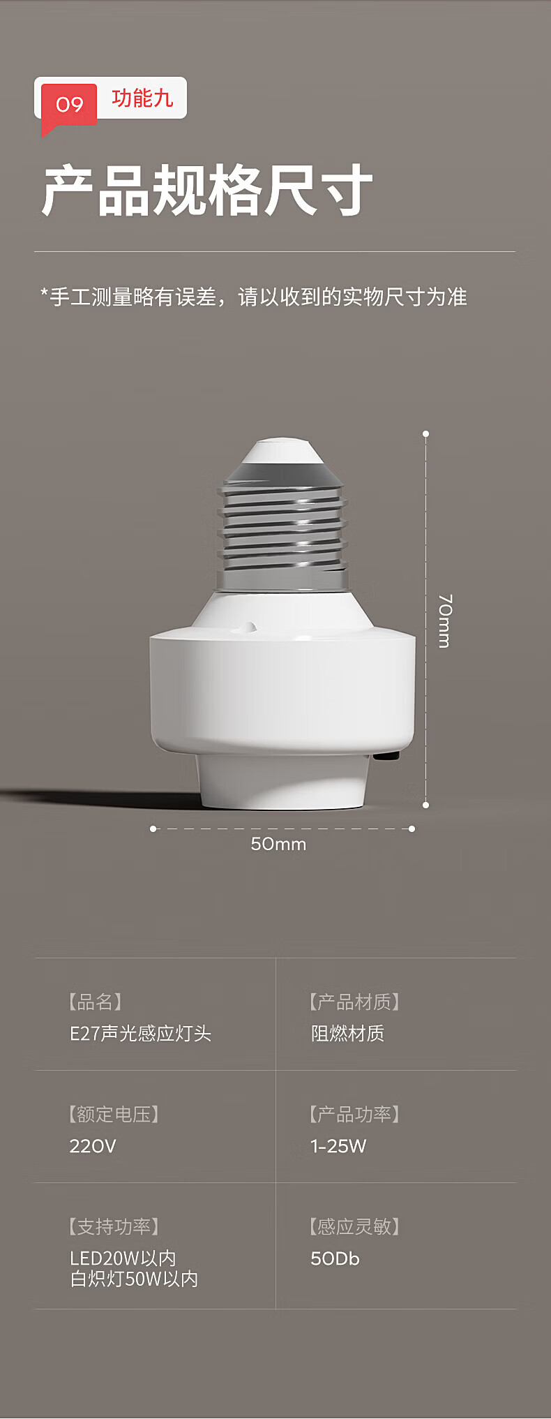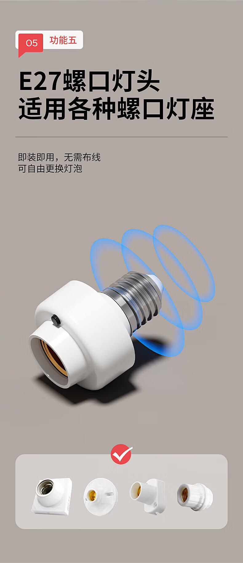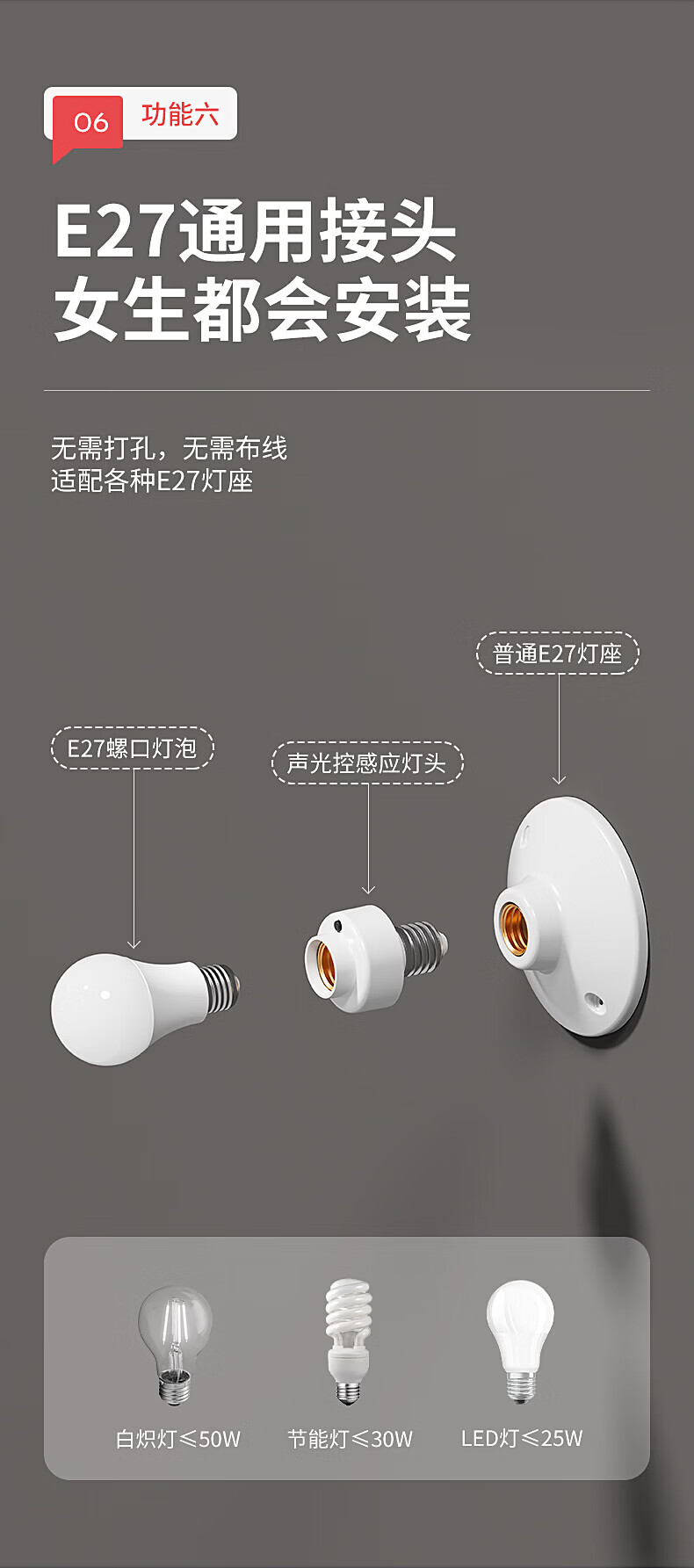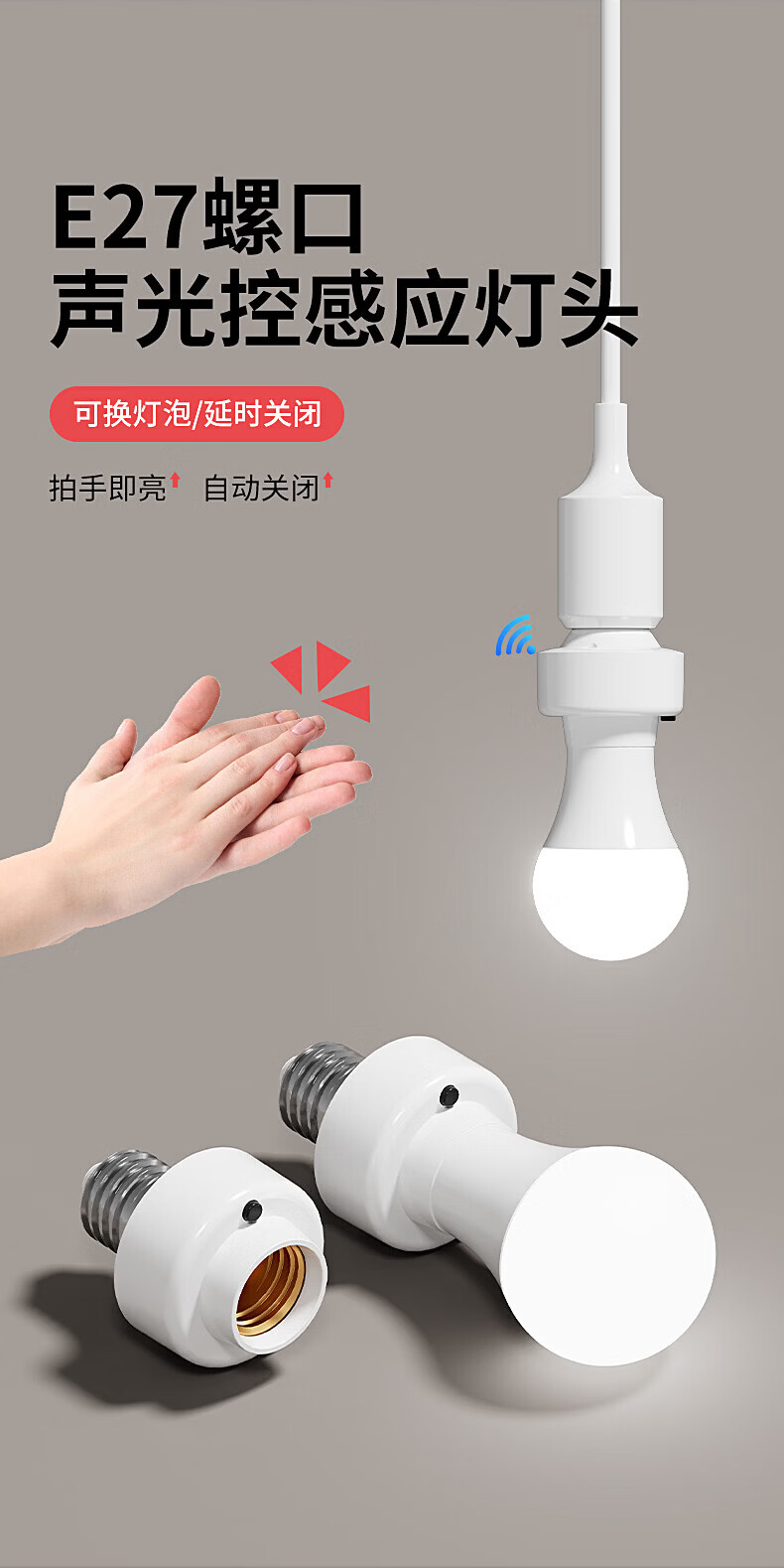 国际电工(FDD)E27螺口声光控灯头LED节能声控感应灯座车库楼道走廊延时灯泡底座 声光控感应灯头【无灯泡】
