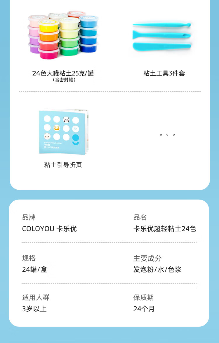 卡乐优(Coloyou)超轻粘土无毒轻质黏土橡皮泥彩泥黏土美术手工DIY纸盒装玩具女孩