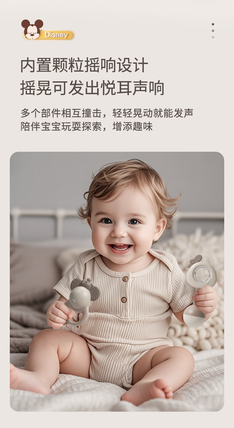 迪士尼(Disney)婴儿摇铃礼盒牙咬胶捏捏乐安抚玩具0-1岁宝宝抓握新生儿生日礼物