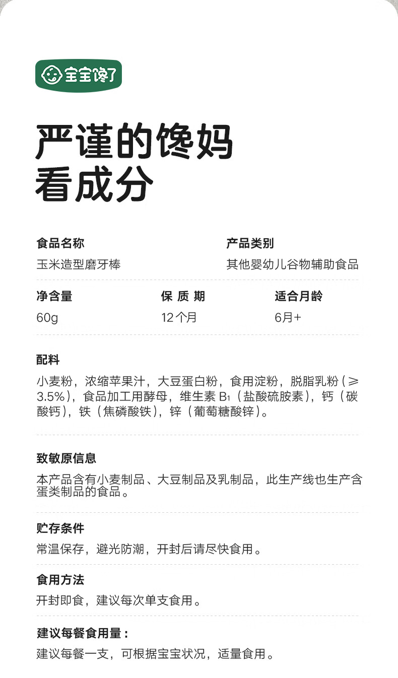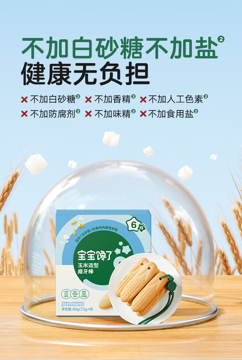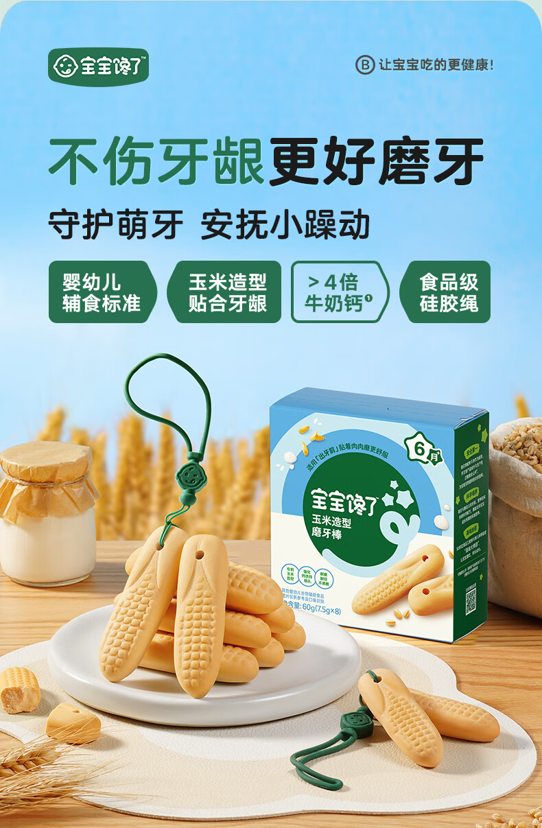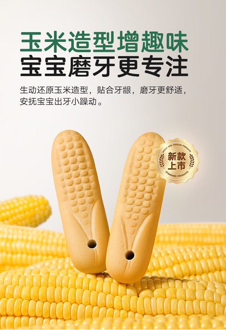 宝宝馋了婴幼儿辅食零食磨牙棒 宝宝磨牙饼干带硅胶绳玉米形60g 6月以上