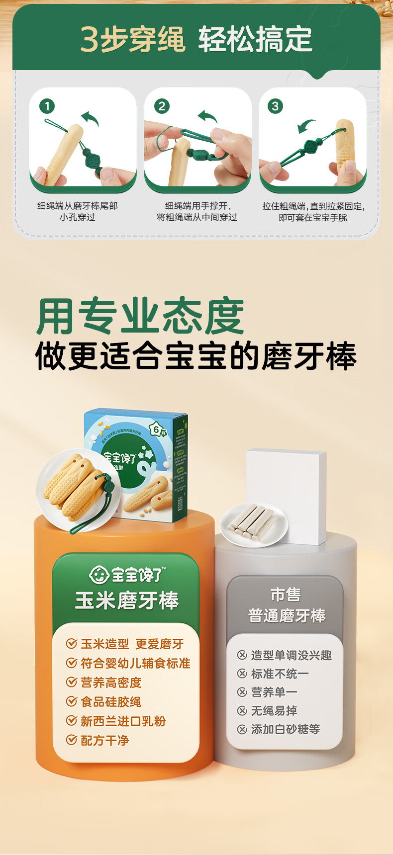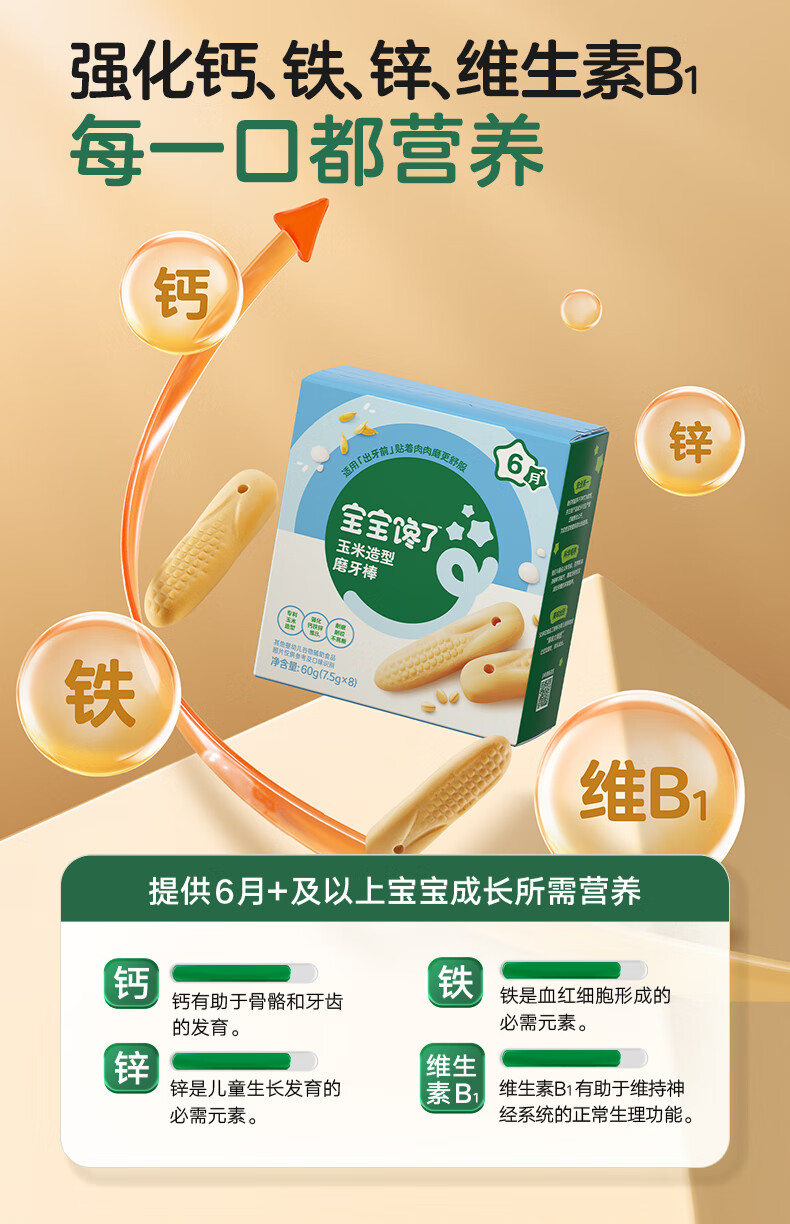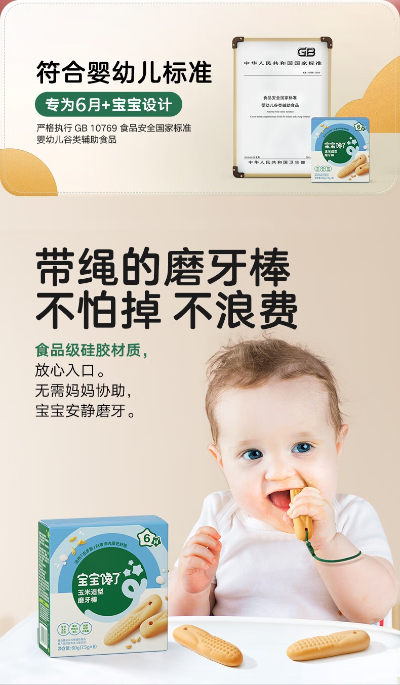 宝宝馋了婴幼儿辅食零食磨牙棒 宝宝磨牙饼干带硅胶绳玉米形60g 6月以上