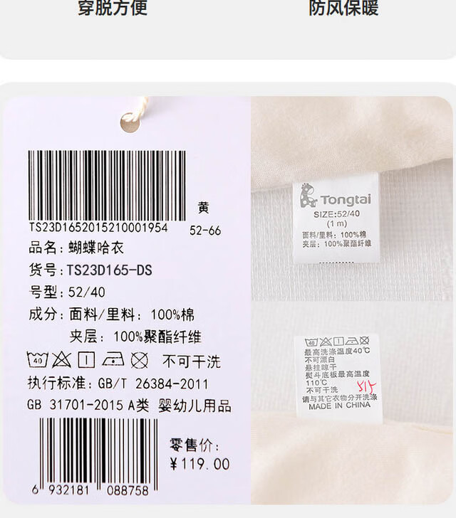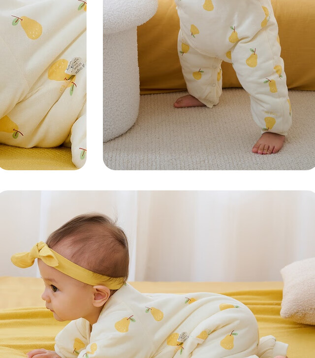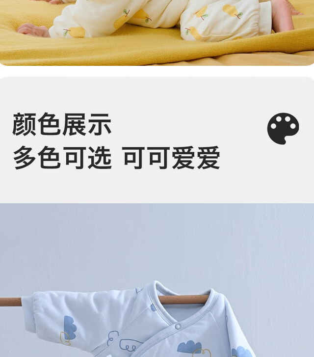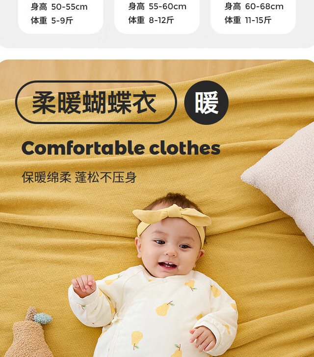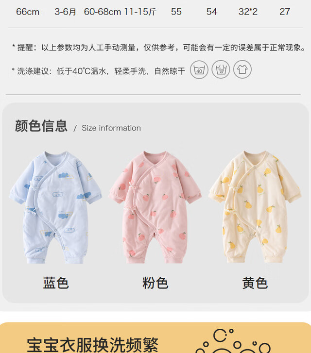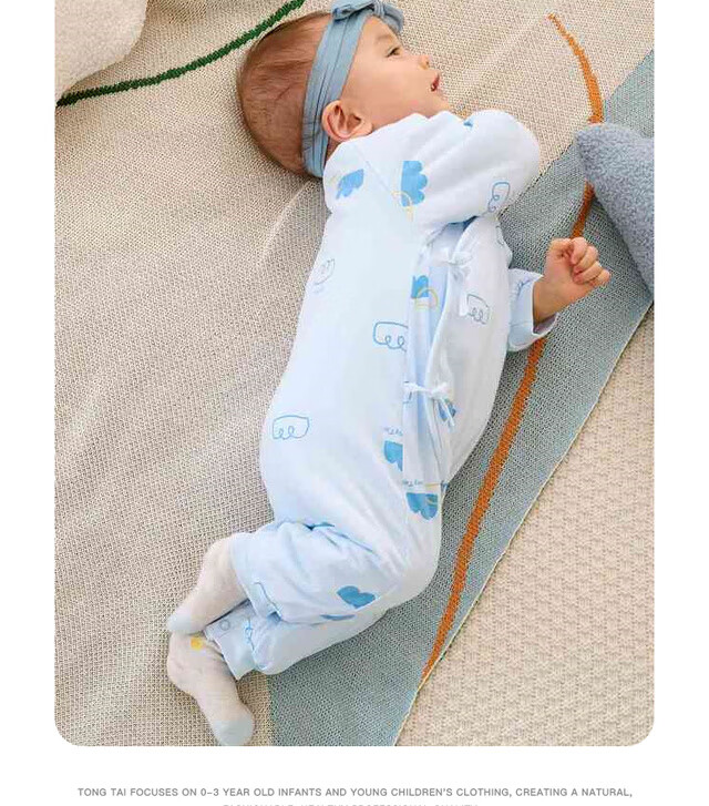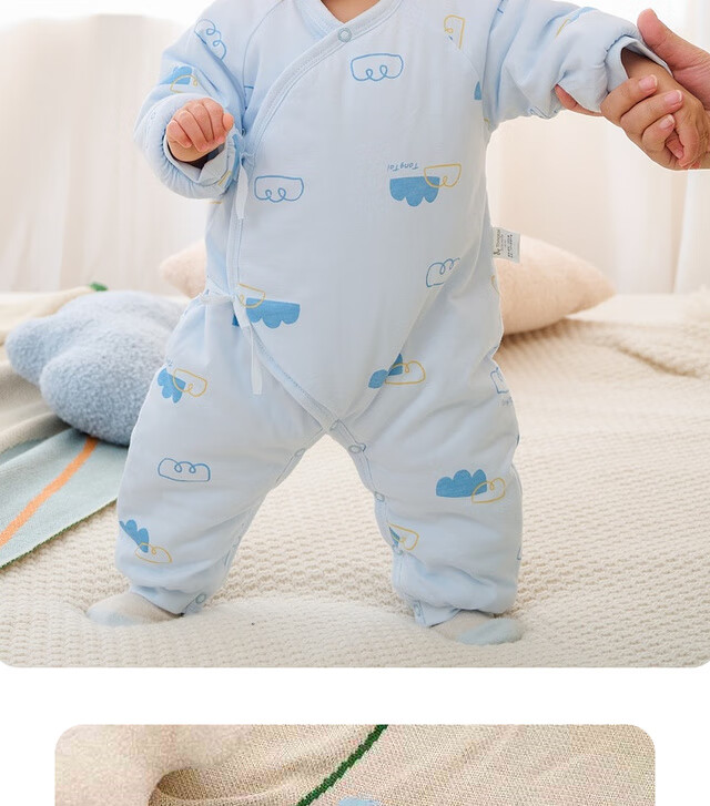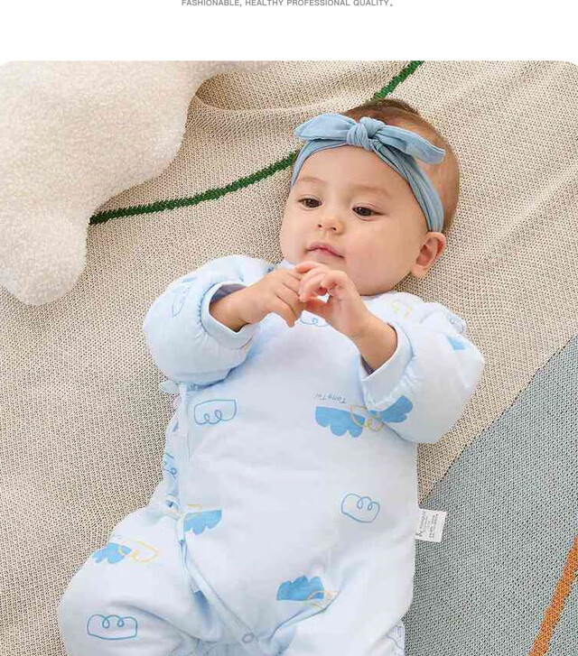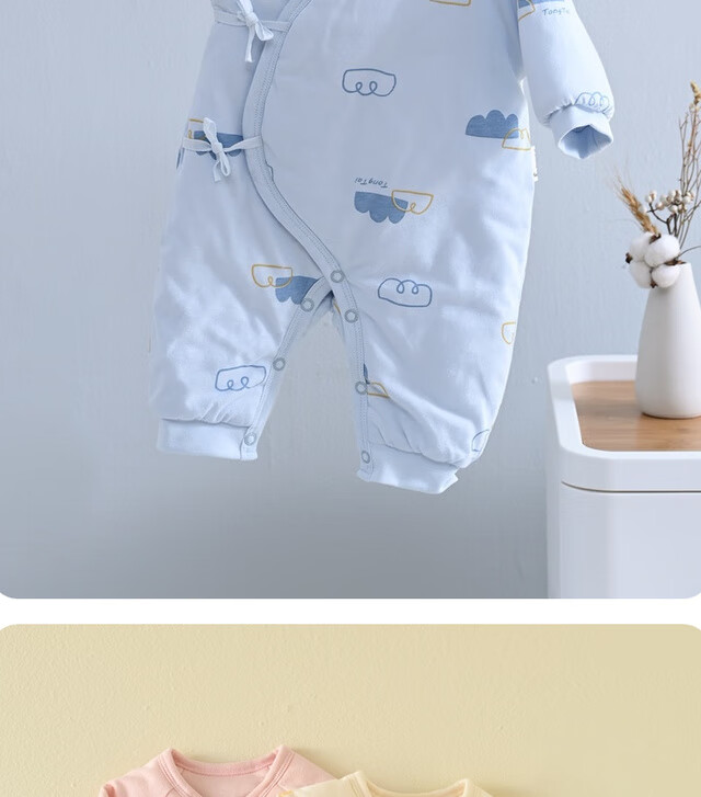 童泰秋冬0-6个月新生儿婴儿宝宝偏开保暖衣连体蝴蝶哈衣棉衣蓝色52cm