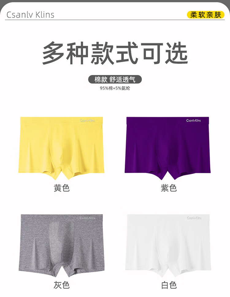 CK美国男士内裤纯棉四角裤夏季薄款宽松运动青年中腰平角短裤衩vckv 4条颜色自选 纯棉礼盒装 4条 4XL 适合165-185斤