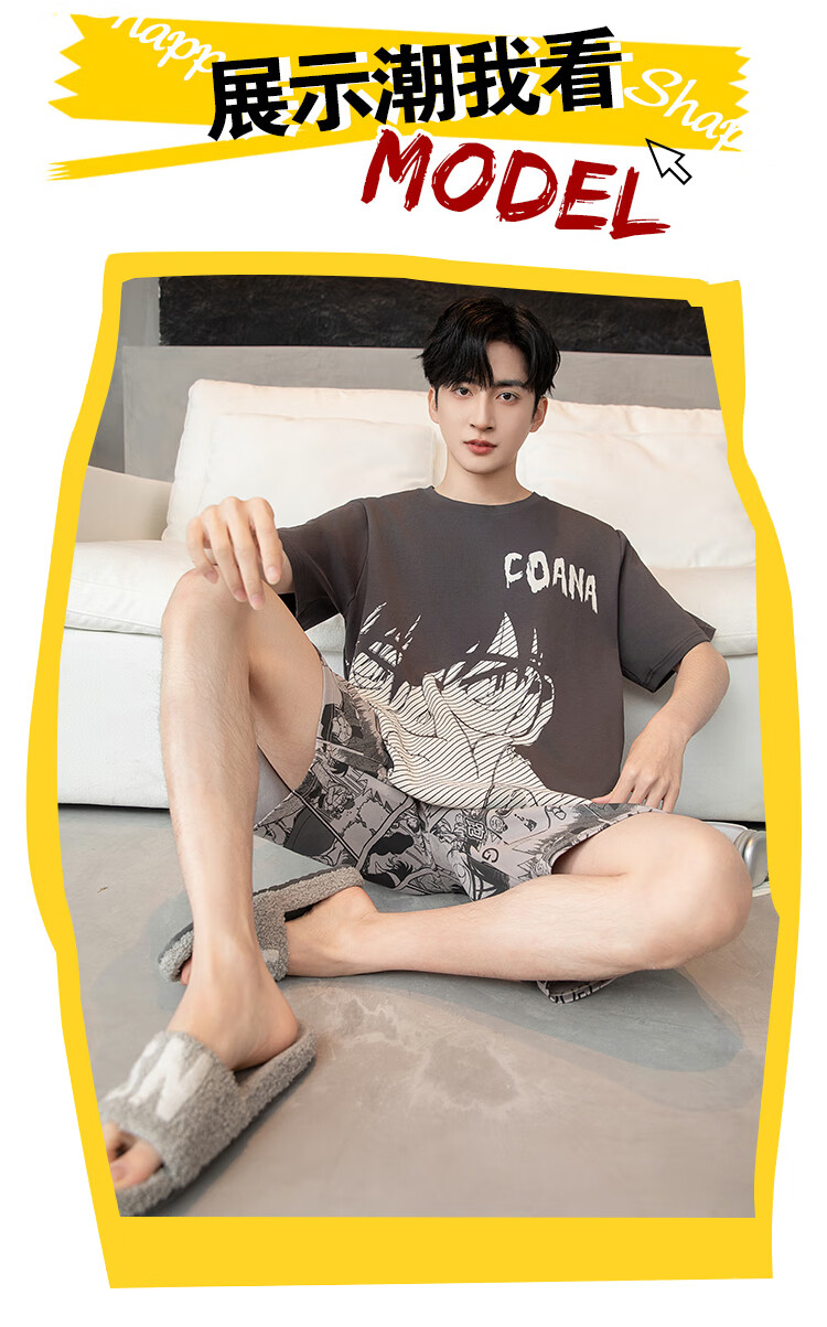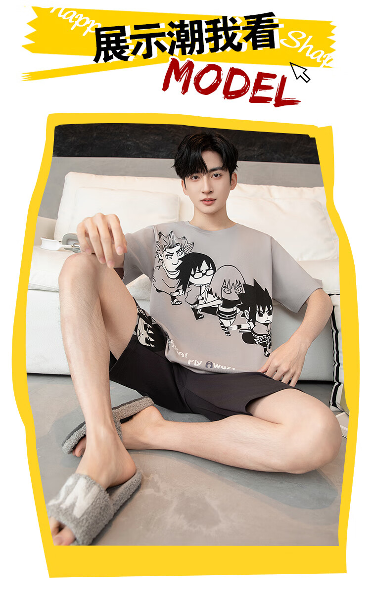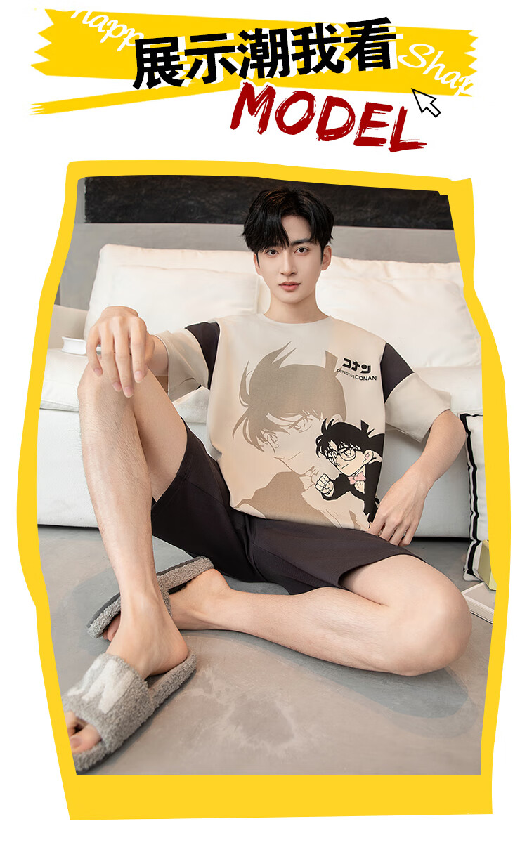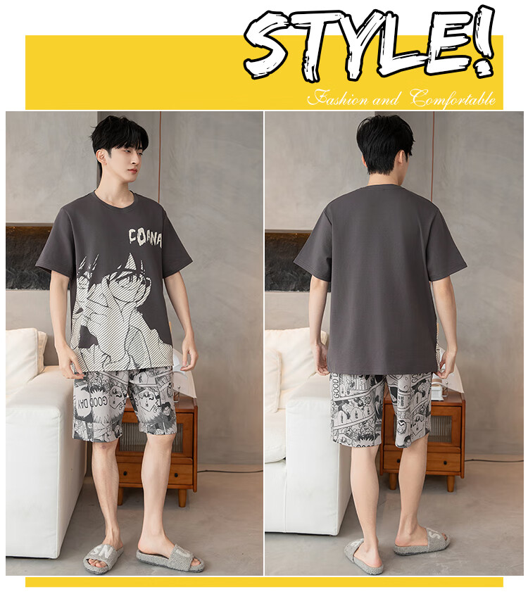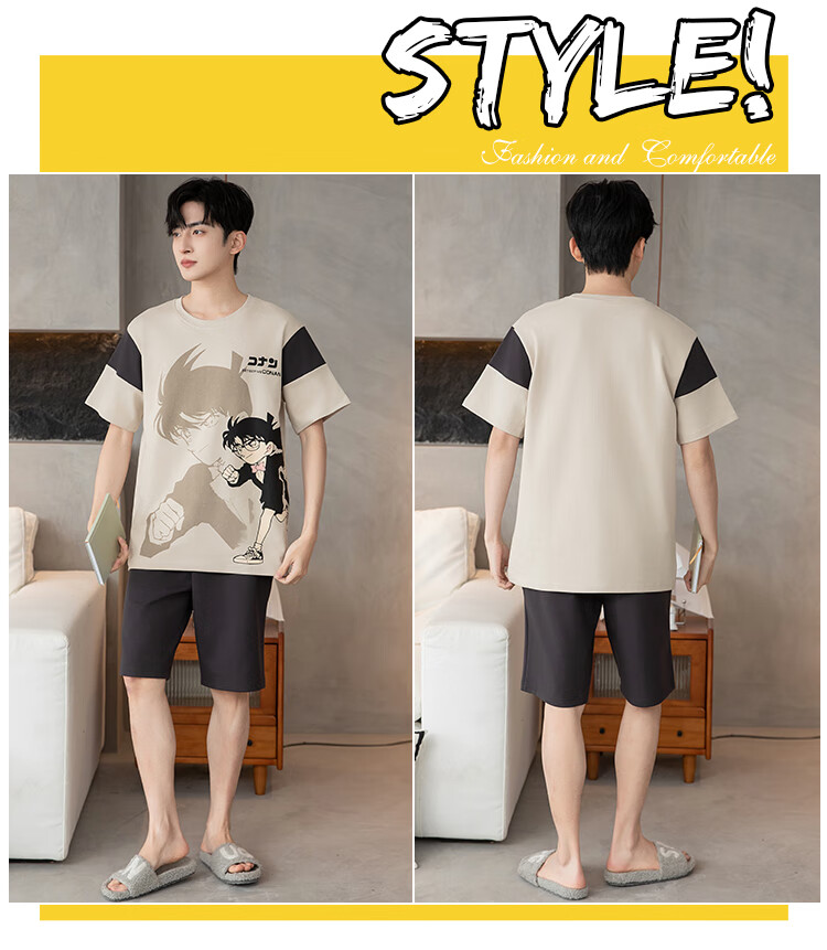 萧淑妃夏季卡通柯南纯棉男士睡衣可外穿青少年学生短袖短裤家居服套装 少年柯南 5XL
