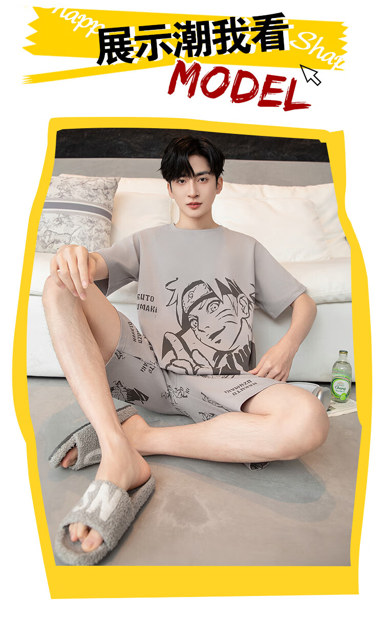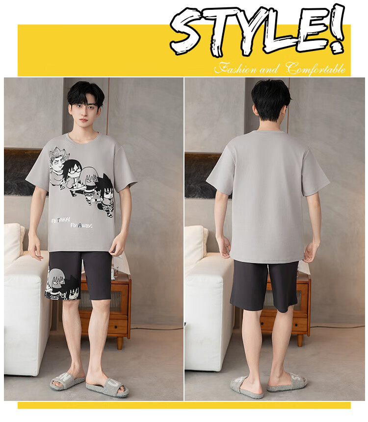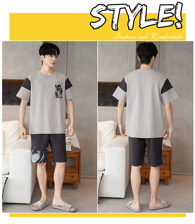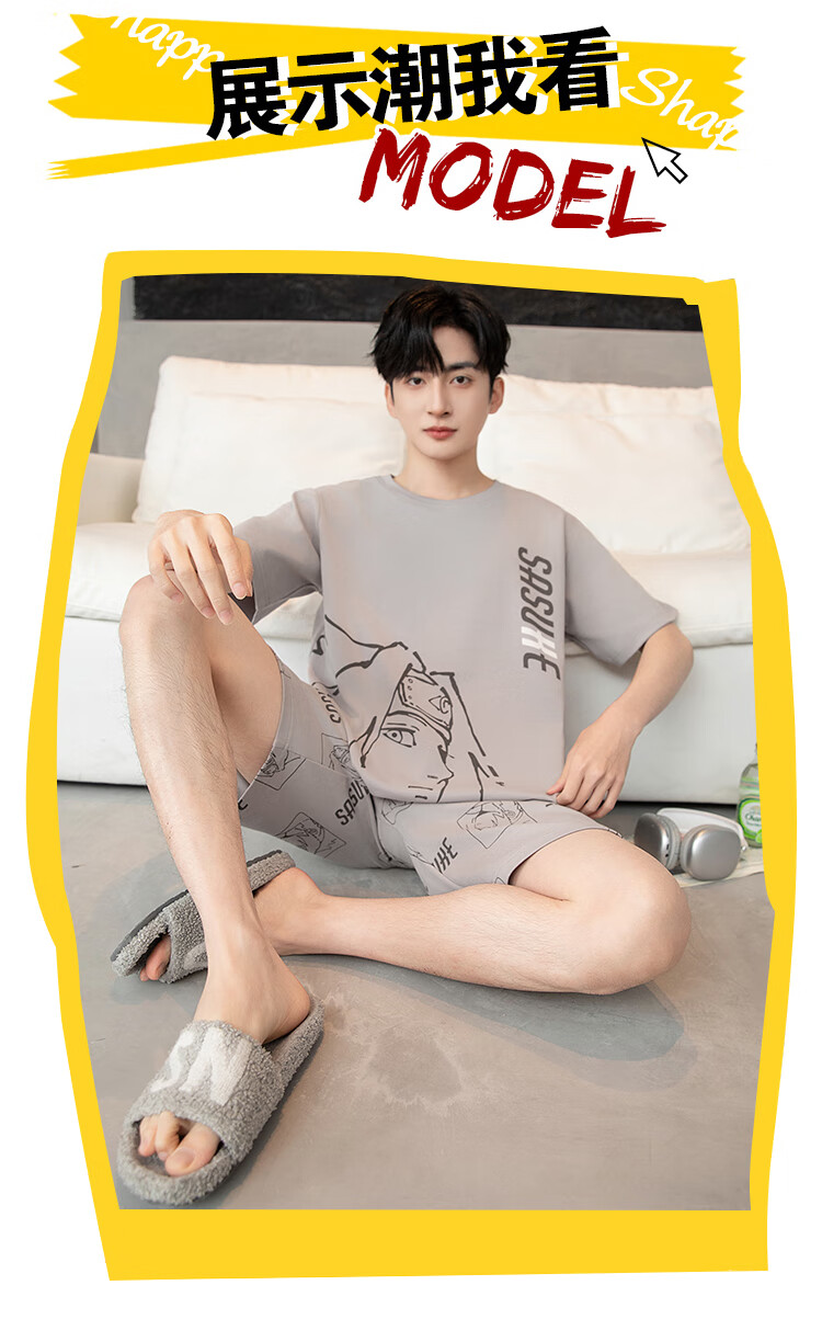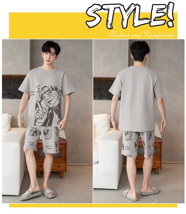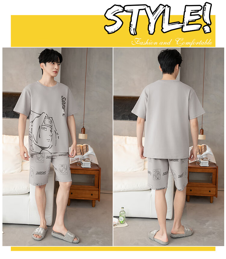 萧淑妃夏季卡通柯南纯棉男士睡衣可外穿青少年学生短袖短裤家居服套装 少年柯南 5XL