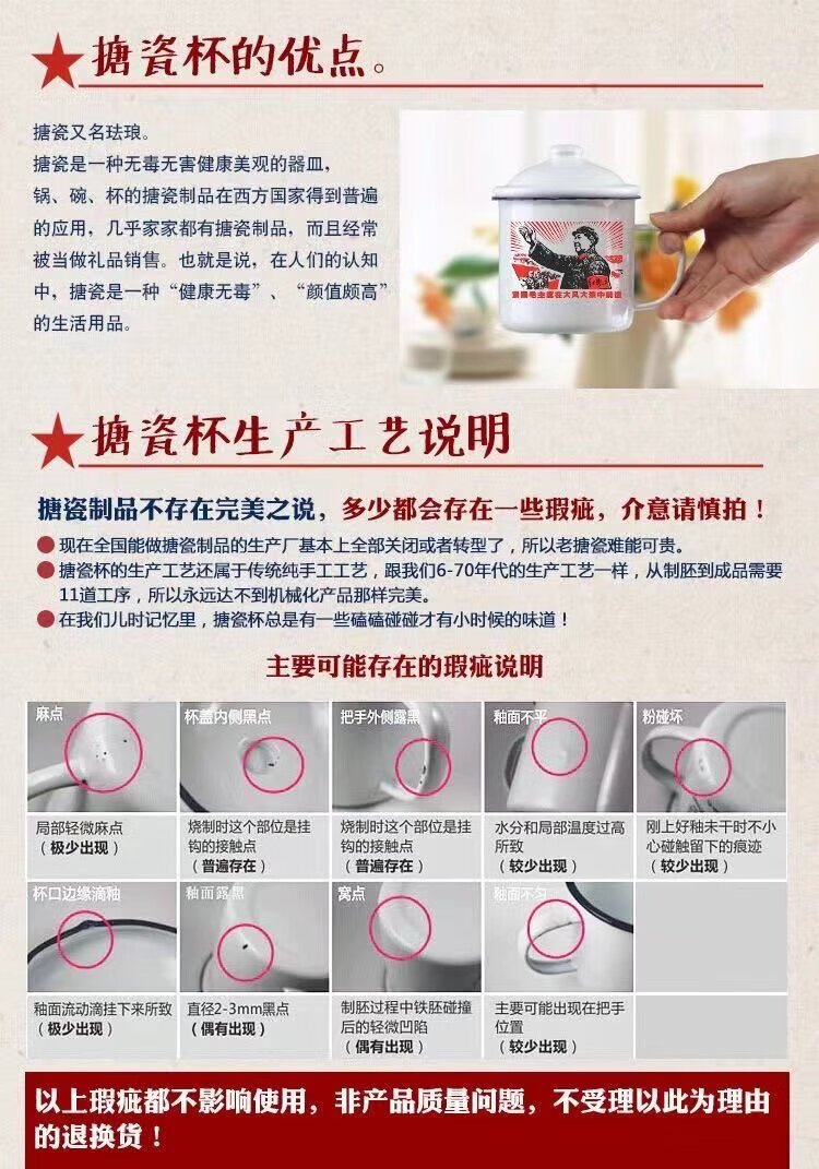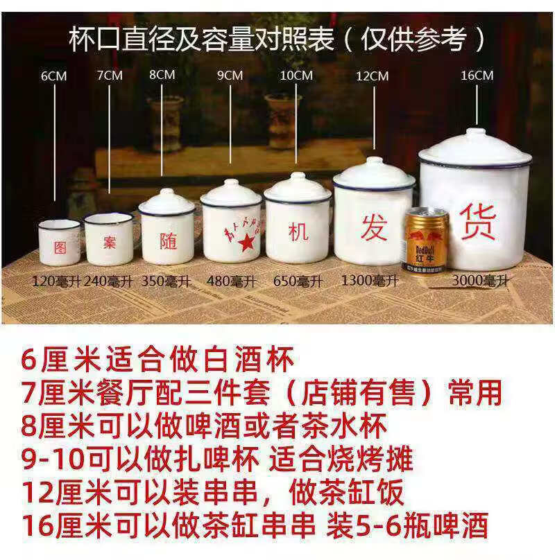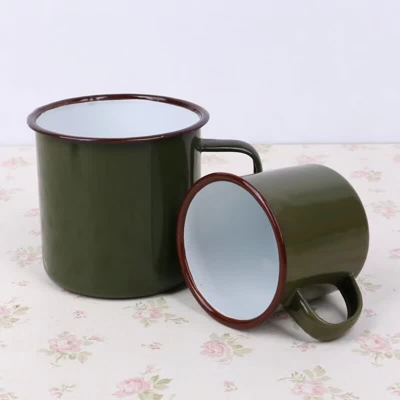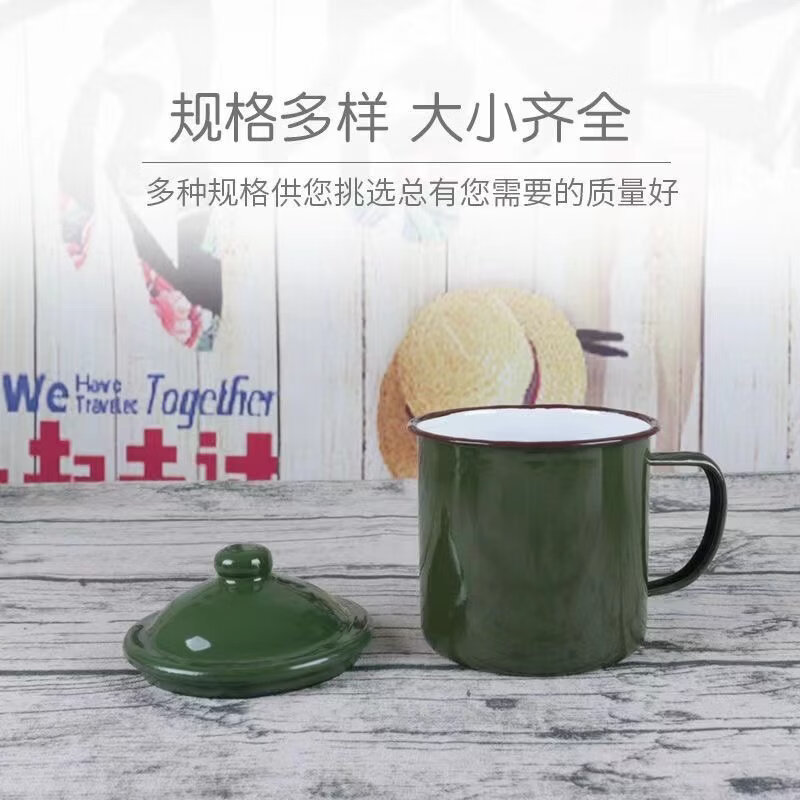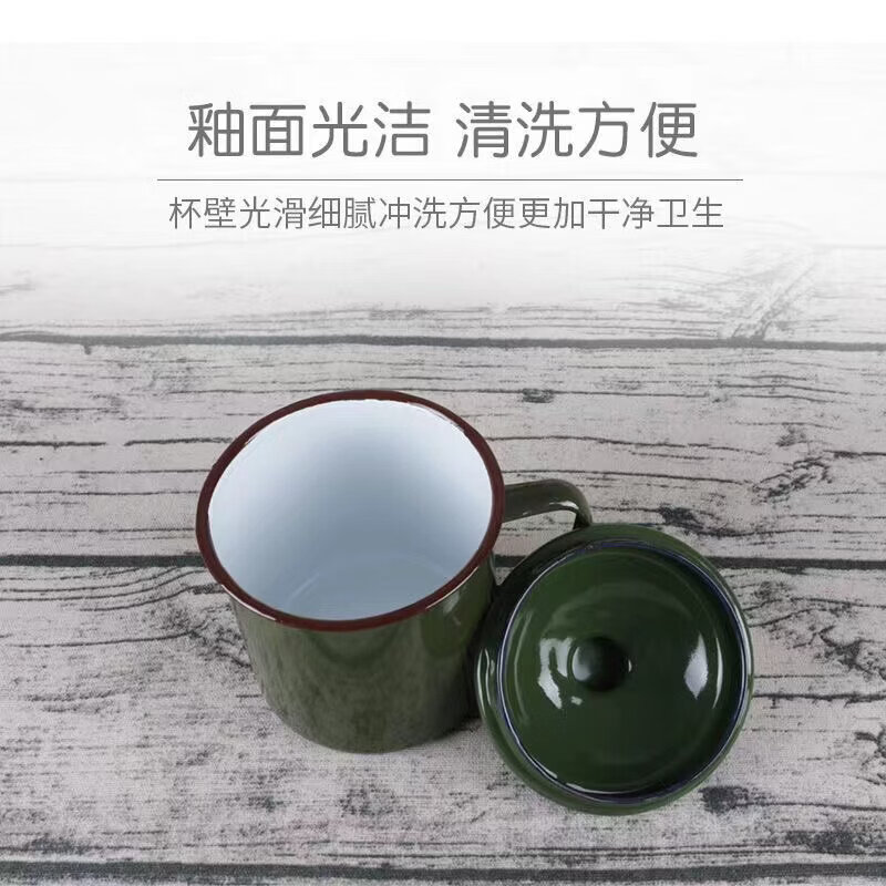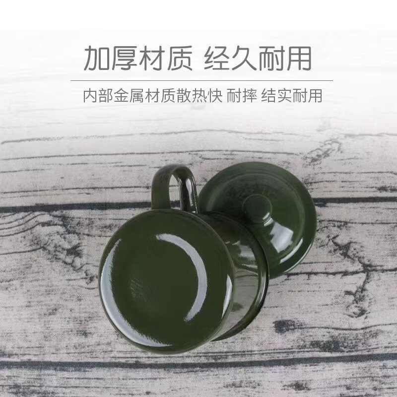 胖东来超市代购同款茶缸老式怀旧经典军绿色子搪瓷口杯复古搪瓷杯 军绿12cm有盖1200毫升