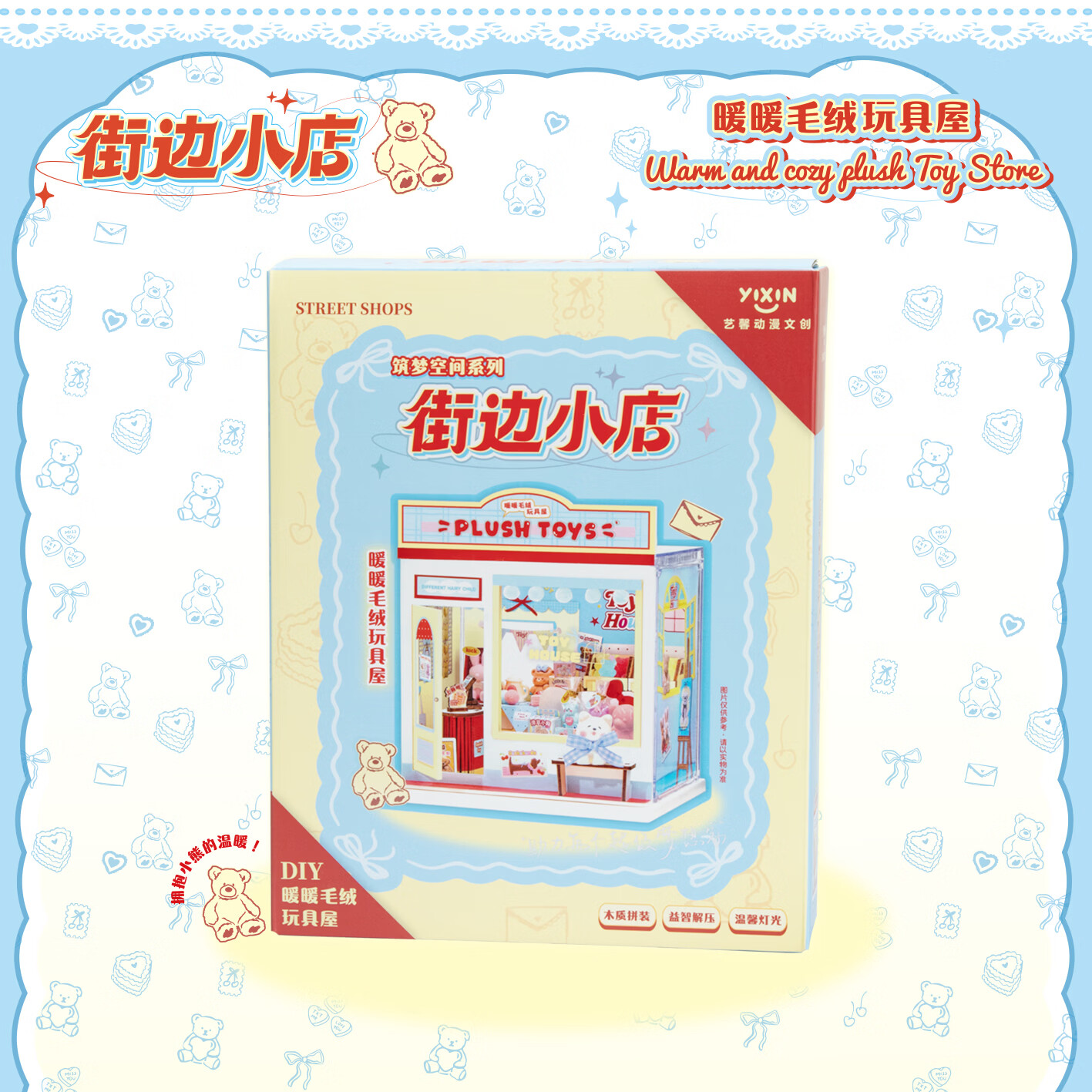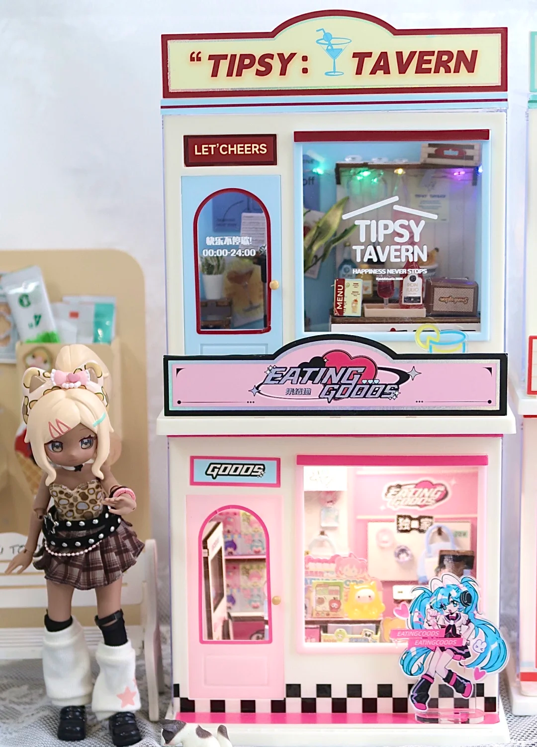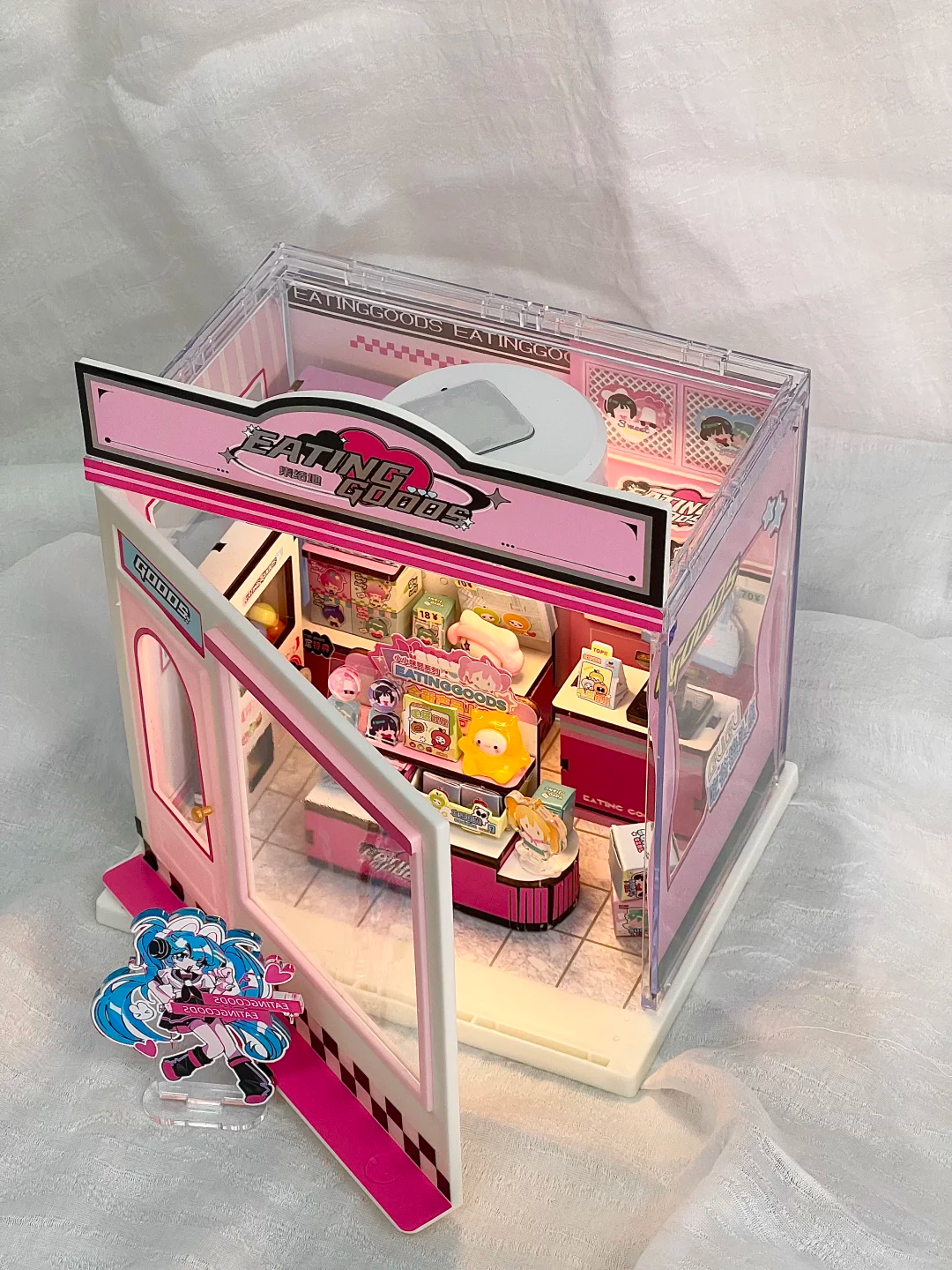艺馨动漫文创木质拼装娃屋搭手办萌粒带防尘罩灯光手工diy小屋街边小店微缩 吃谷社潮玩店 亚克力片没覆膜,可能有划痕介意勿拍,凭开箱视频售后