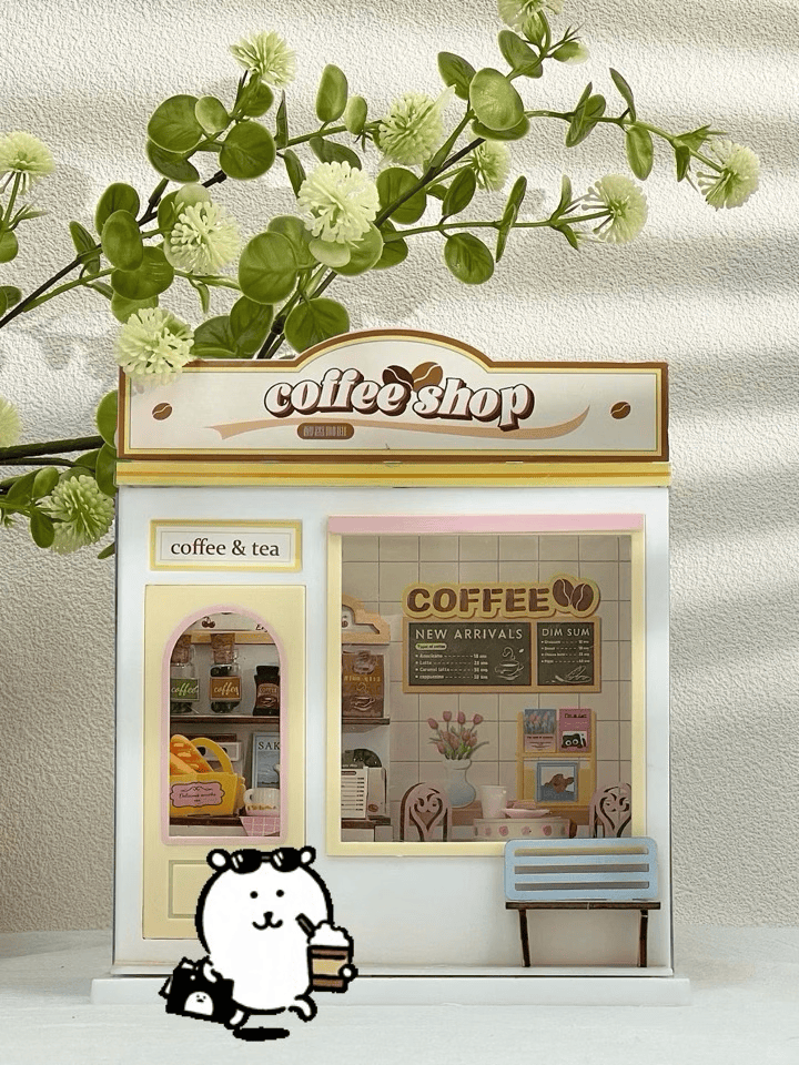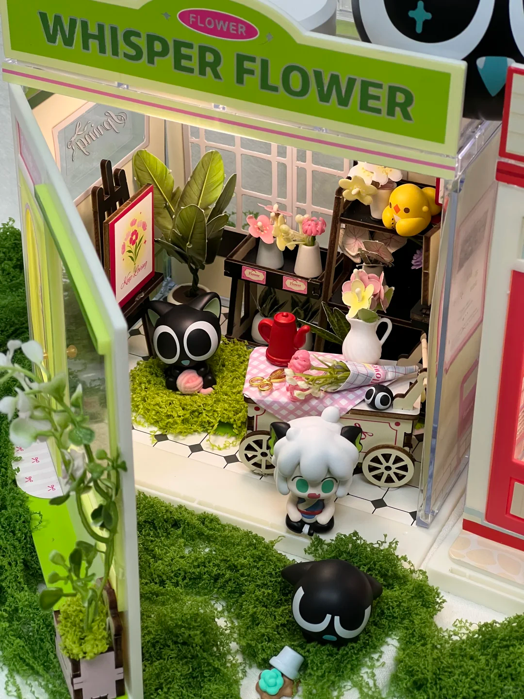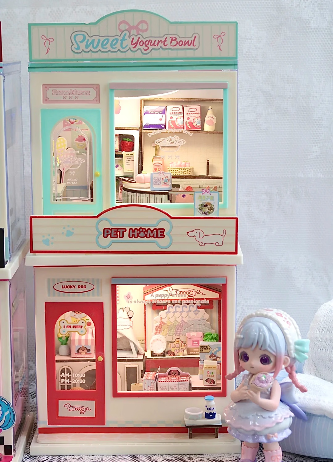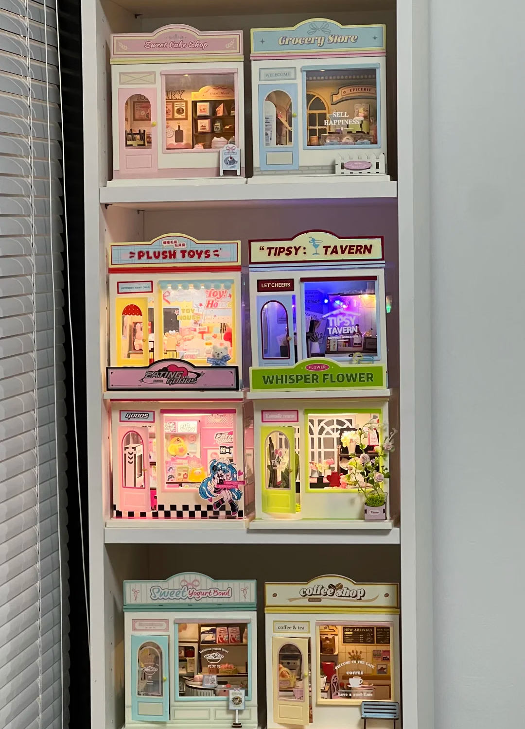 艺馨动漫文创木质拼装娃屋搭手办萌粒带防尘罩灯光手工diy小屋街边小店微缩 吃谷社潮玩店 亚克力片没覆膜,可能有划痕介意勿拍,凭开箱视频售后