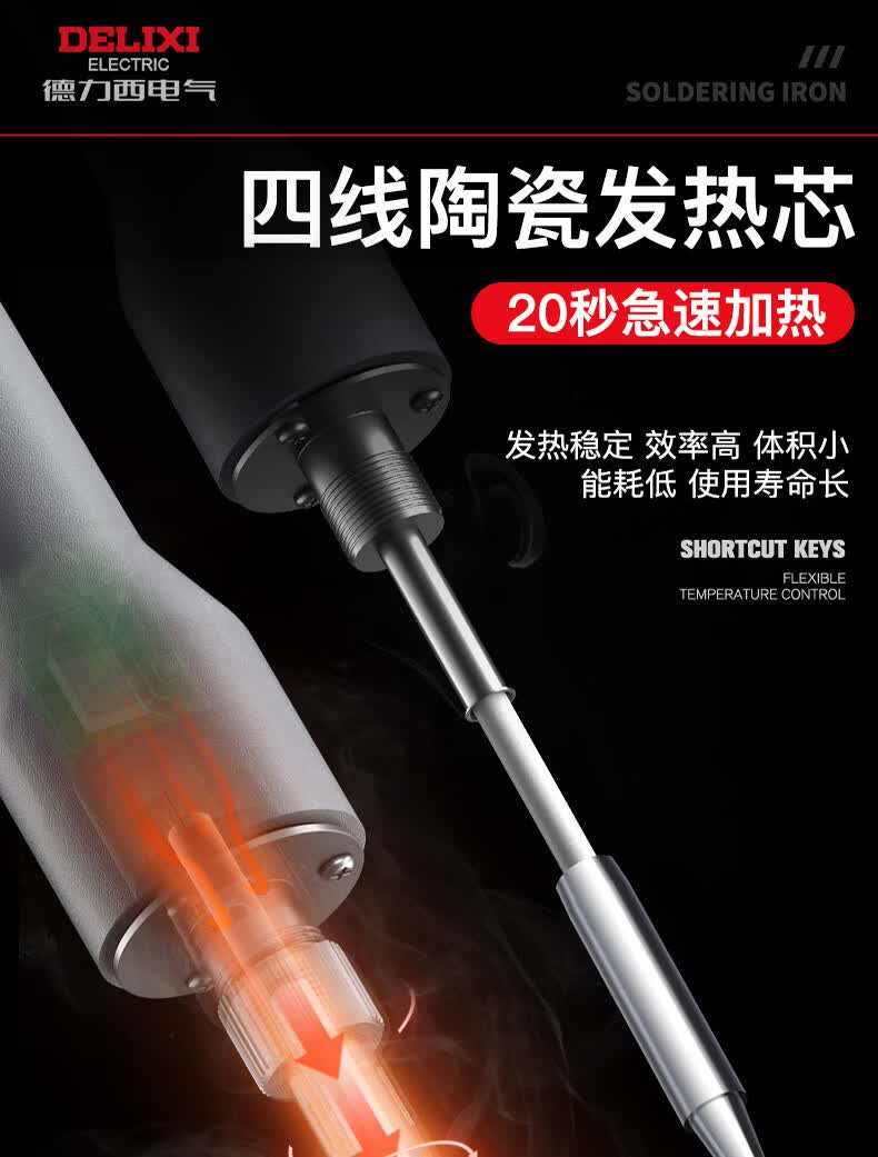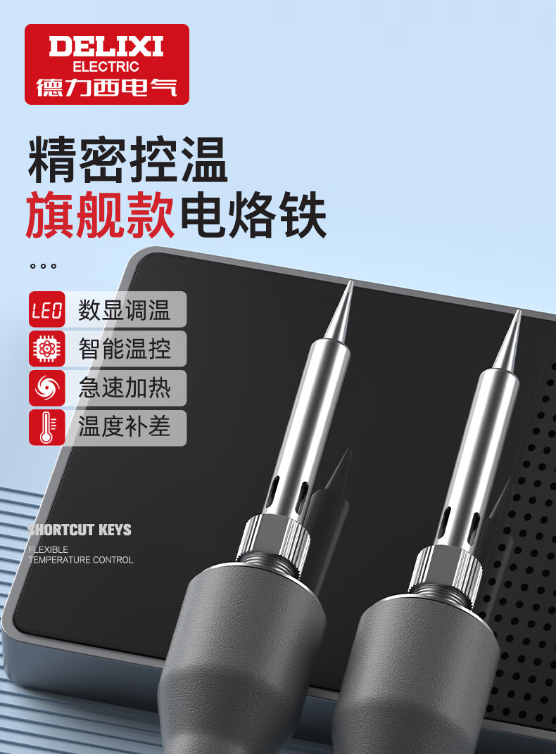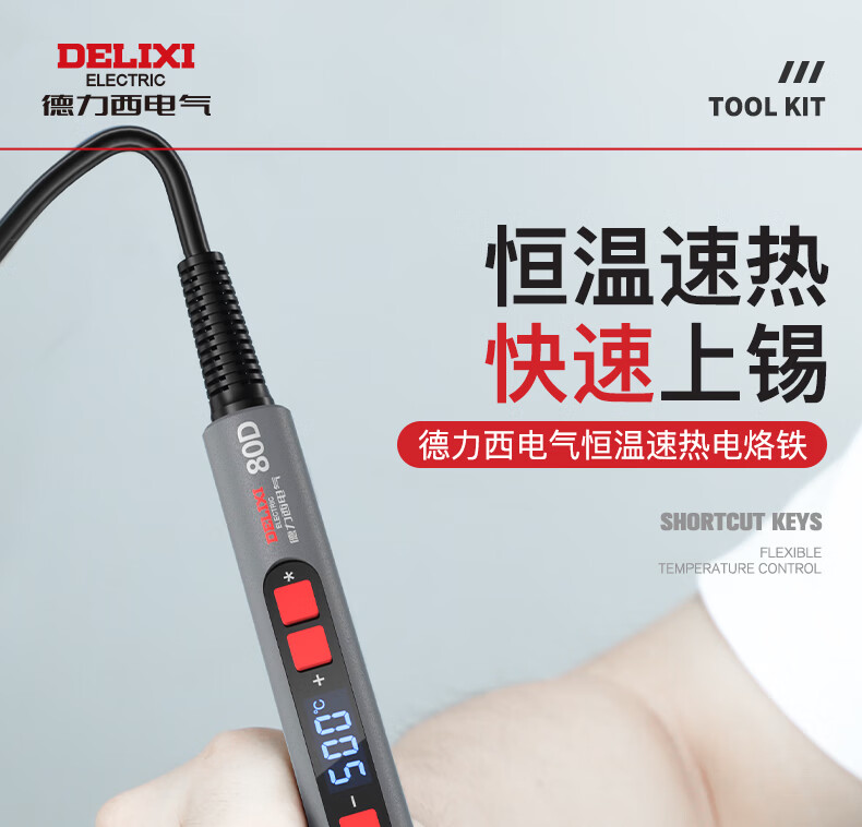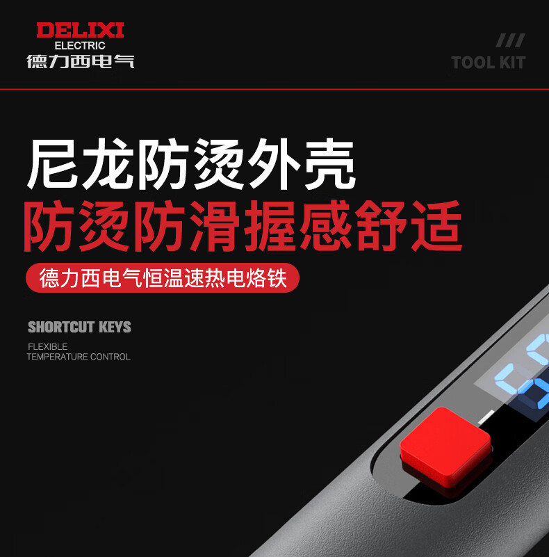 德力西电气专业级数显测温电烙铁小型焊锡枪维修专用数显电焊笔大功率电烙铁 90W数显调温【3C线专业速热】14件套