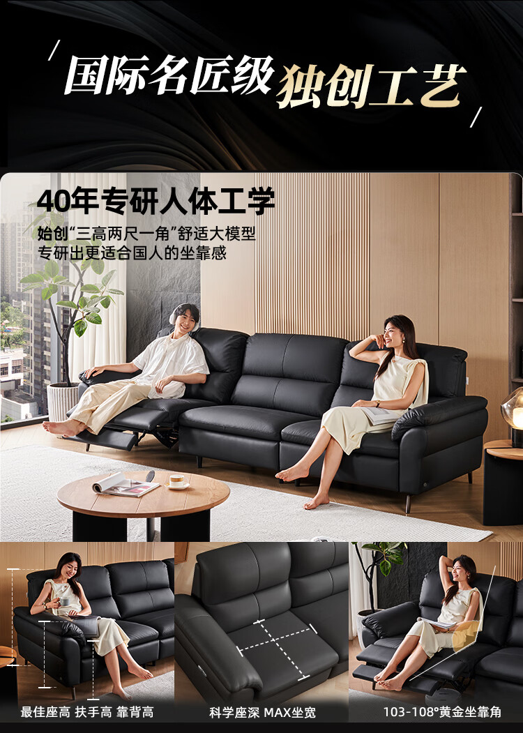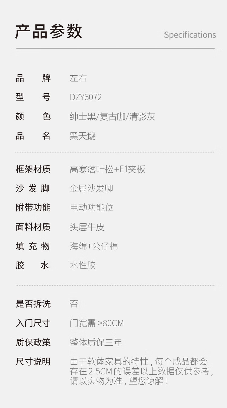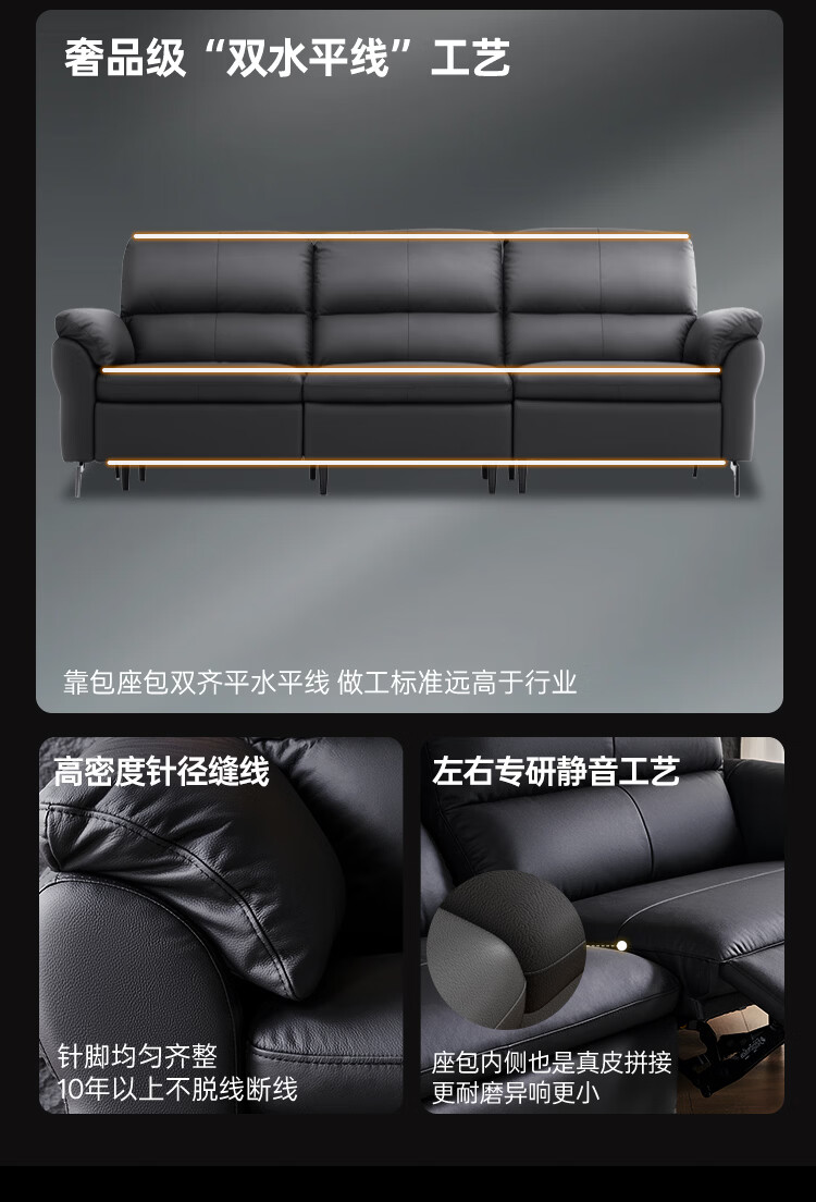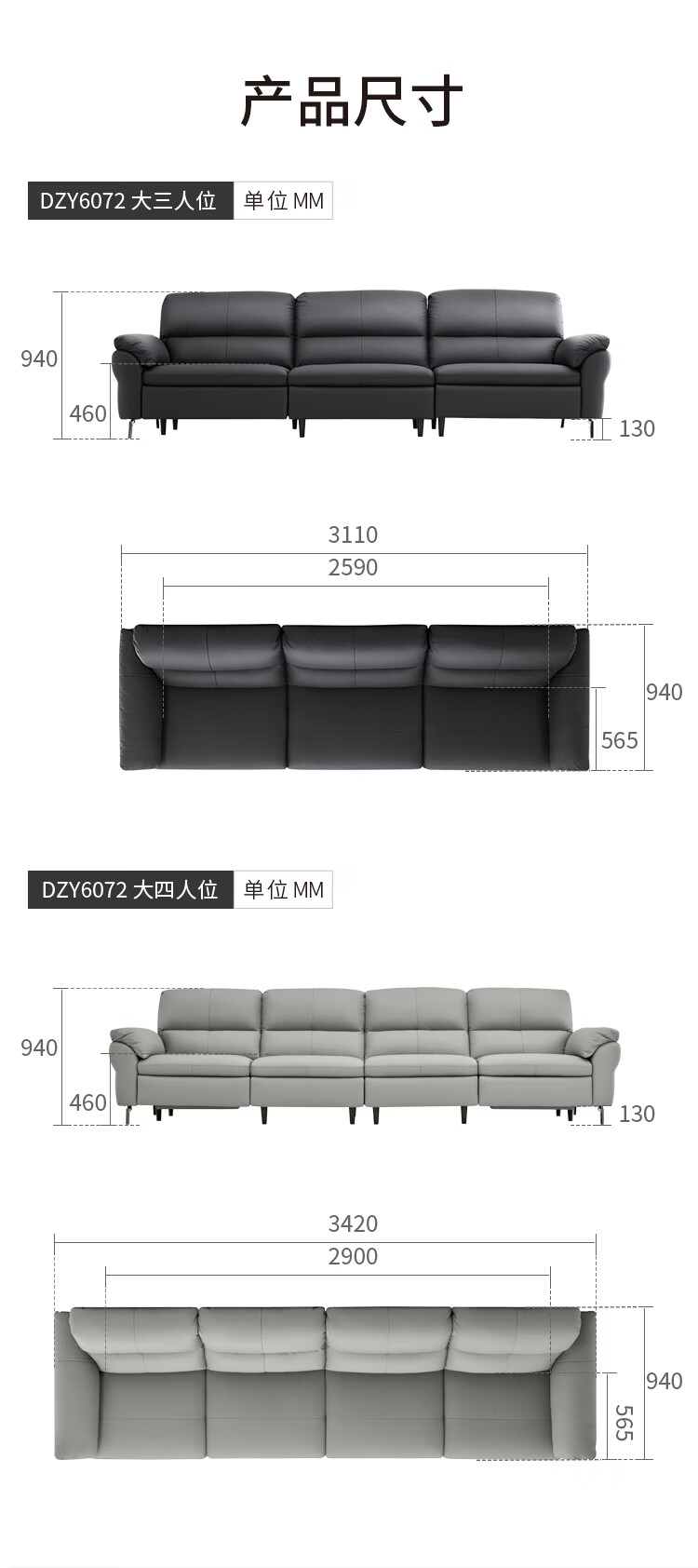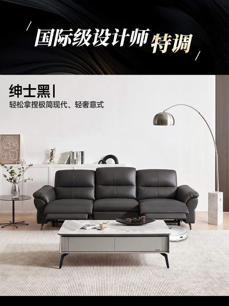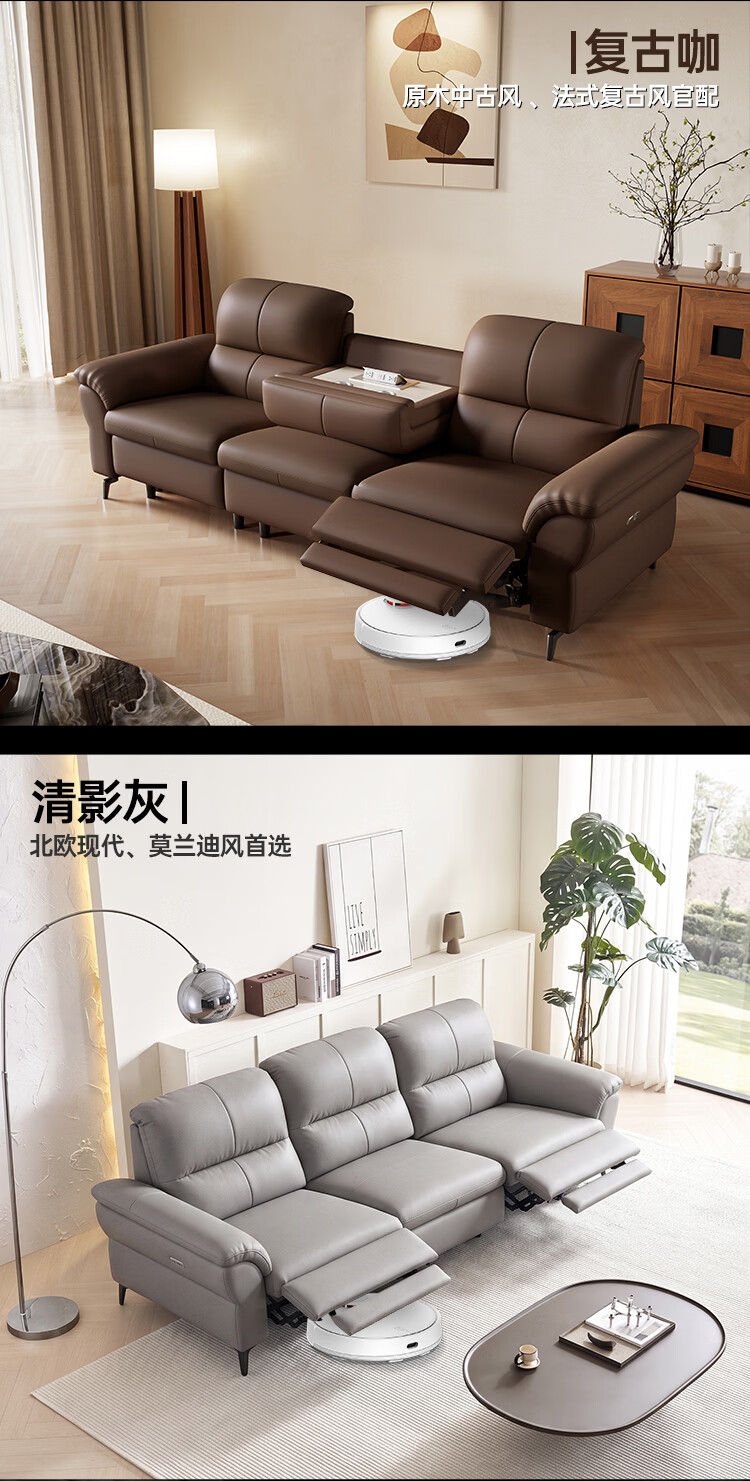 左右真皮沙发零靠墙电动功能沙发高脚可进扫地机大户型头层皮沙发6072 29固定位2.65米小三人 灰