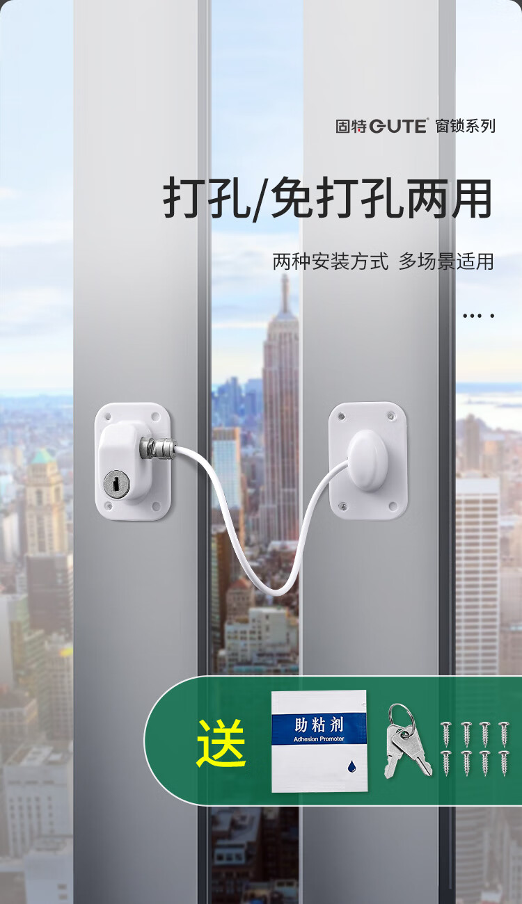 固特(GUTE)窗户限位器窗户锁扣儿童安全锁纱窗锁安全防护推拉平开窗锁免打孔
