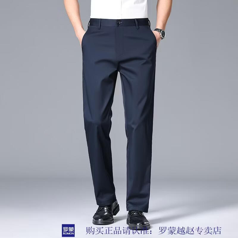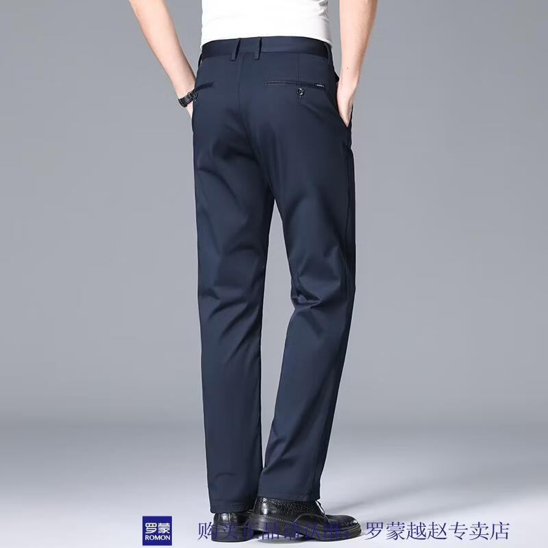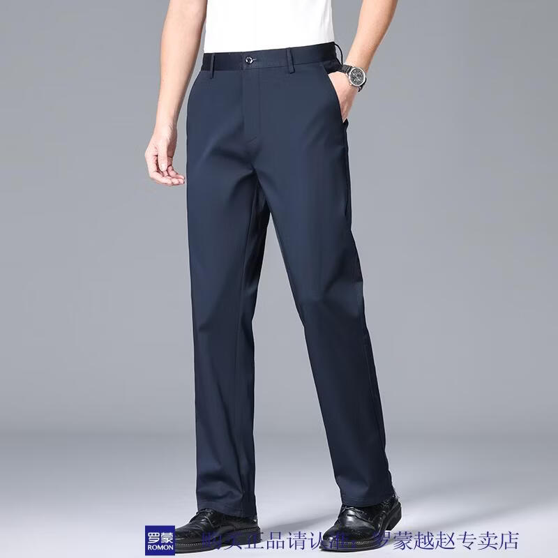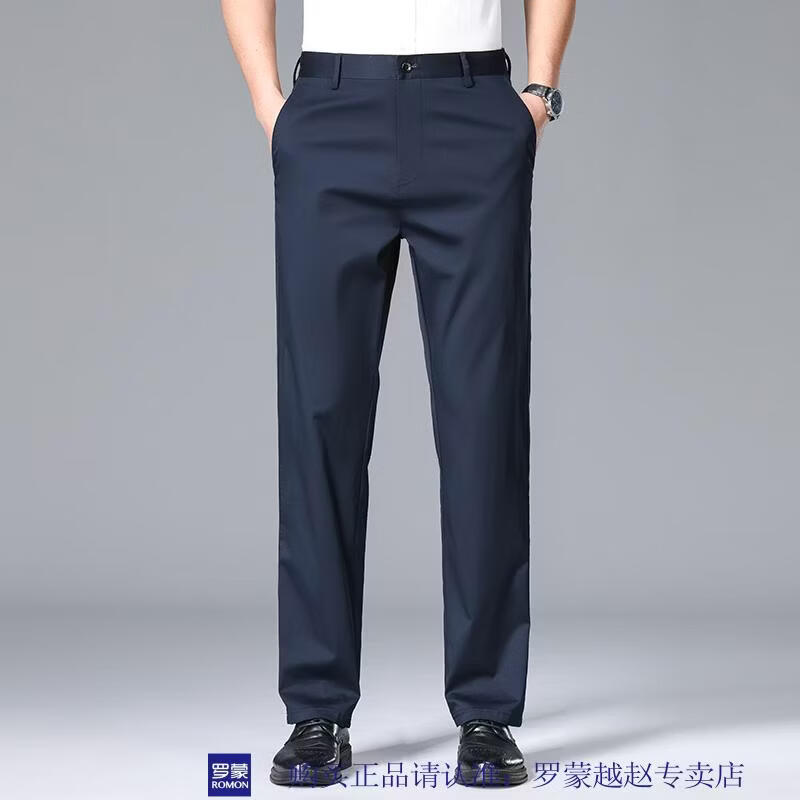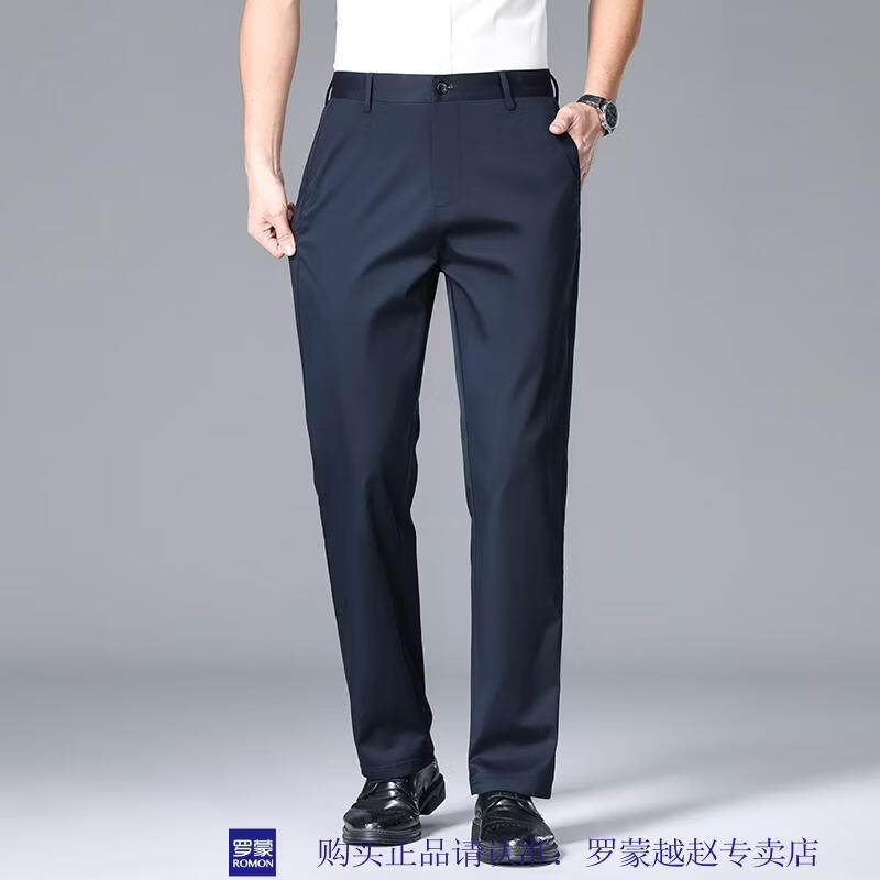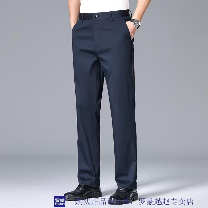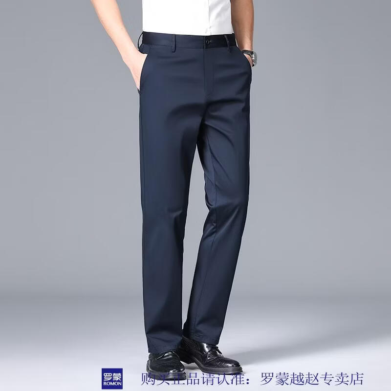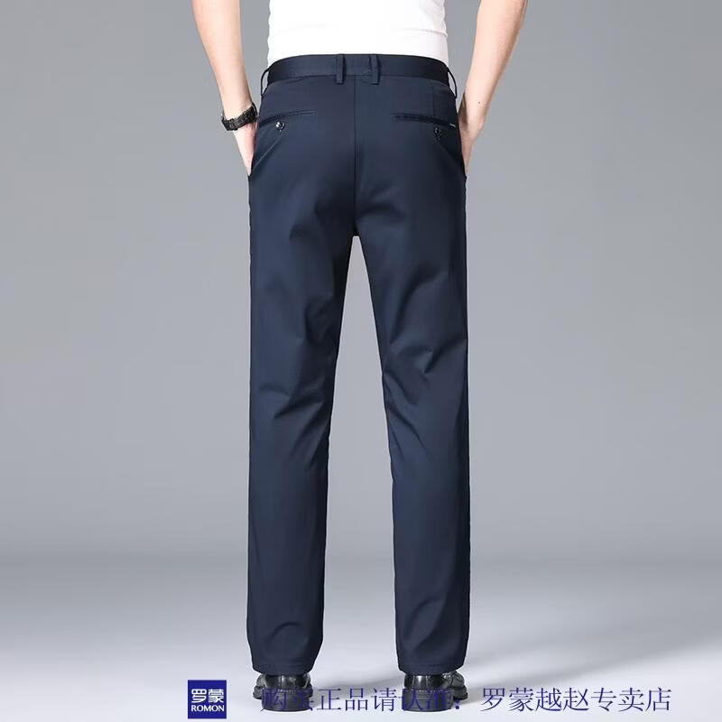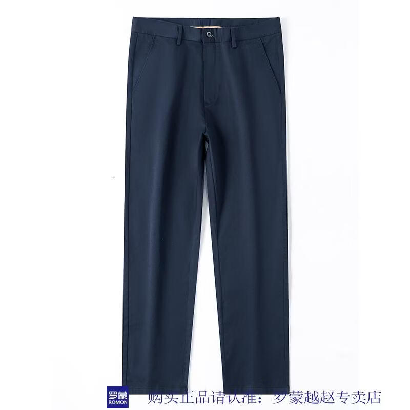 罗蒙(ROMON)夏季薄款纯棉休闲裤男宽松直筒裤弹力纯色商务高腰长裤子 藏青色 42