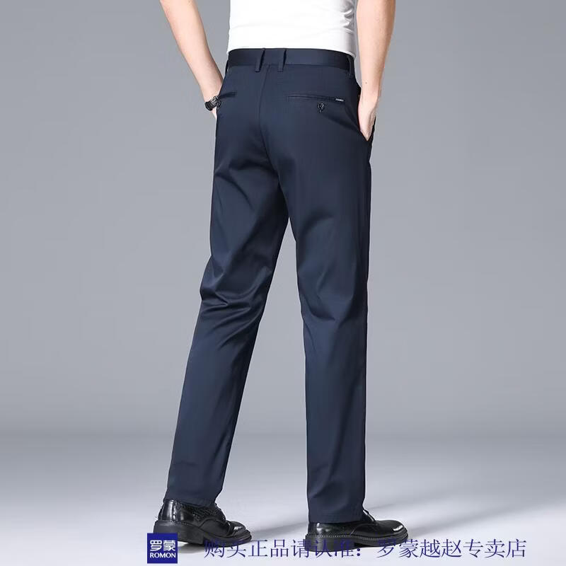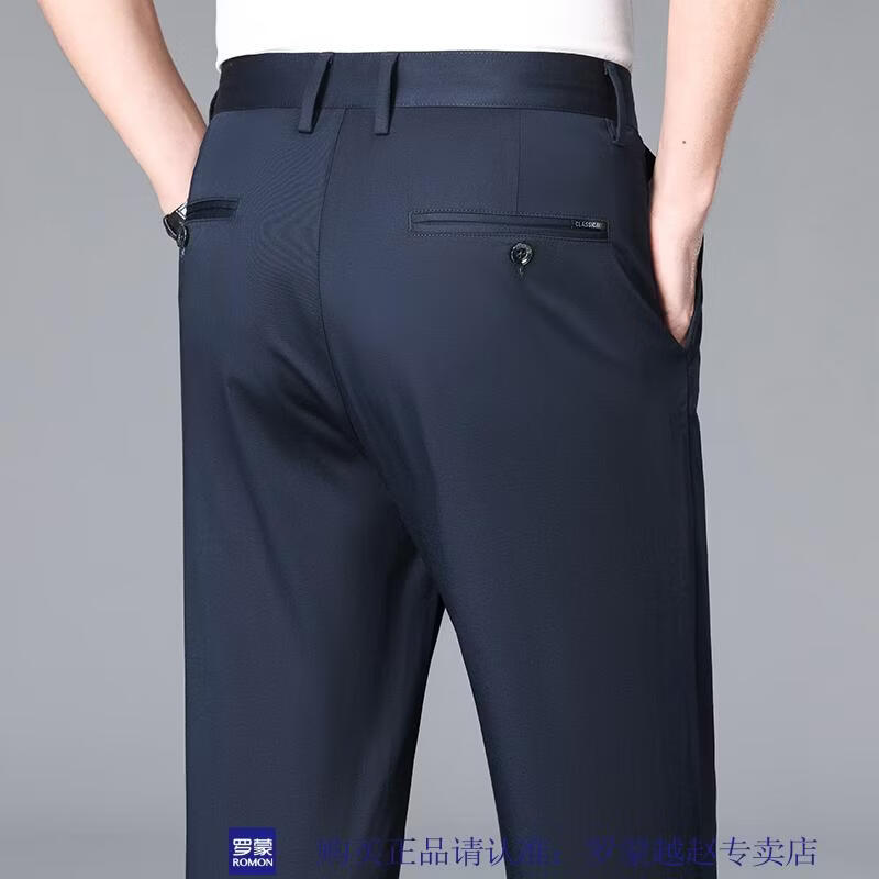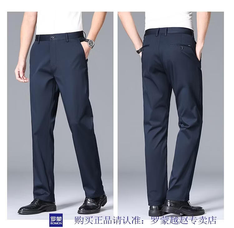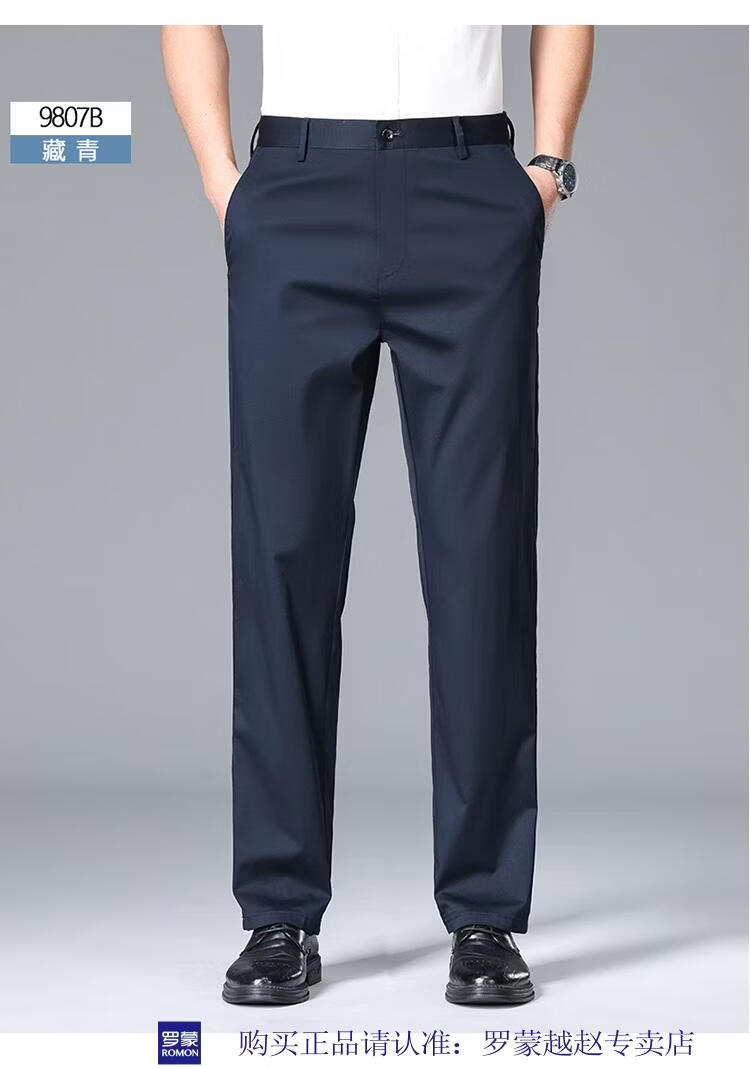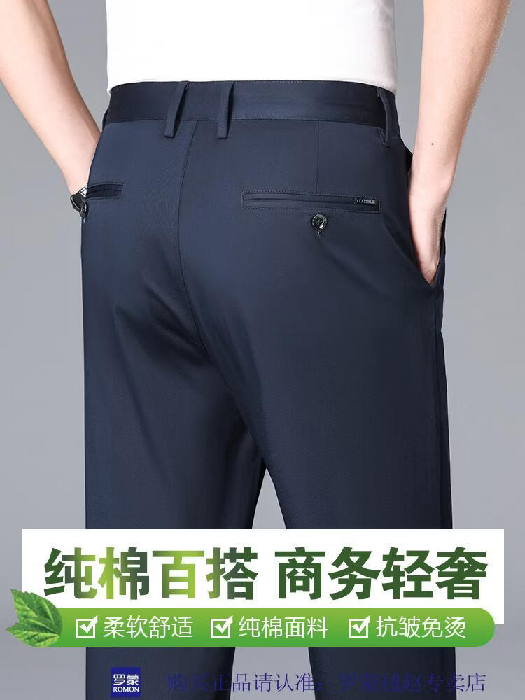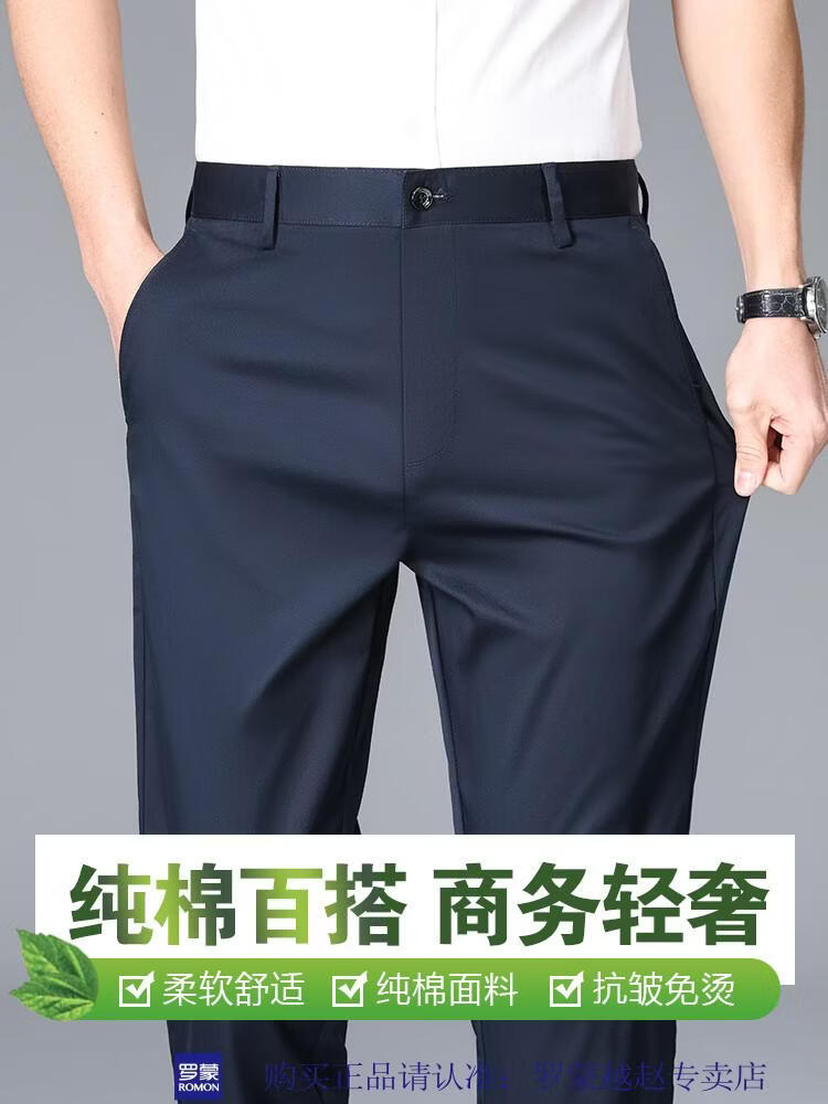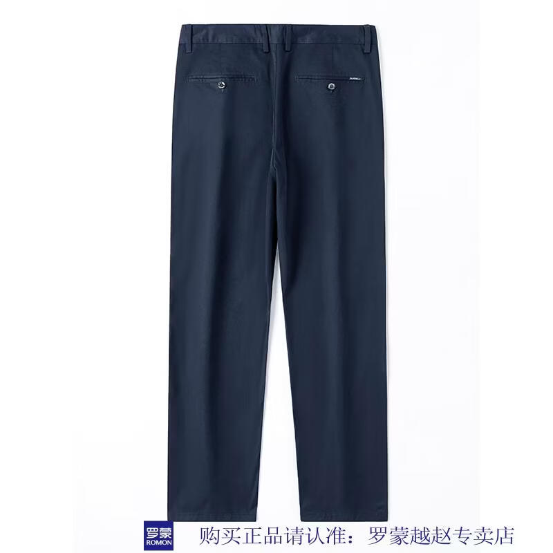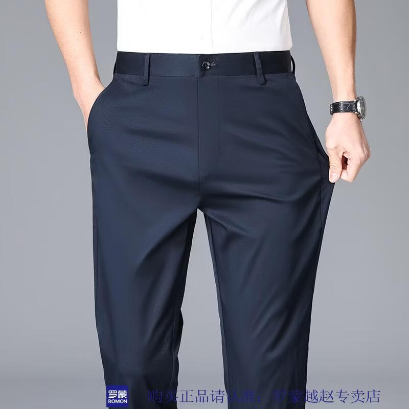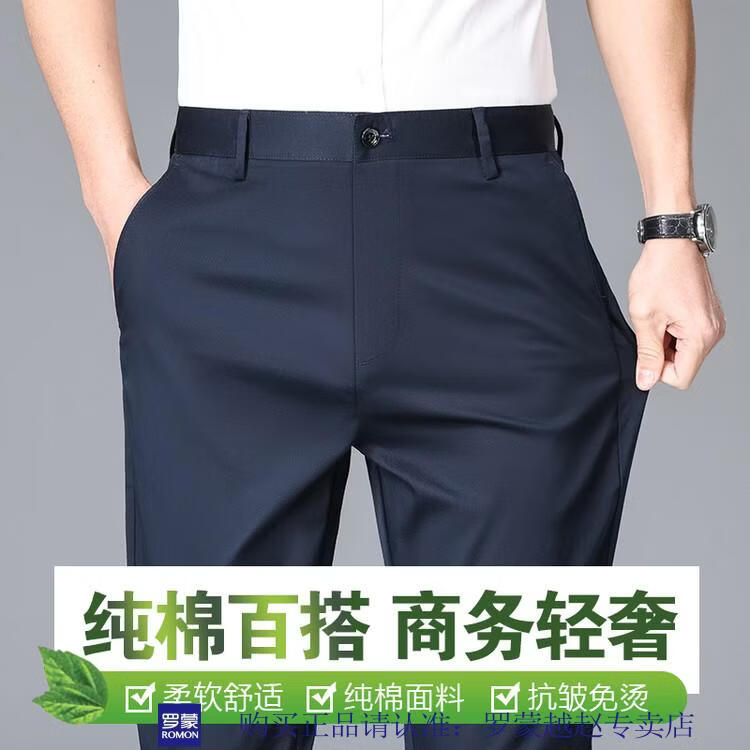 罗蒙(ROMON)夏季薄款纯棉休闲裤男宽松直筒裤弹力纯色商务高腰长裤子 藏青色 42