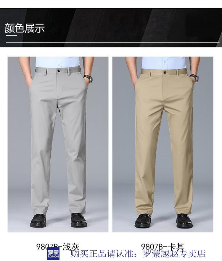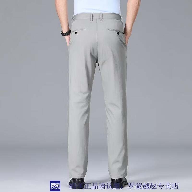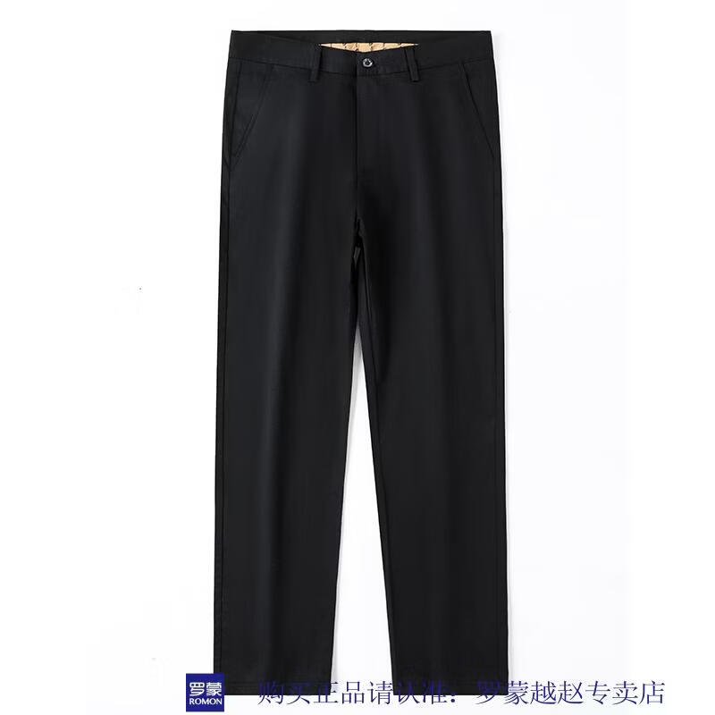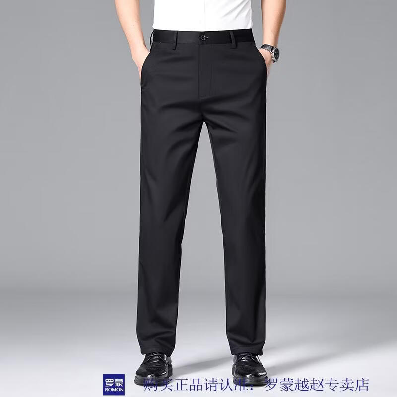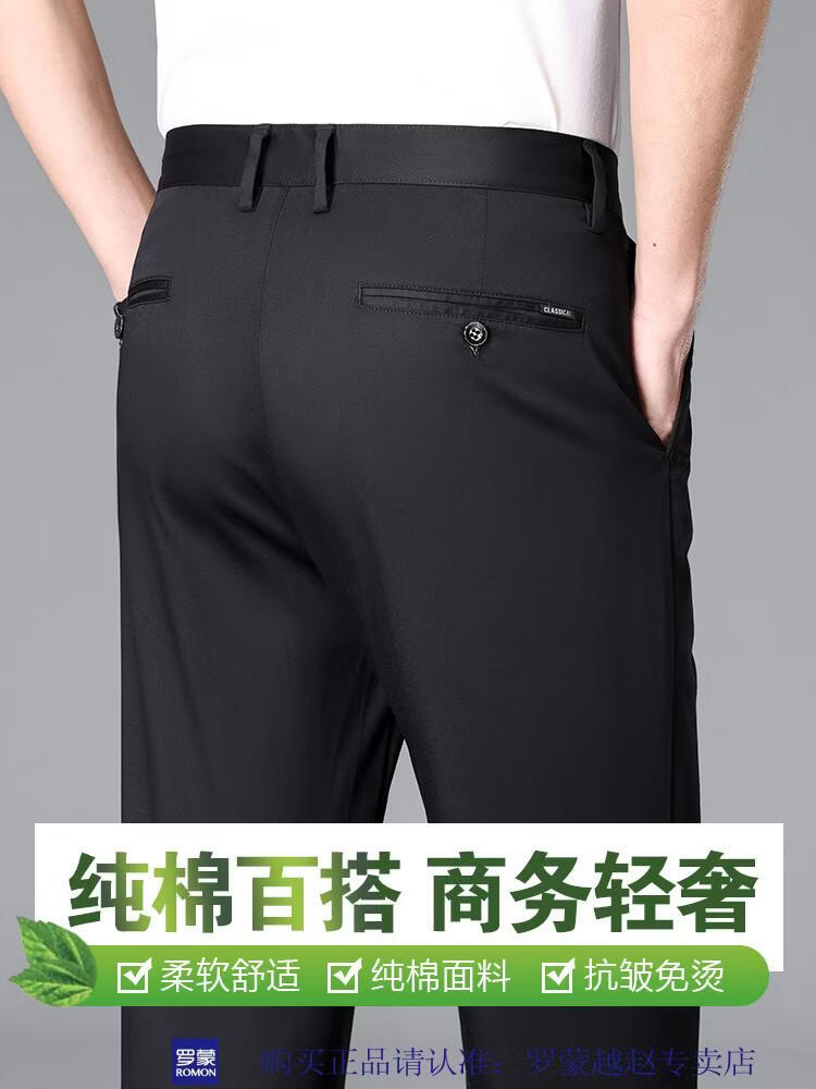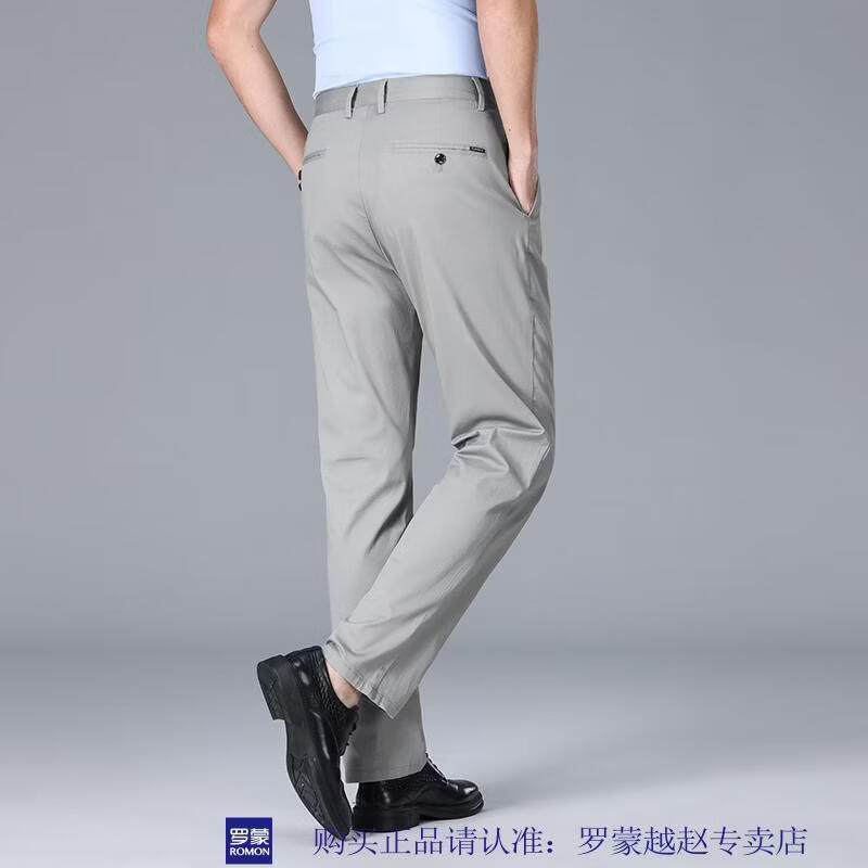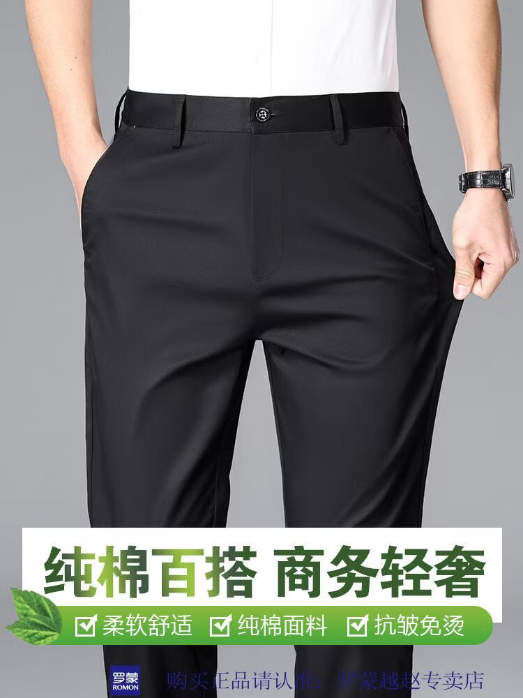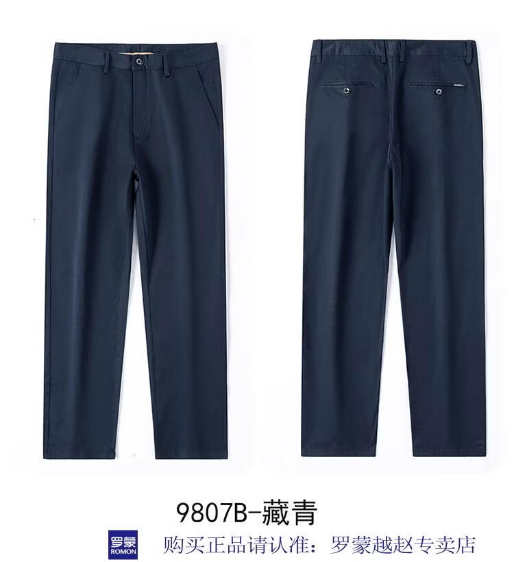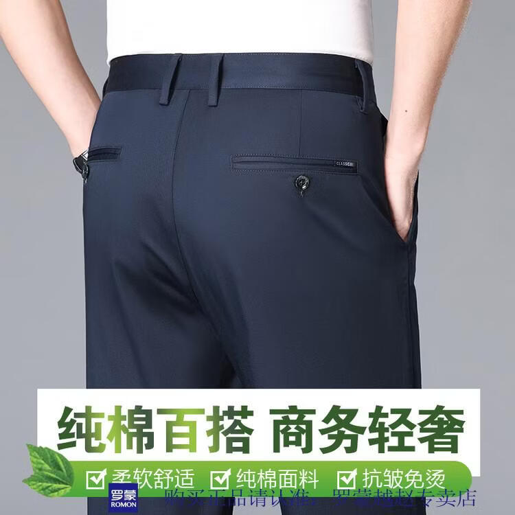 罗蒙(ROMON)夏季薄款纯棉休闲裤男宽松直筒裤弹力纯色商务高腰长裤子 藏青色 42