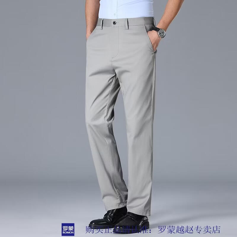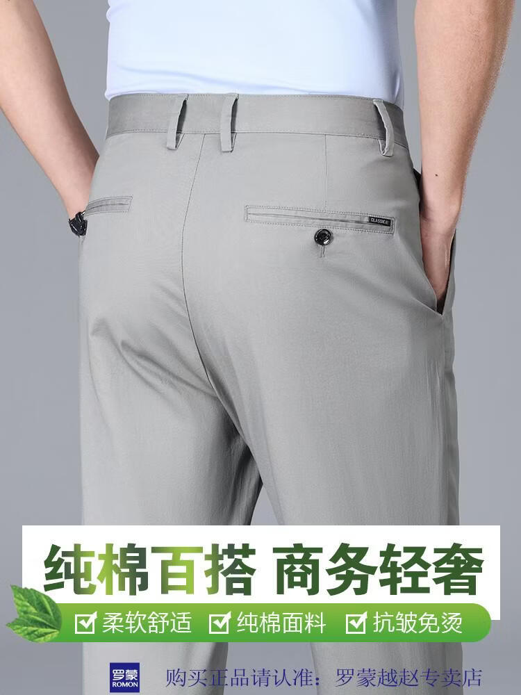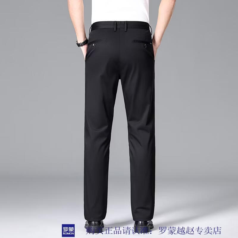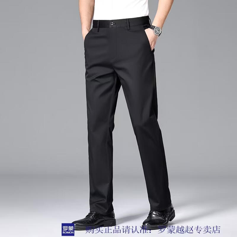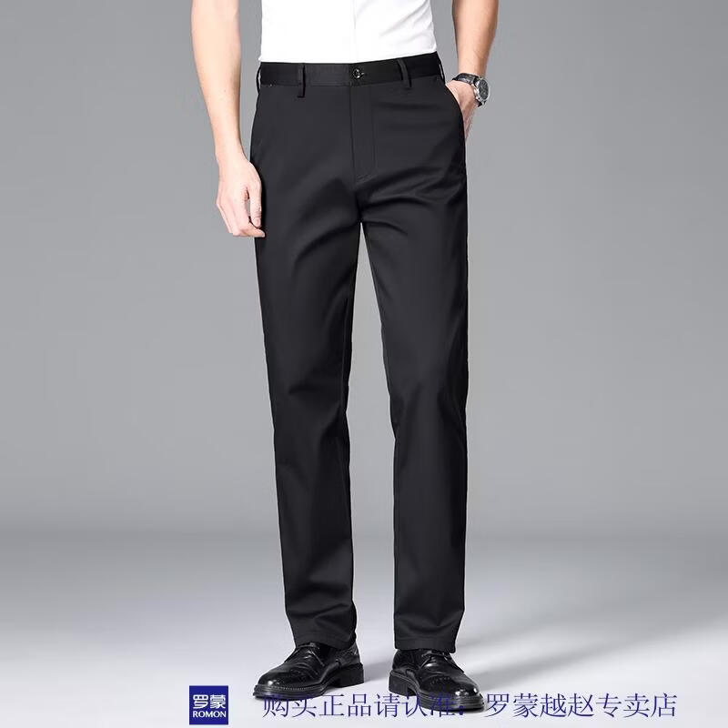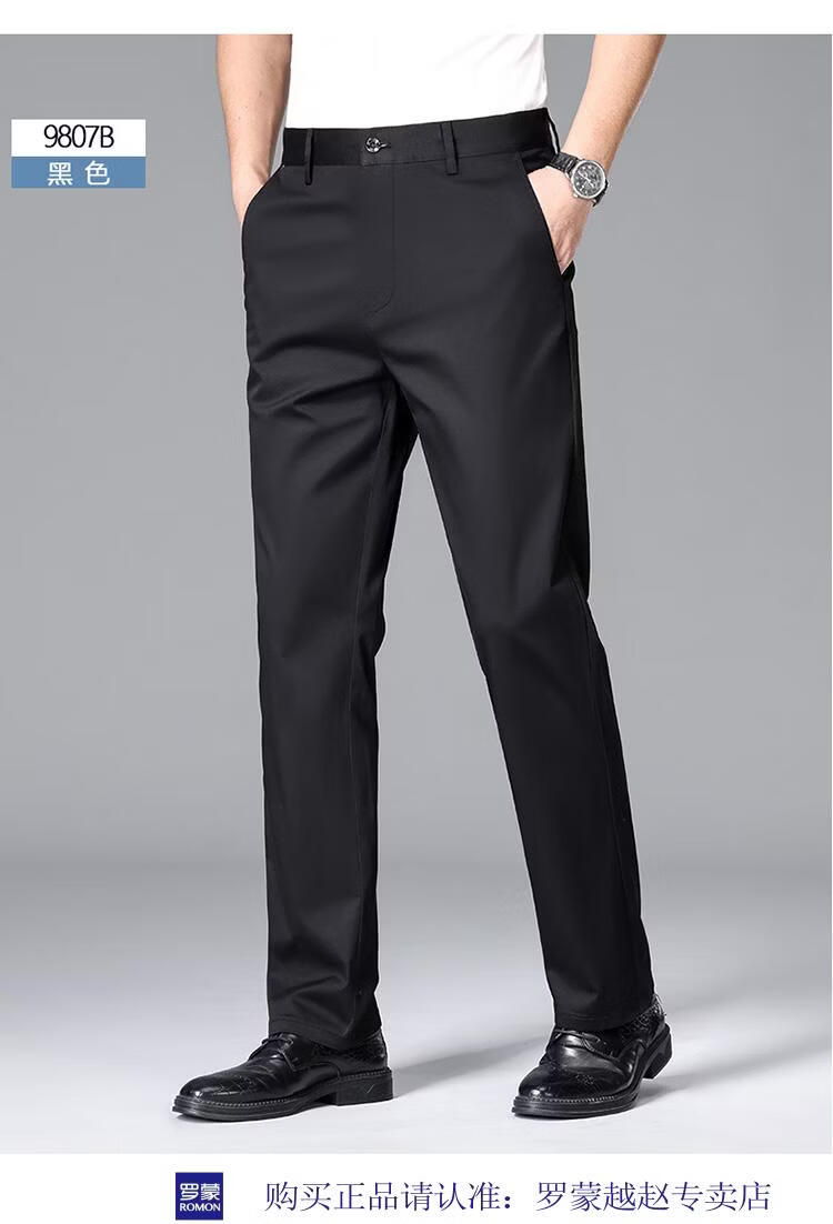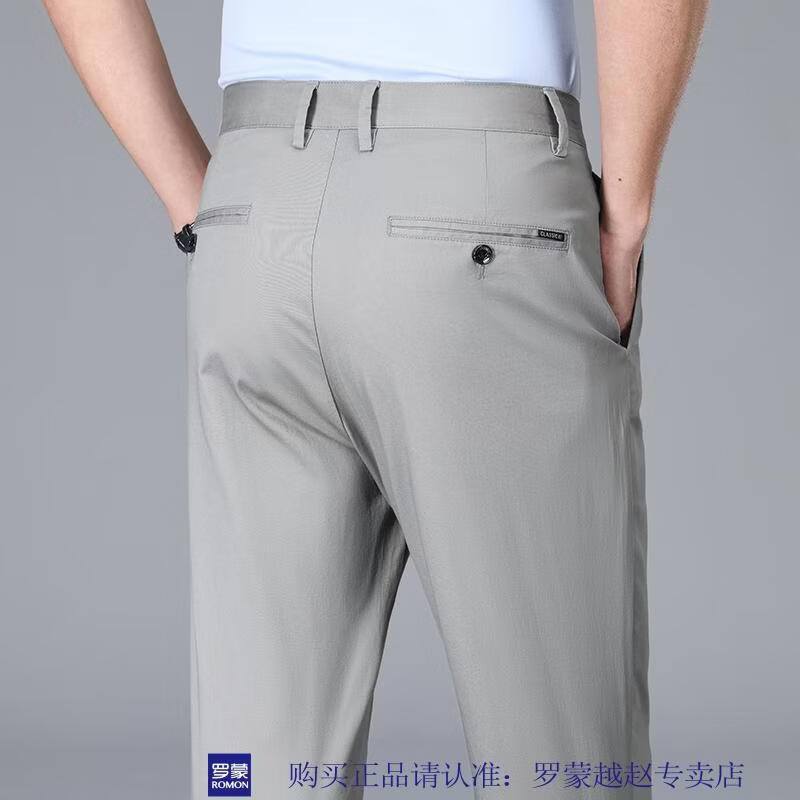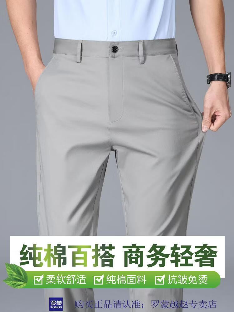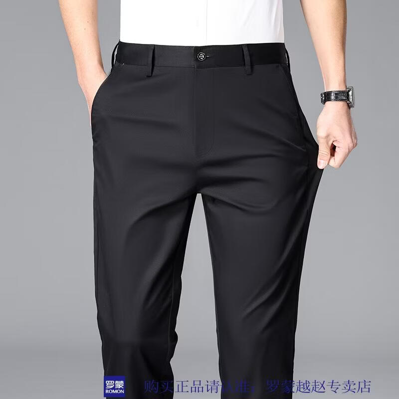 罗蒙(ROMON)夏季薄款纯棉休闲裤男宽松直筒裤弹力纯色商务高腰长裤子 藏青色 42