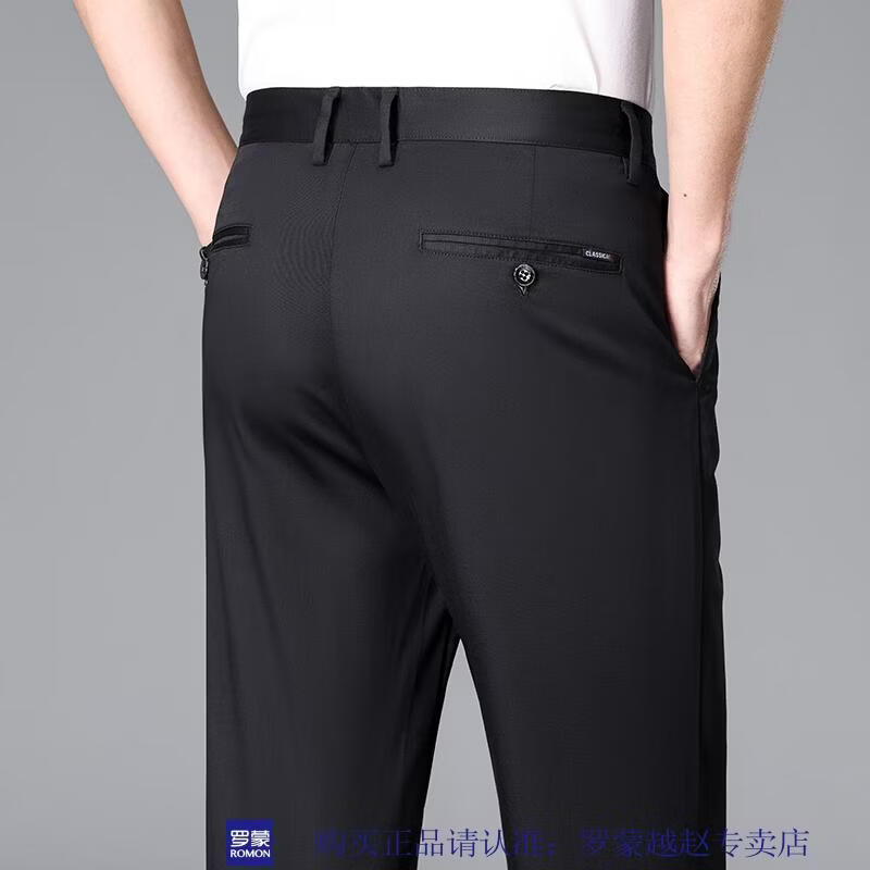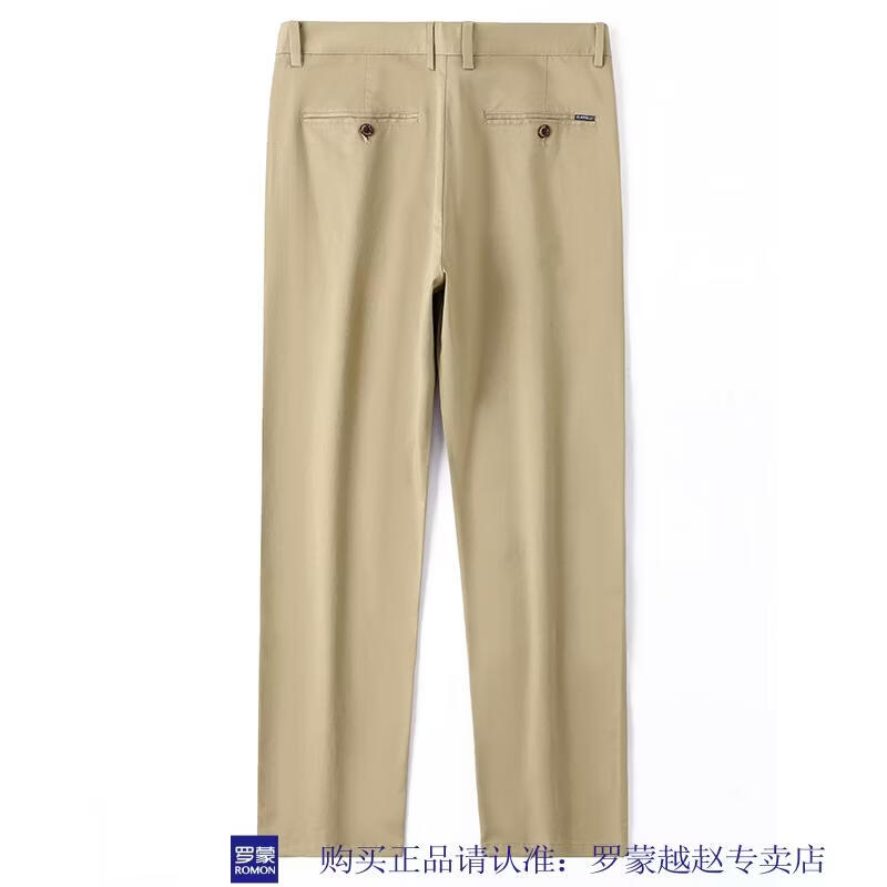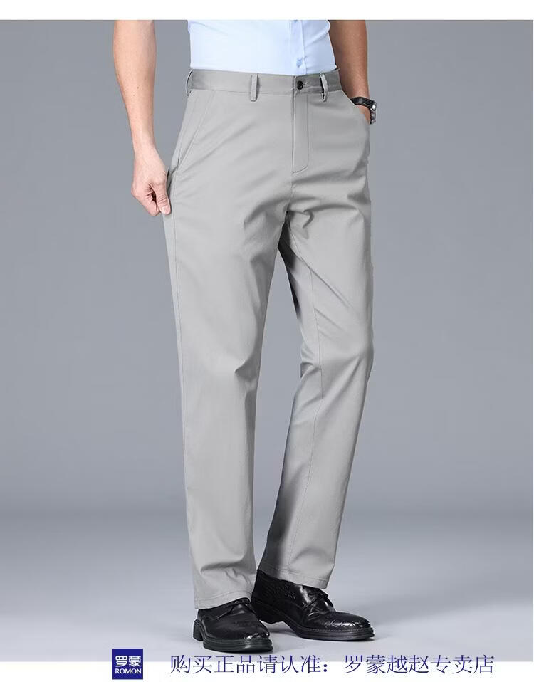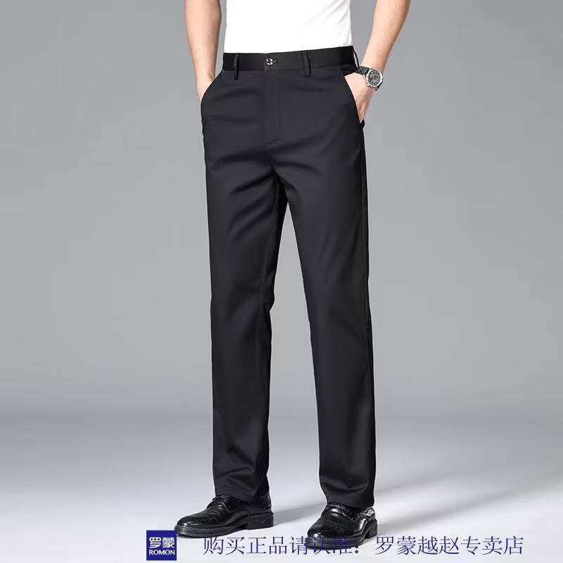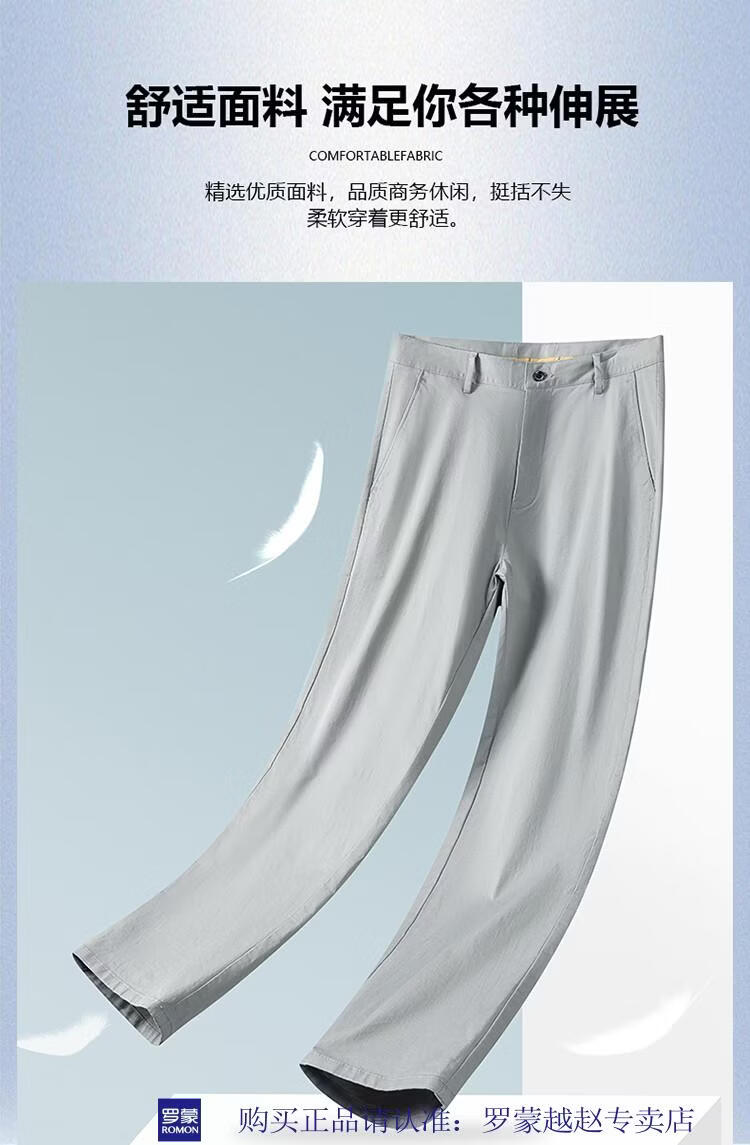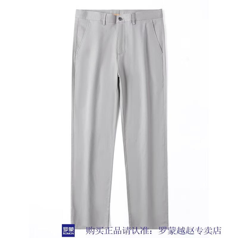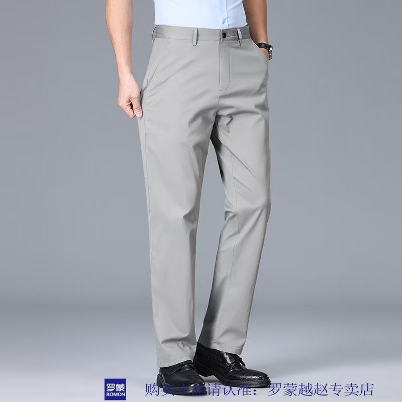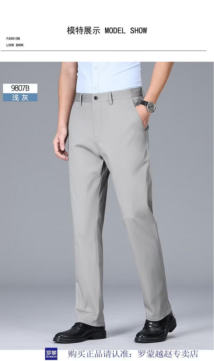 罗蒙(ROMON)夏季薄款纯棉休闲裤男宽松直筒裤弹力纯色商务高腰长裤子 藏青色 42
