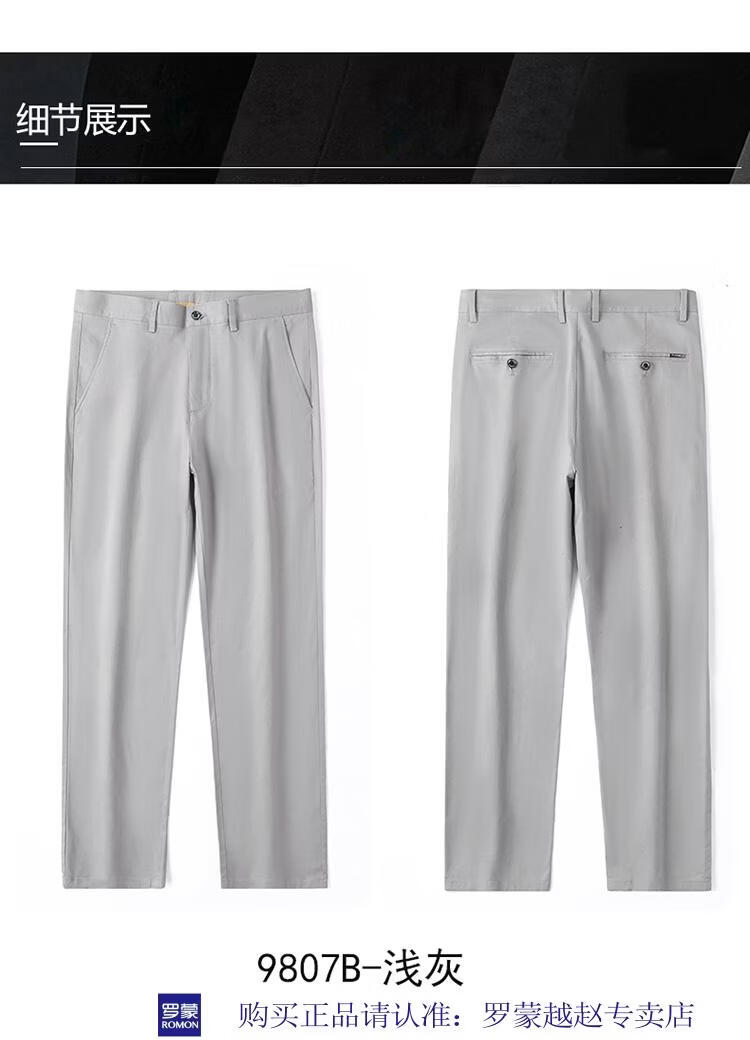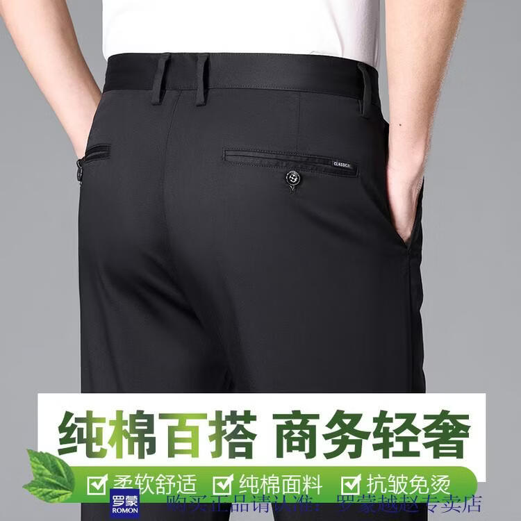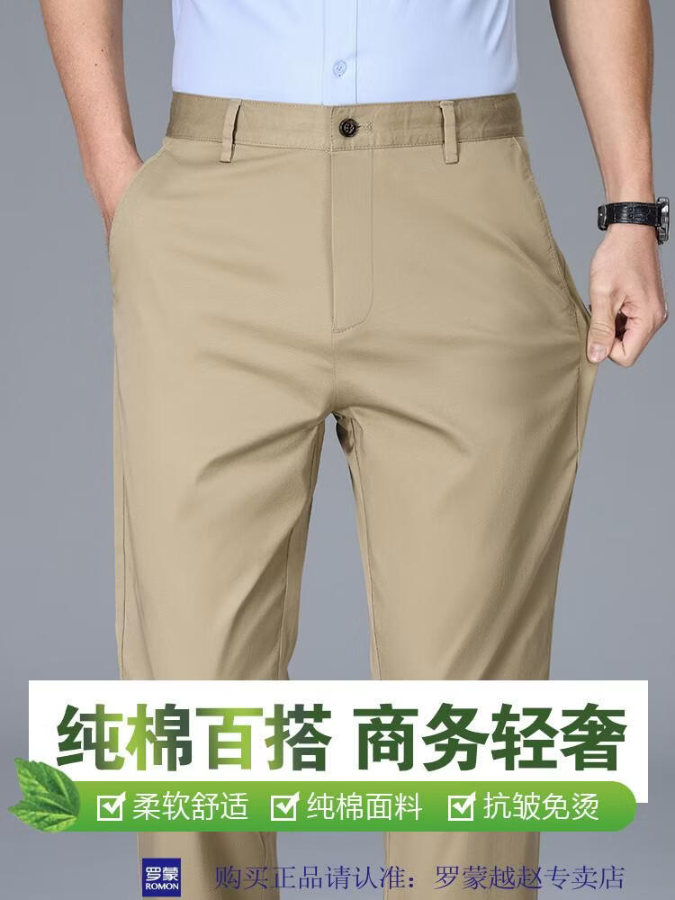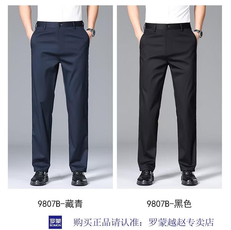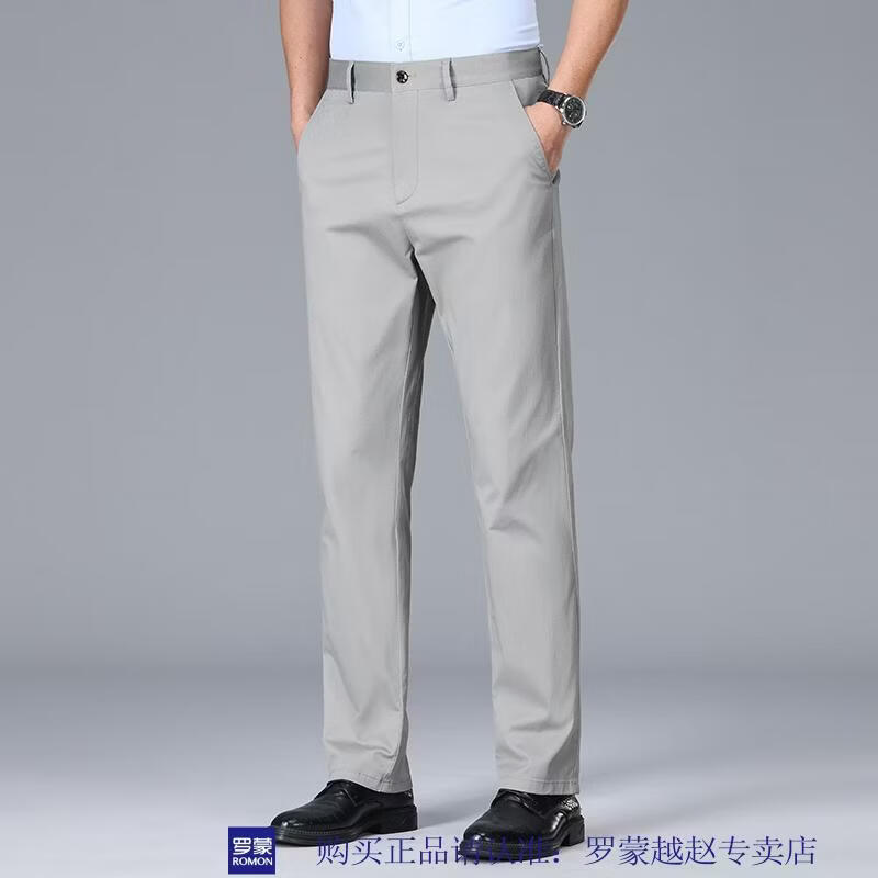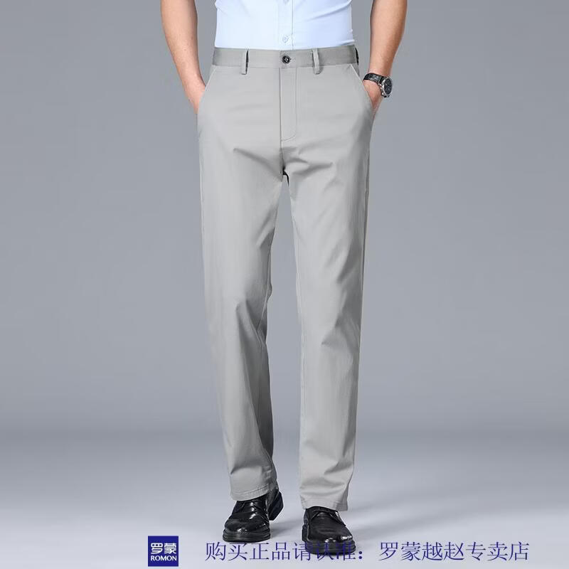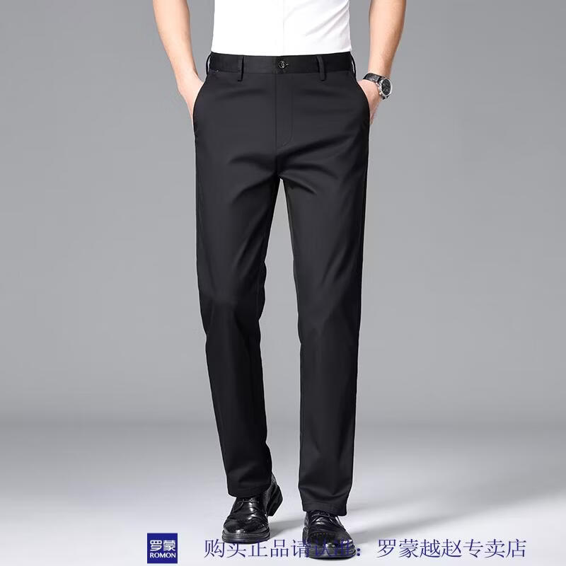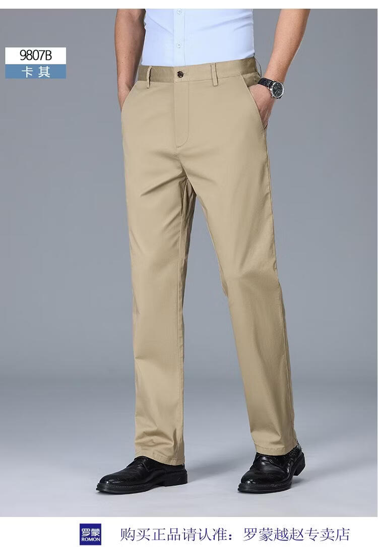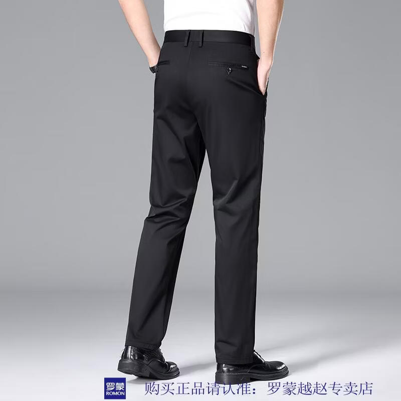罗蒙(ROMON)夏季薄款纯棉休闲裤男宽松直筒裤弹力纯色商务高腰长裤子 藏青色 42