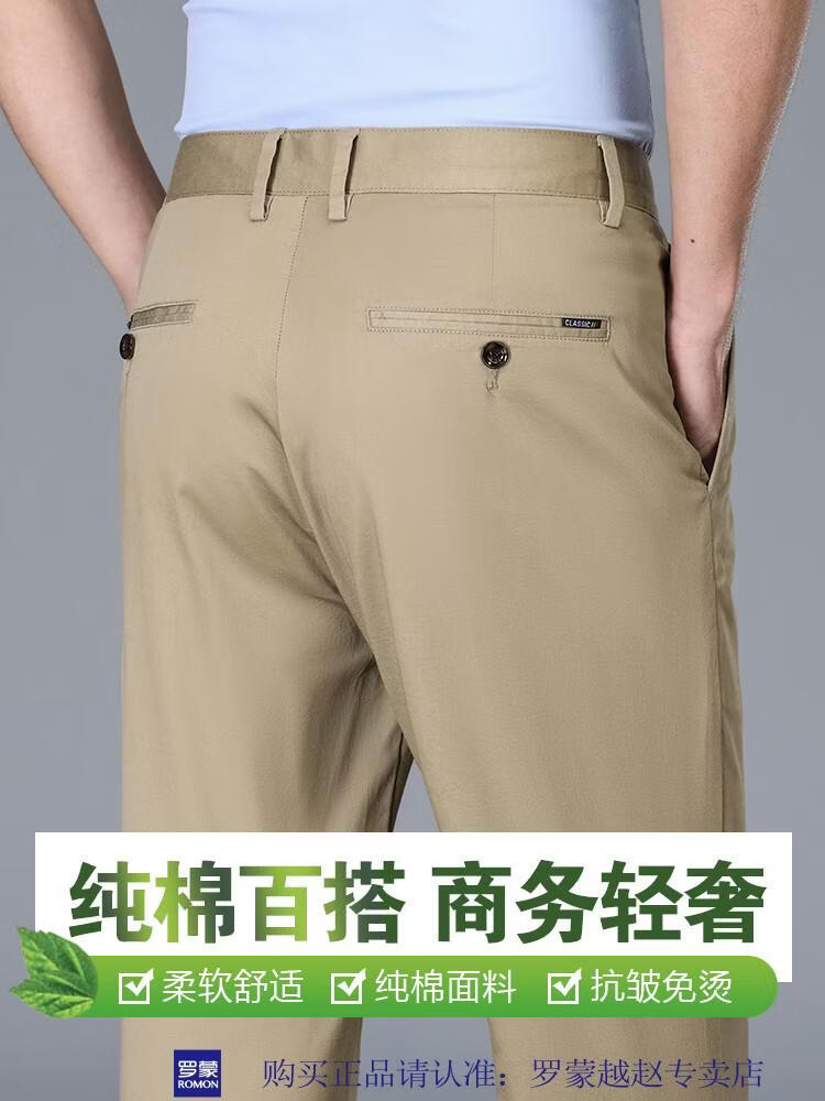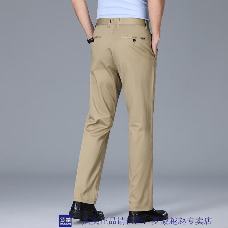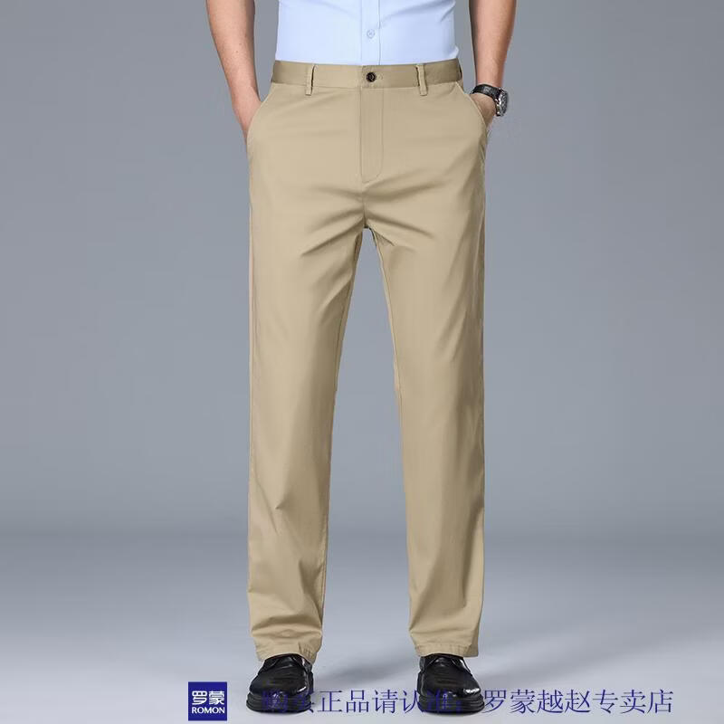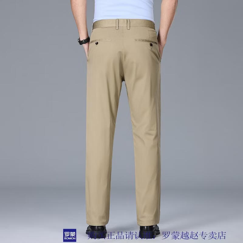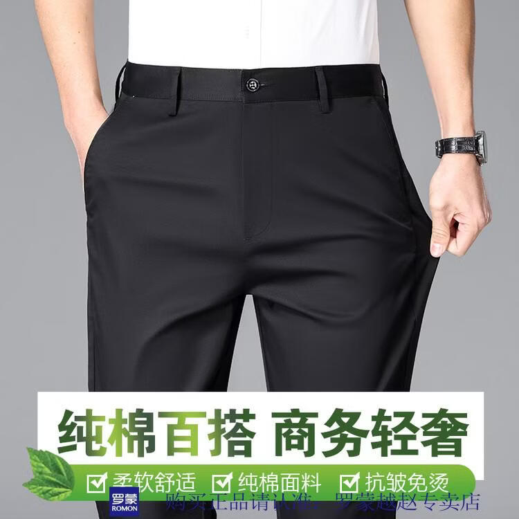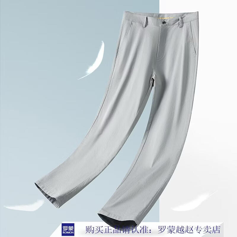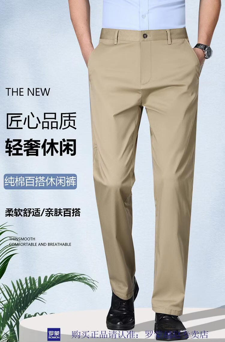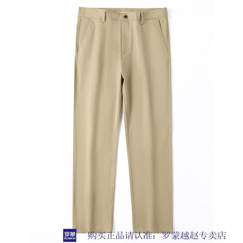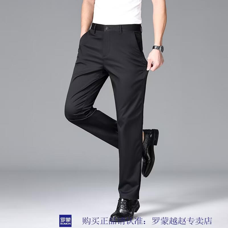 罗蒙(ROMON)夏季薄款纯棉休闲裤男宽松直筒裤弹力纯色商务高腰长裤子 藏青色 42