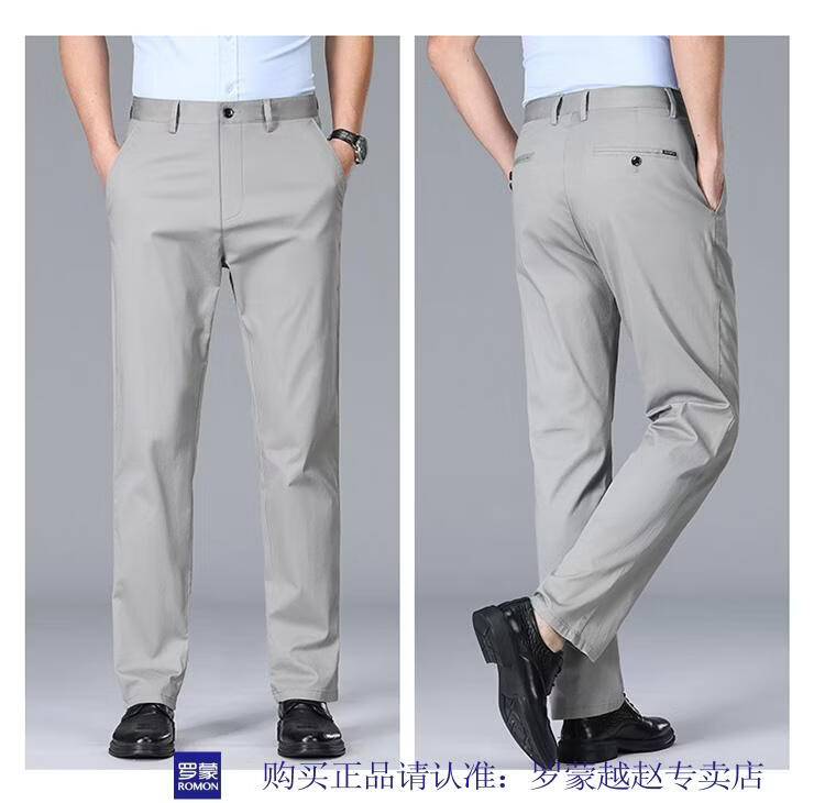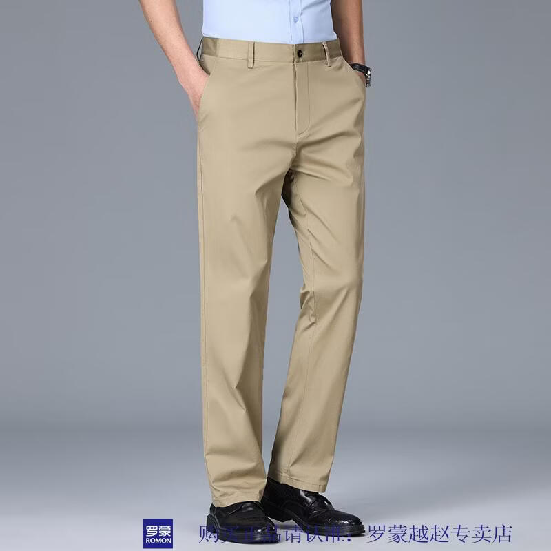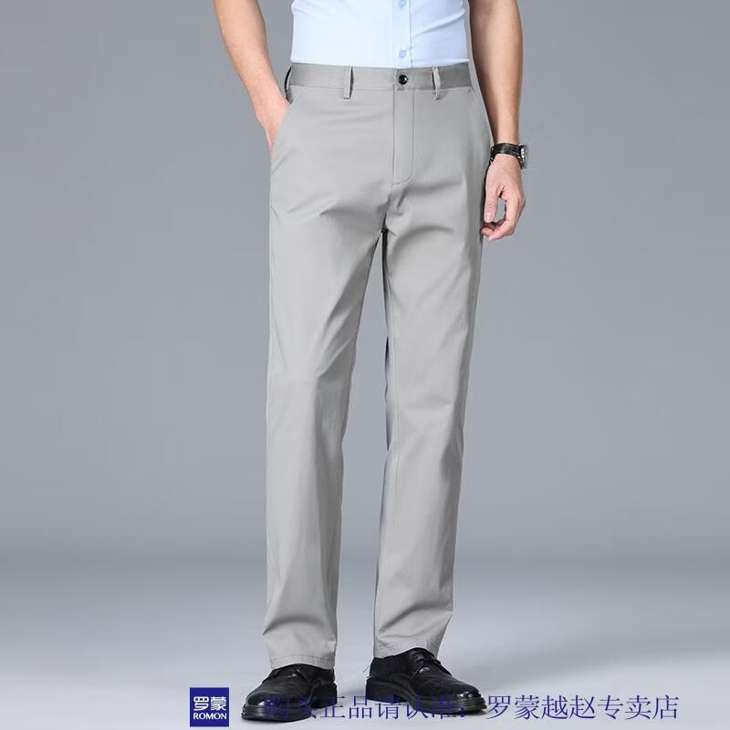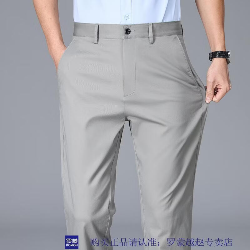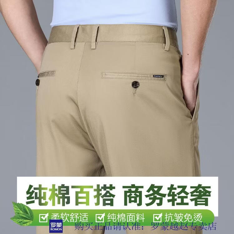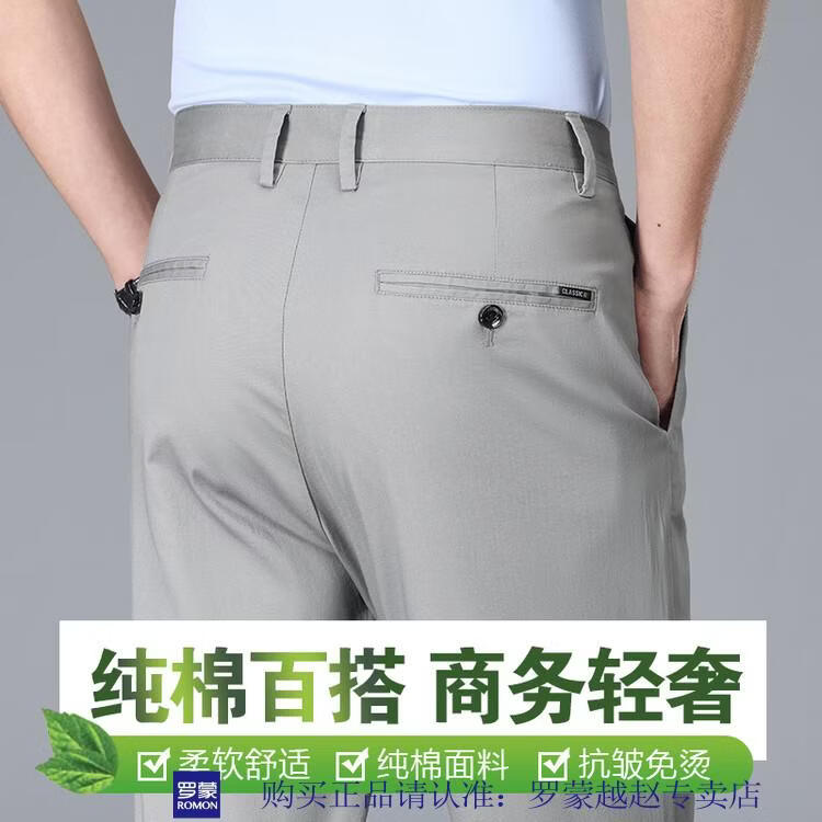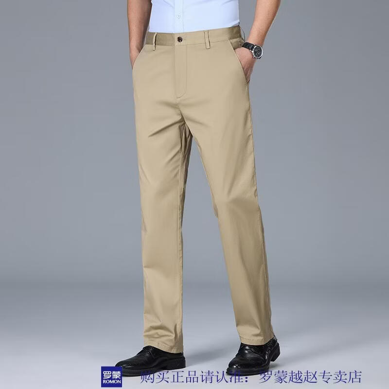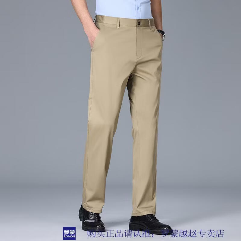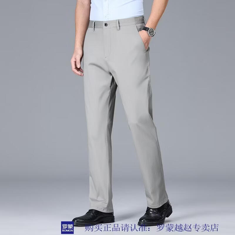 罗蒙(ROMON)夏季薄款纯棉休闲裤男宽松直筒裤弹力纯色商务高腰长裤子 藏青色 42