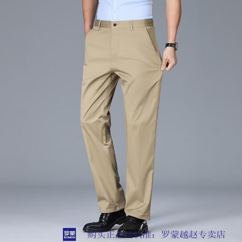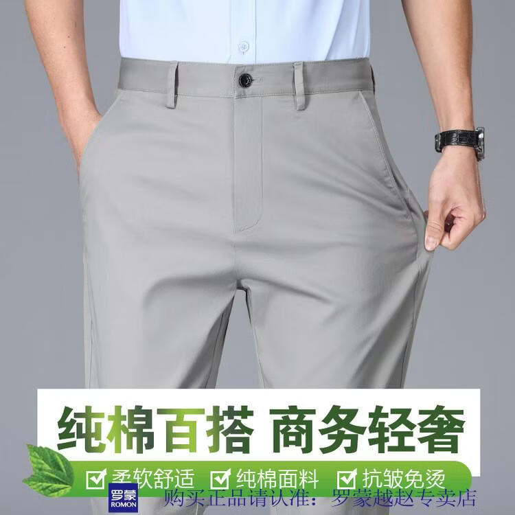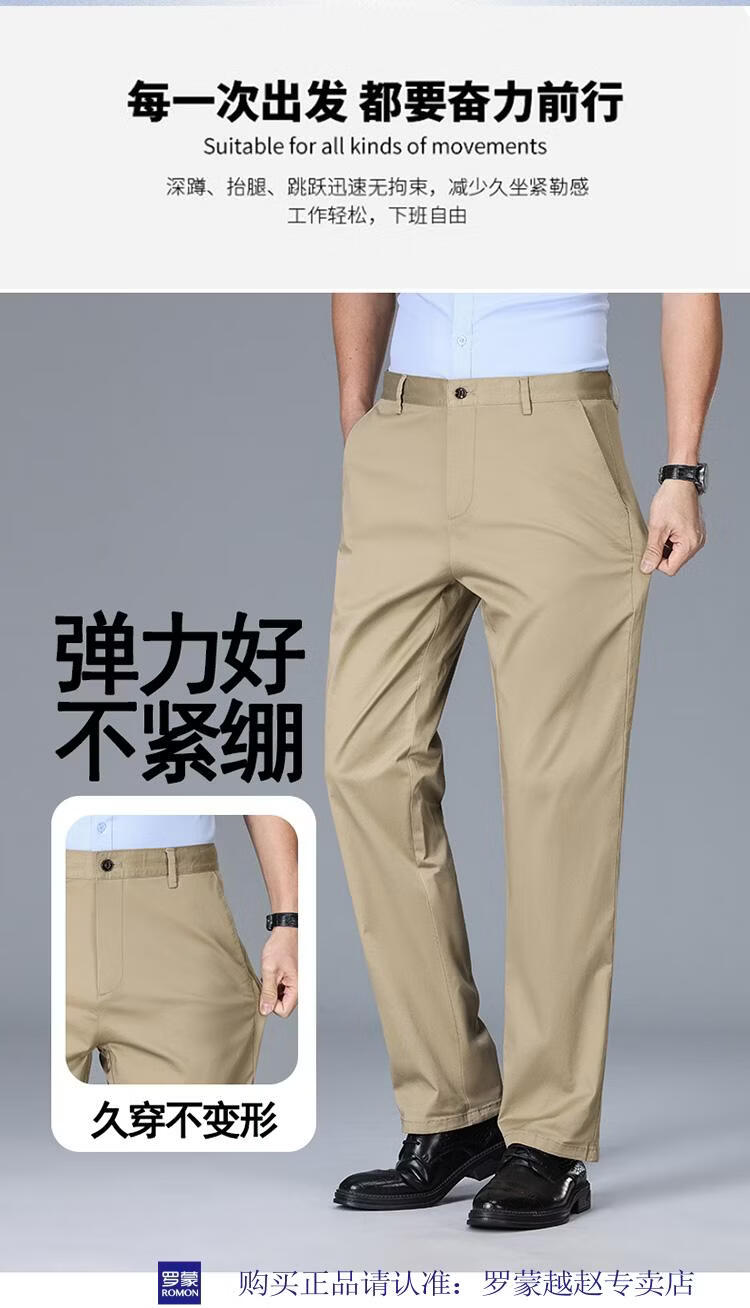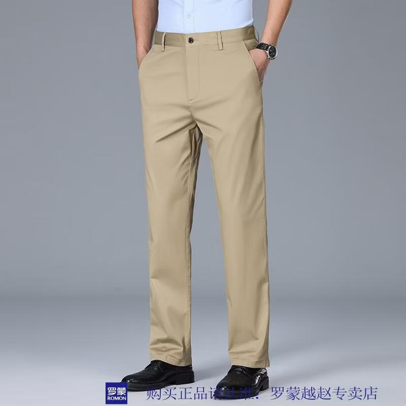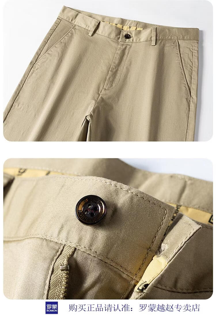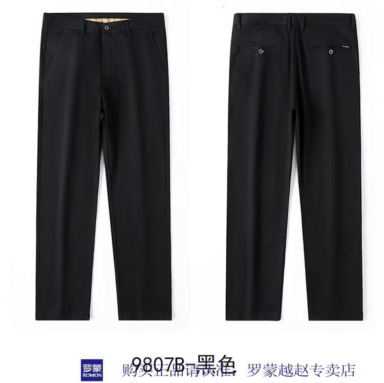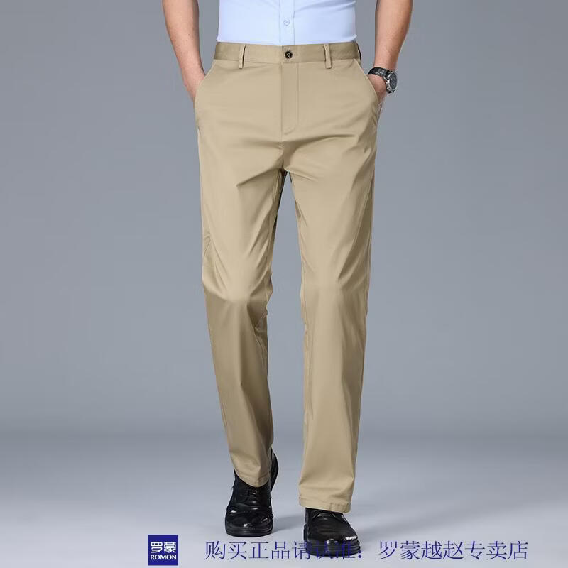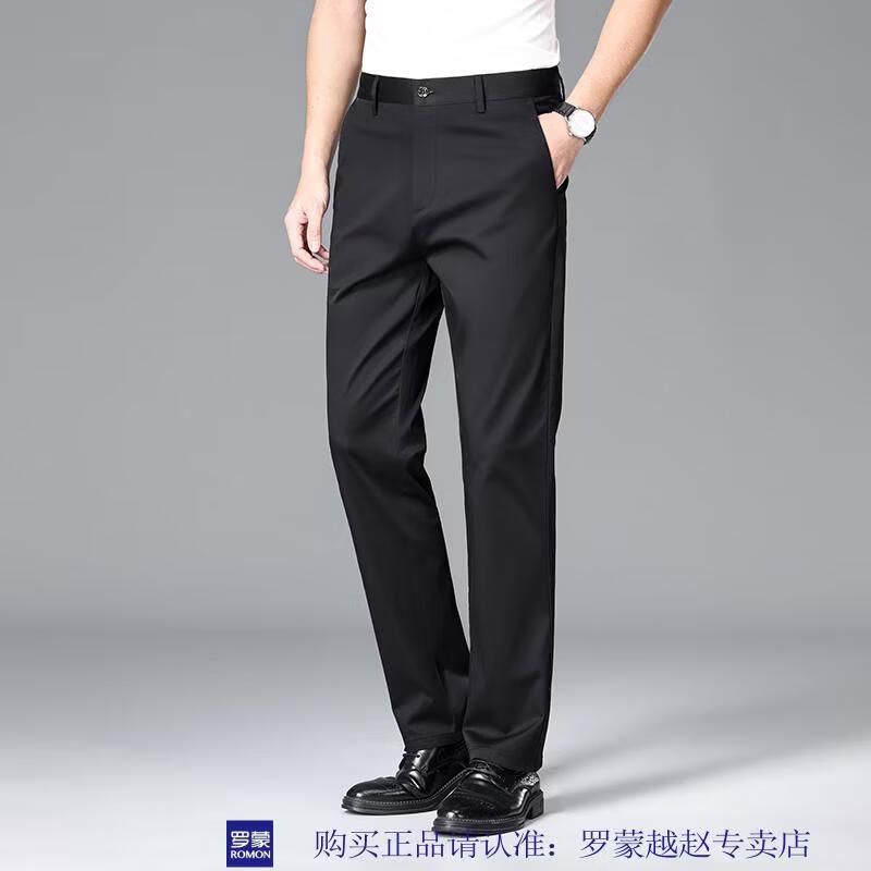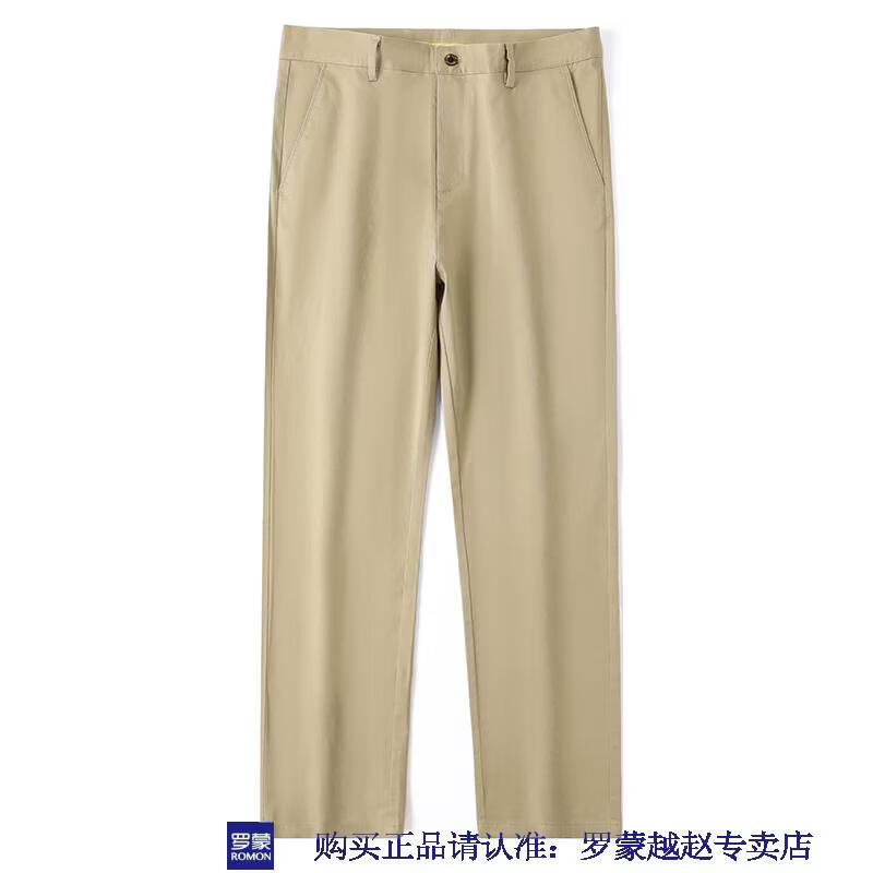 罗蒙(ROMON)夏季薄款纯棉休闲裤男宽松直筒裤弹力纯色商务高腰长裤子 藏青色 42