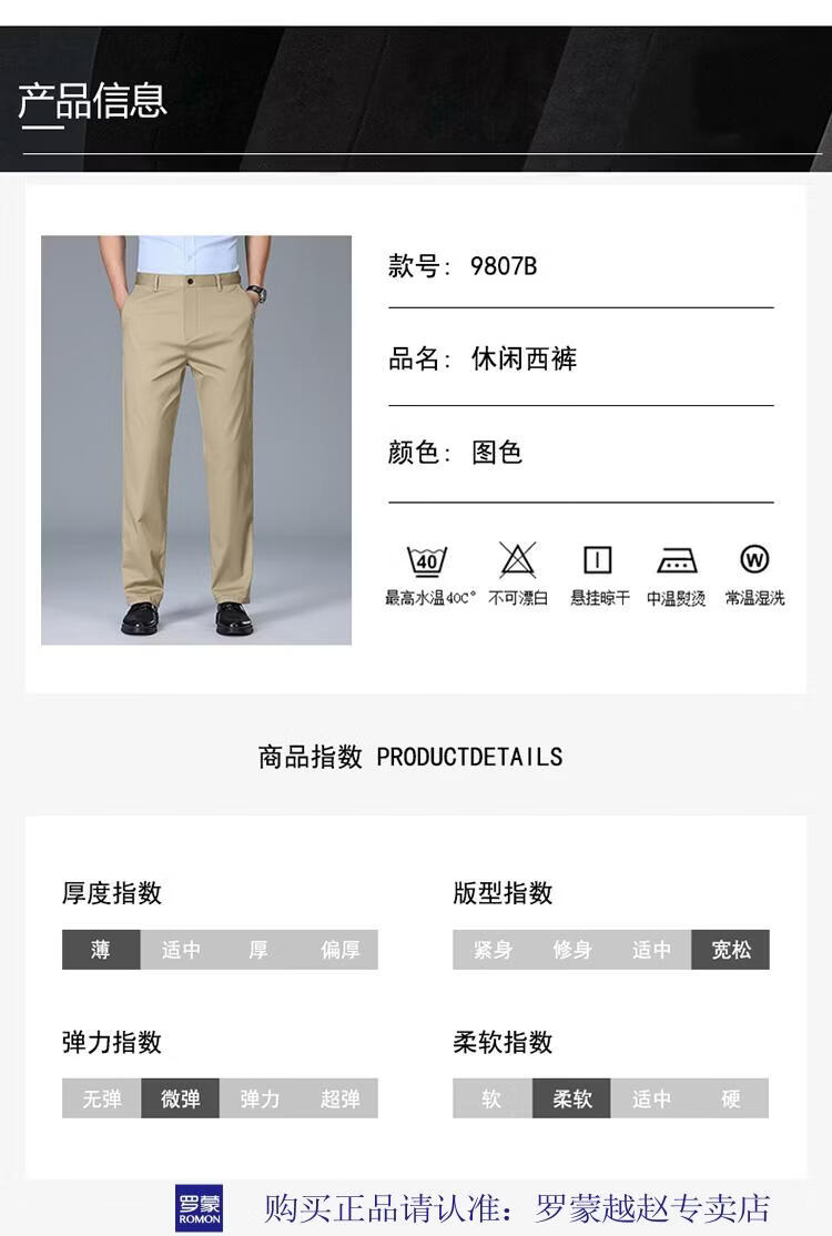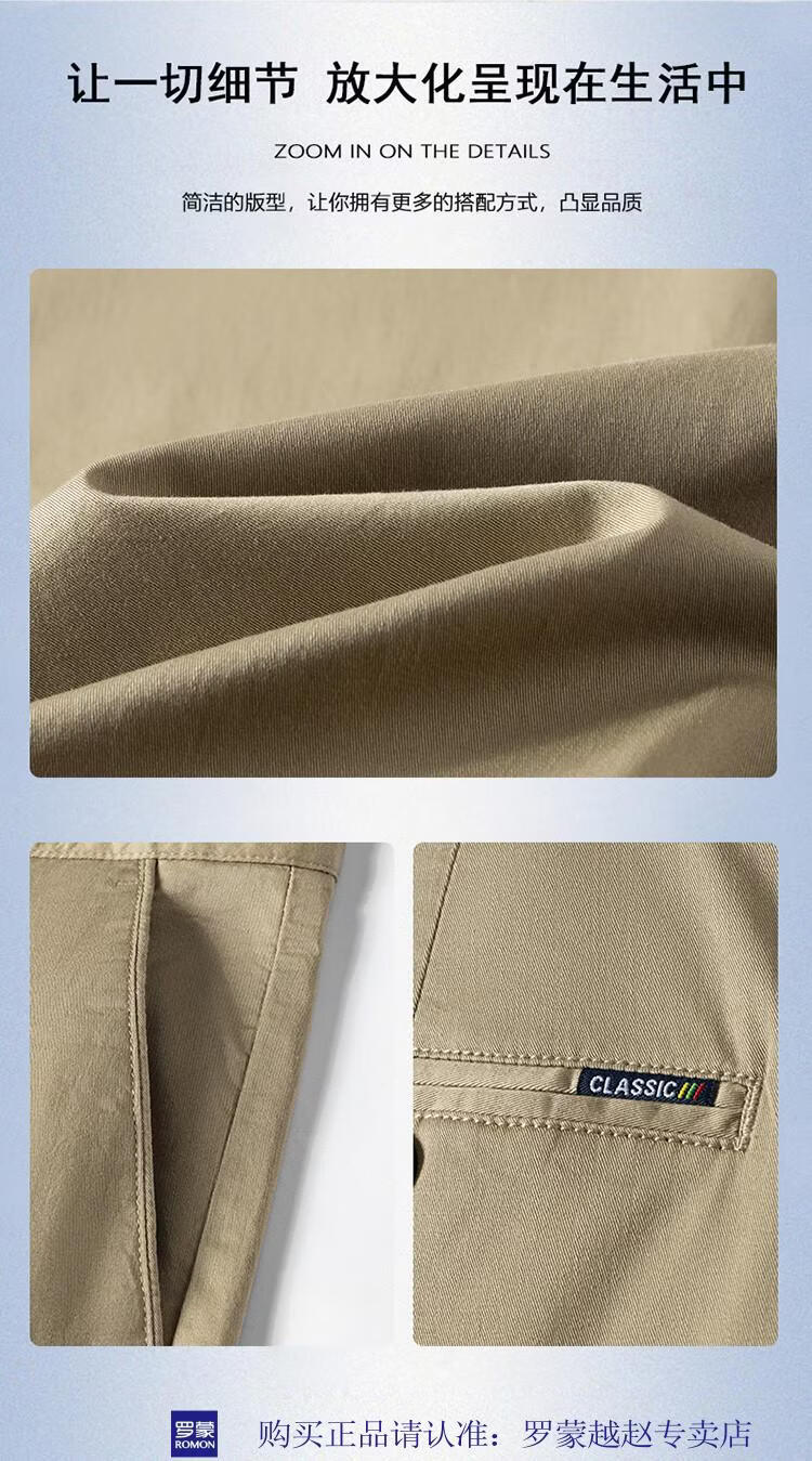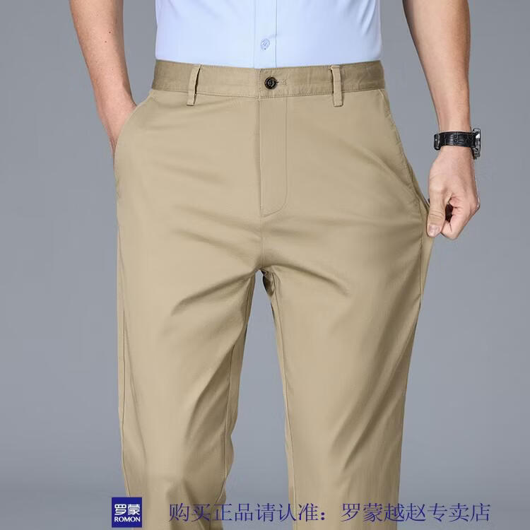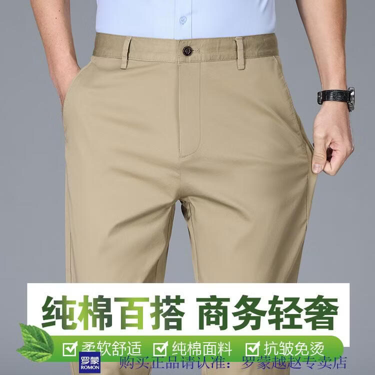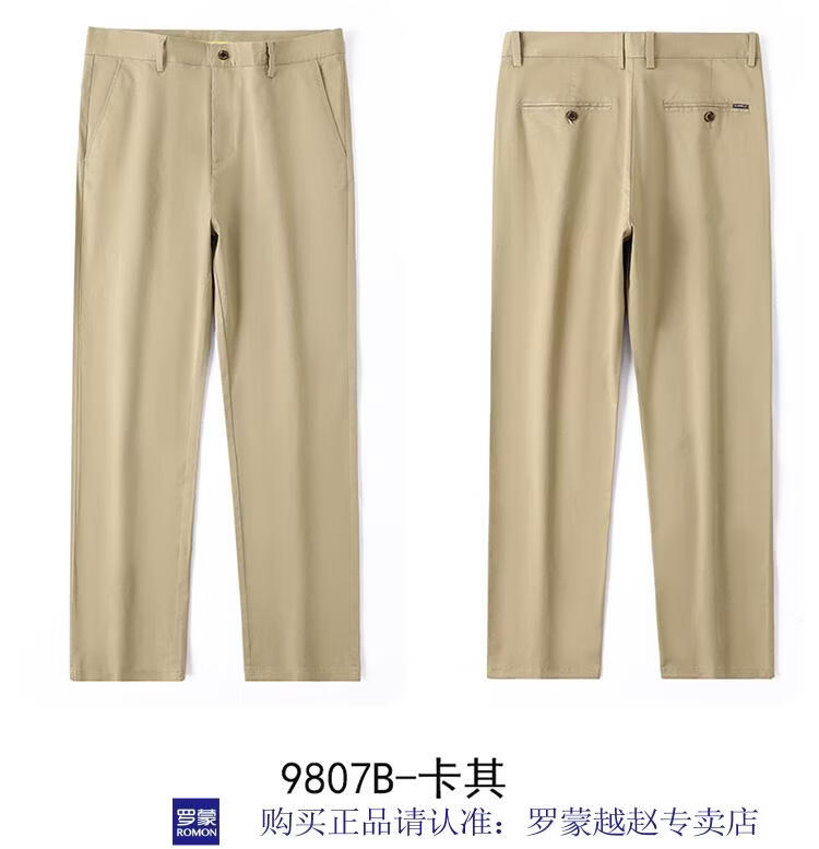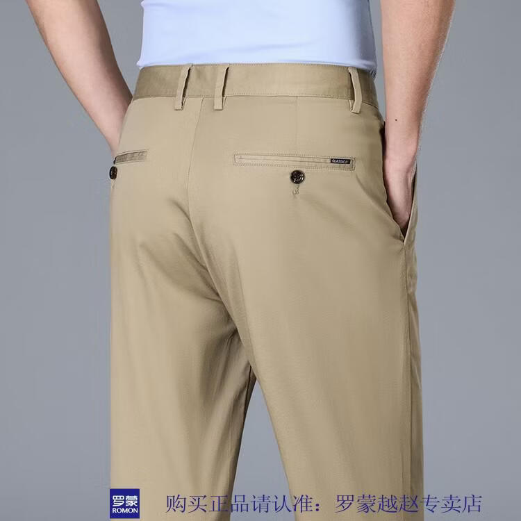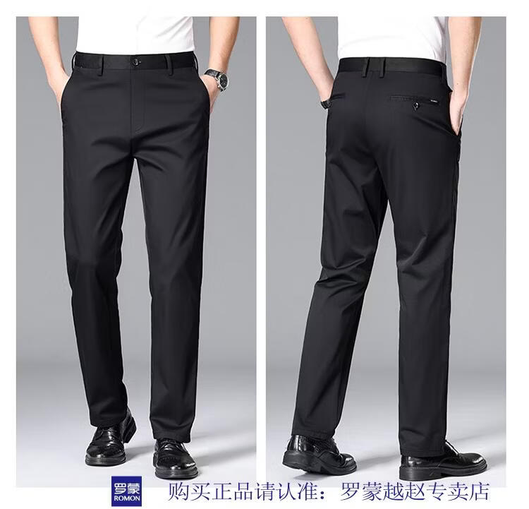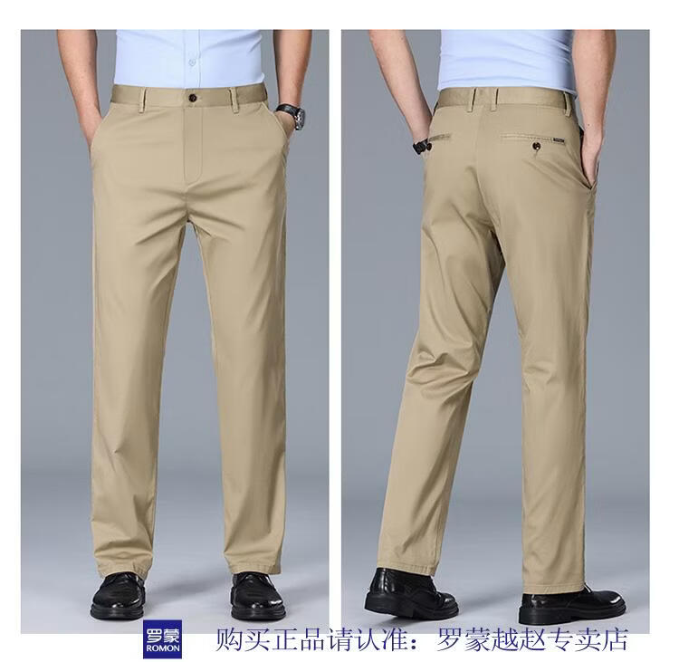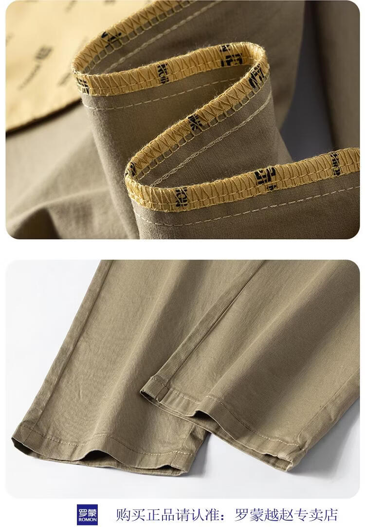 罗蒙(ROMON)夏季薄款纯棉休闲裤男宽松直筒裤弹力纯色商务高腰长裤子 藏青色 42